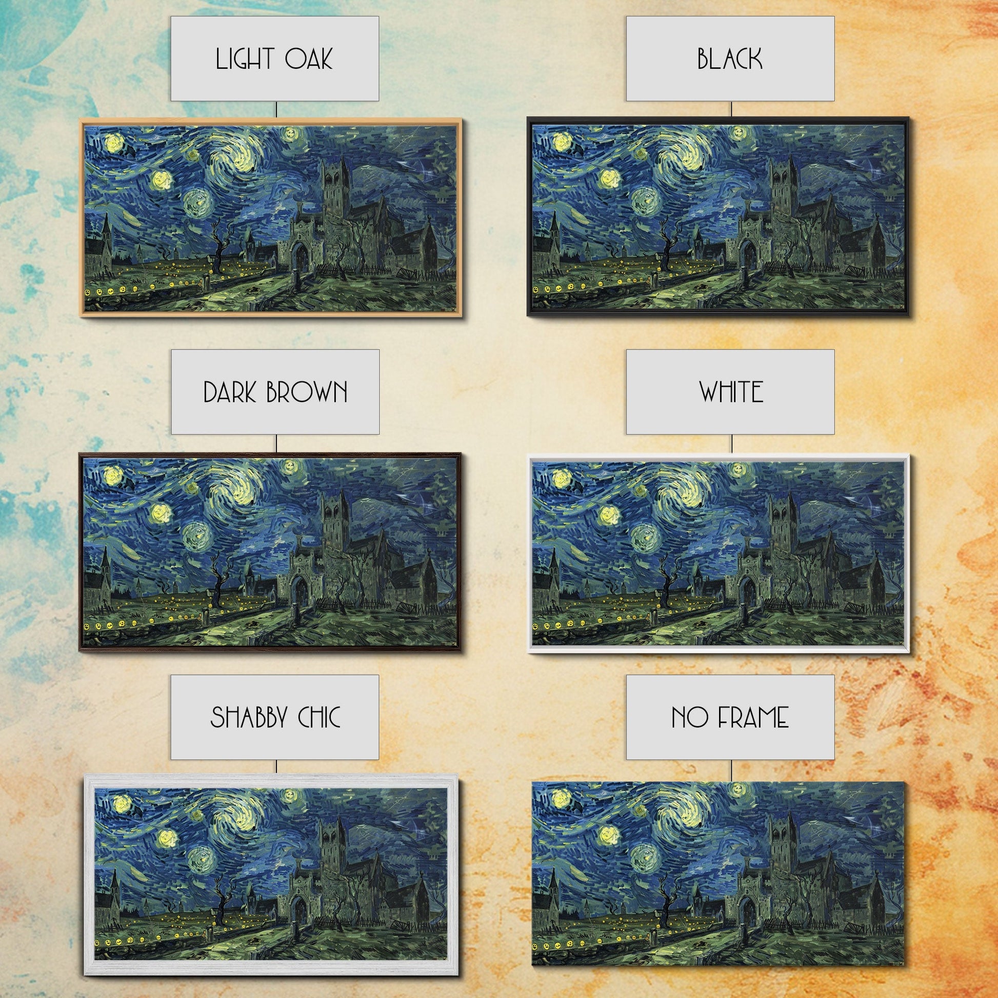 The Haunted Castle - Framed Canvas Print - Halloween Decor - Starry Night Inspired Dark Academia Halloween Wall Art