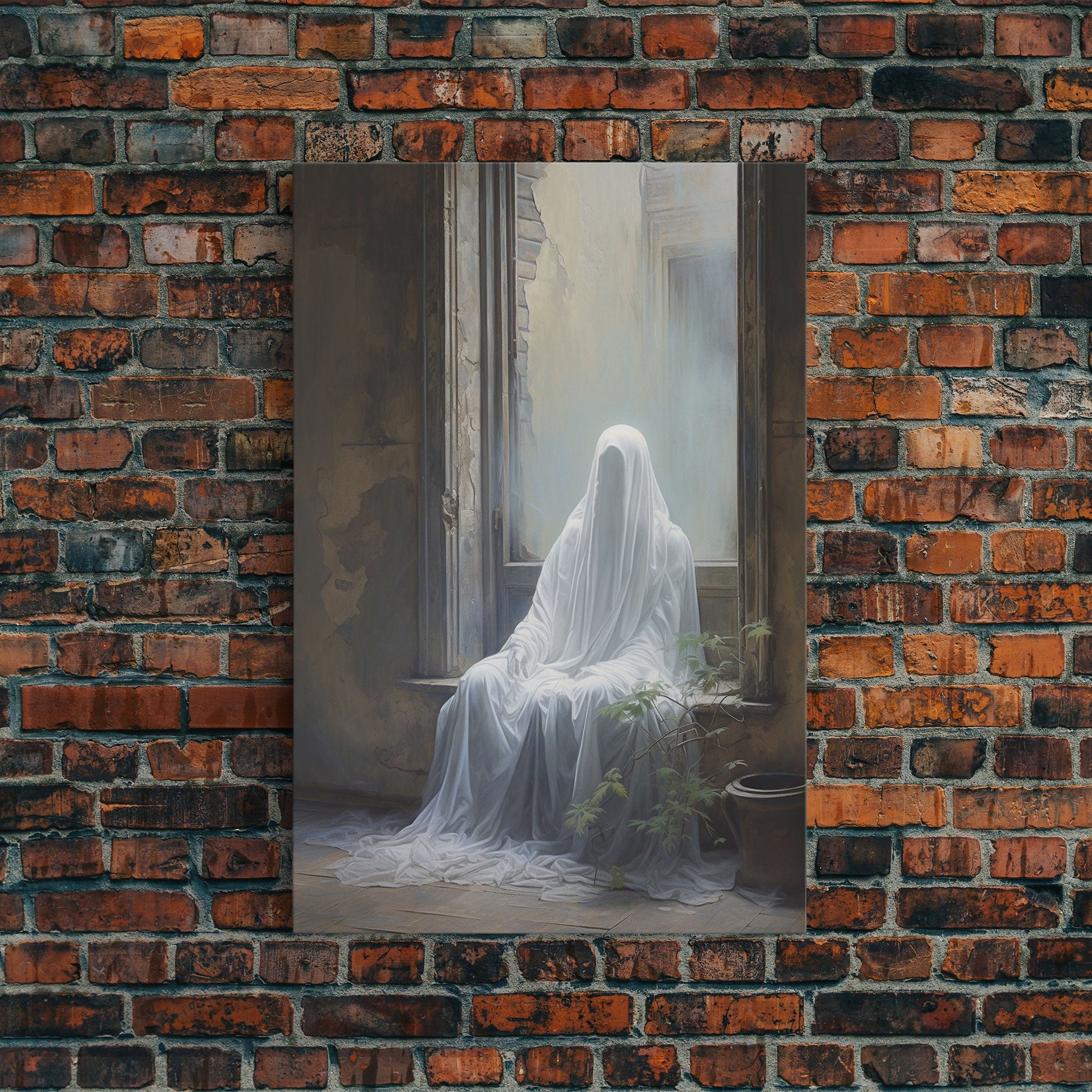 The Haunting, Ghost In The Window, Halloween Decor, Framed Canvas Print
