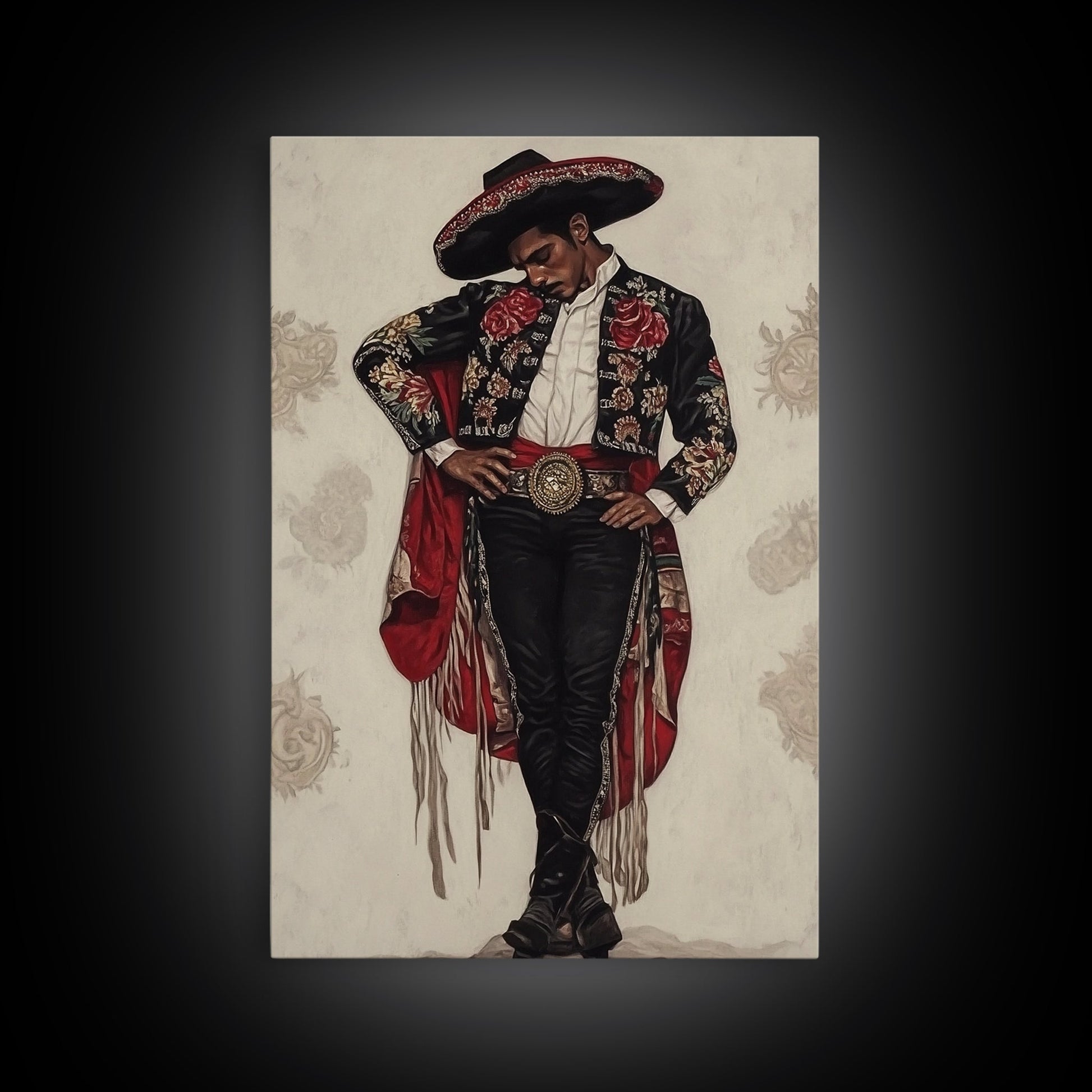 The Matador Oil Painting Canvas Print, Chicano Wall Art, Mexicano Decor, Mexican Inspired Wall Art