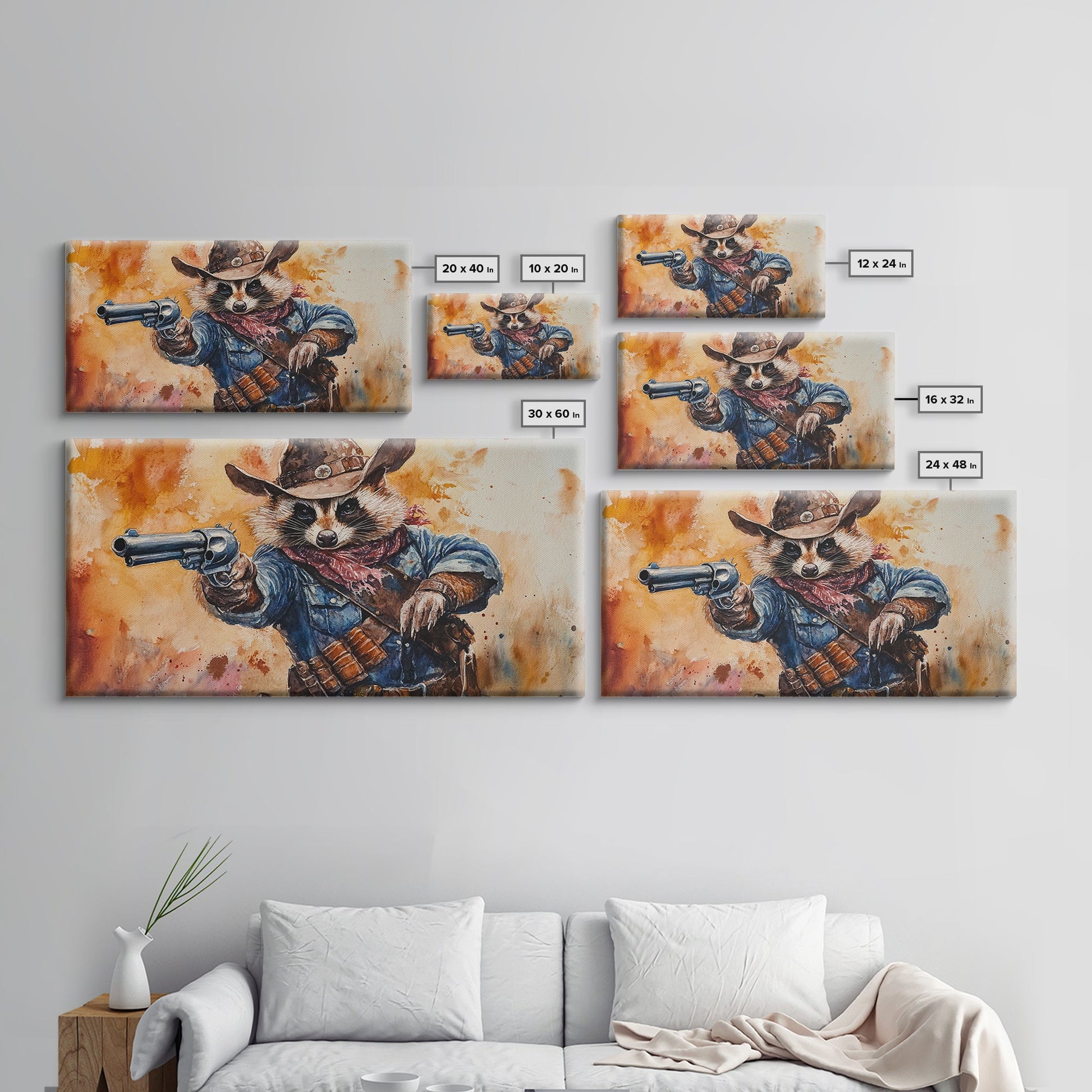 The Raccoon Cowboy - Framed Canvas Print - Raccoon Art - Trash Panda Cowboy