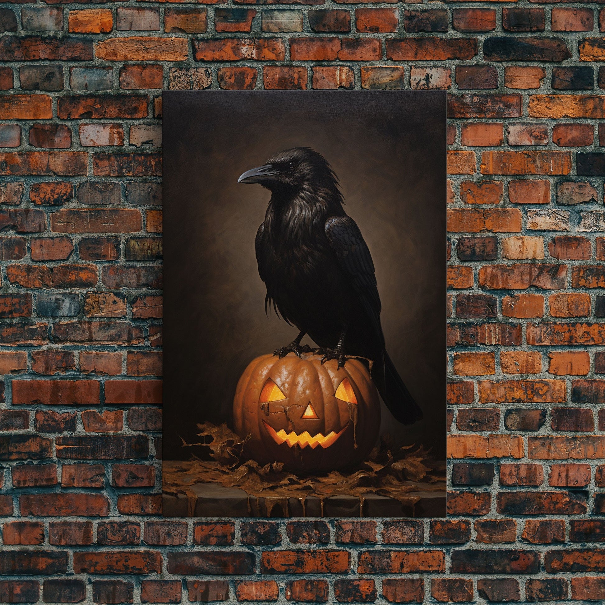 The Raven, Halloween Canvas Print / Framed Canvas, Victorian Gothic Oil Painting Print, Crow Decor, Macabre Horror Prints