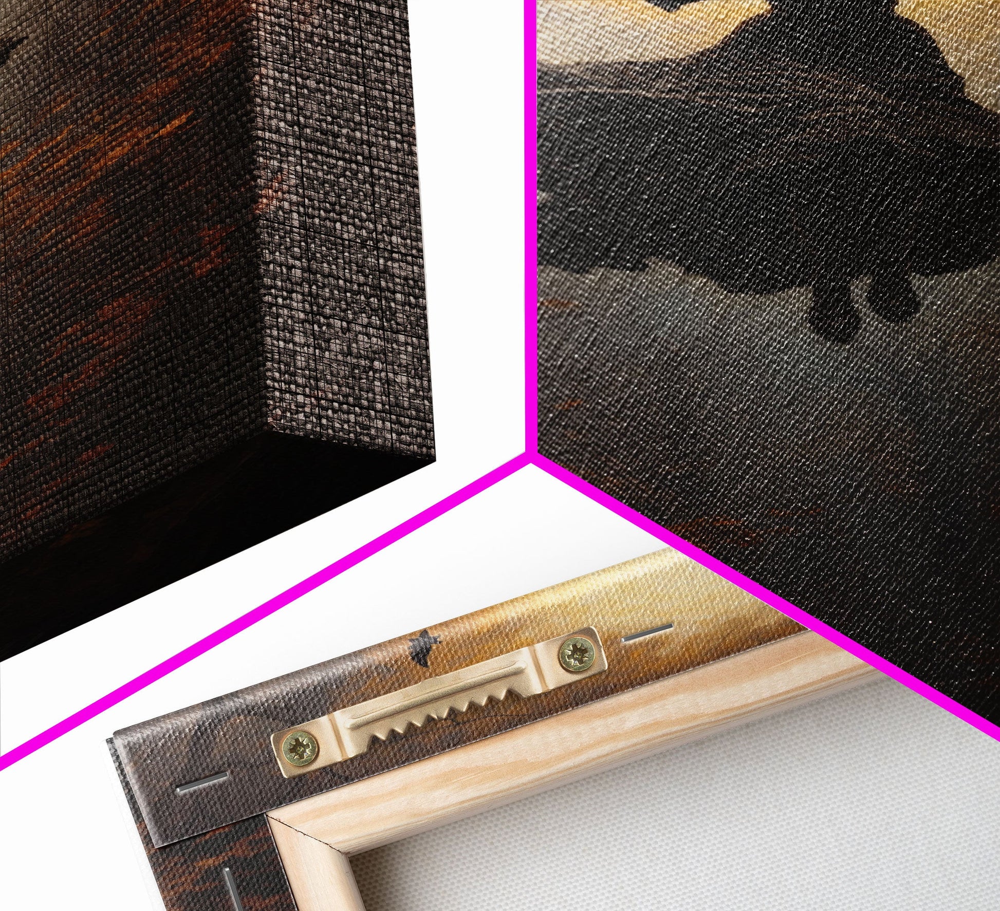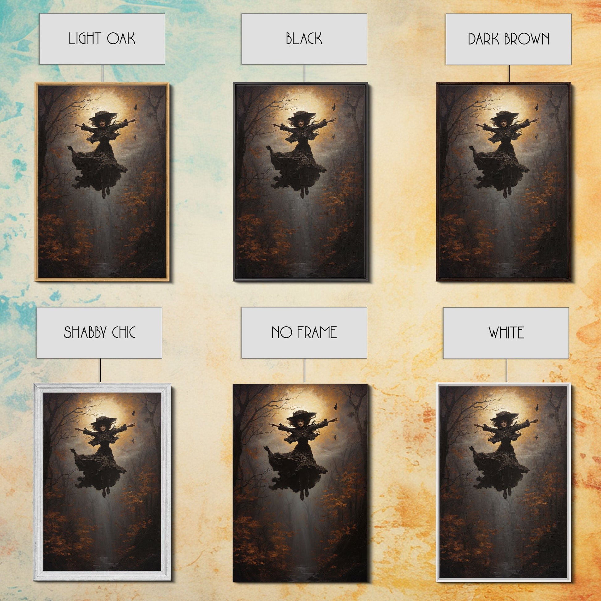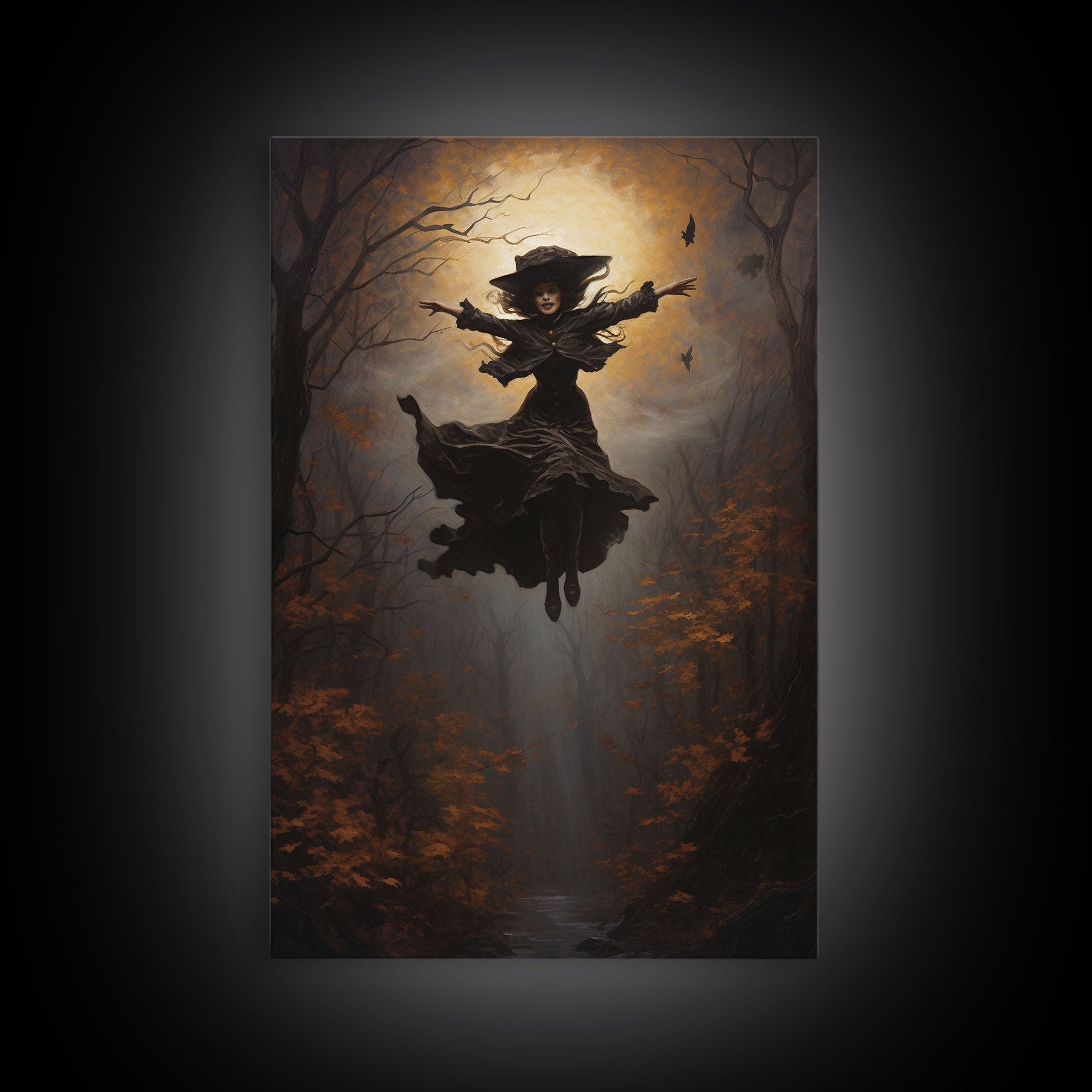 The Wicked Witch, Halloween Canvas, Framed Canvas Print, Spooky Gothic Oil Painting, Witch Flying Through The Air Against A Full Moon, Witch