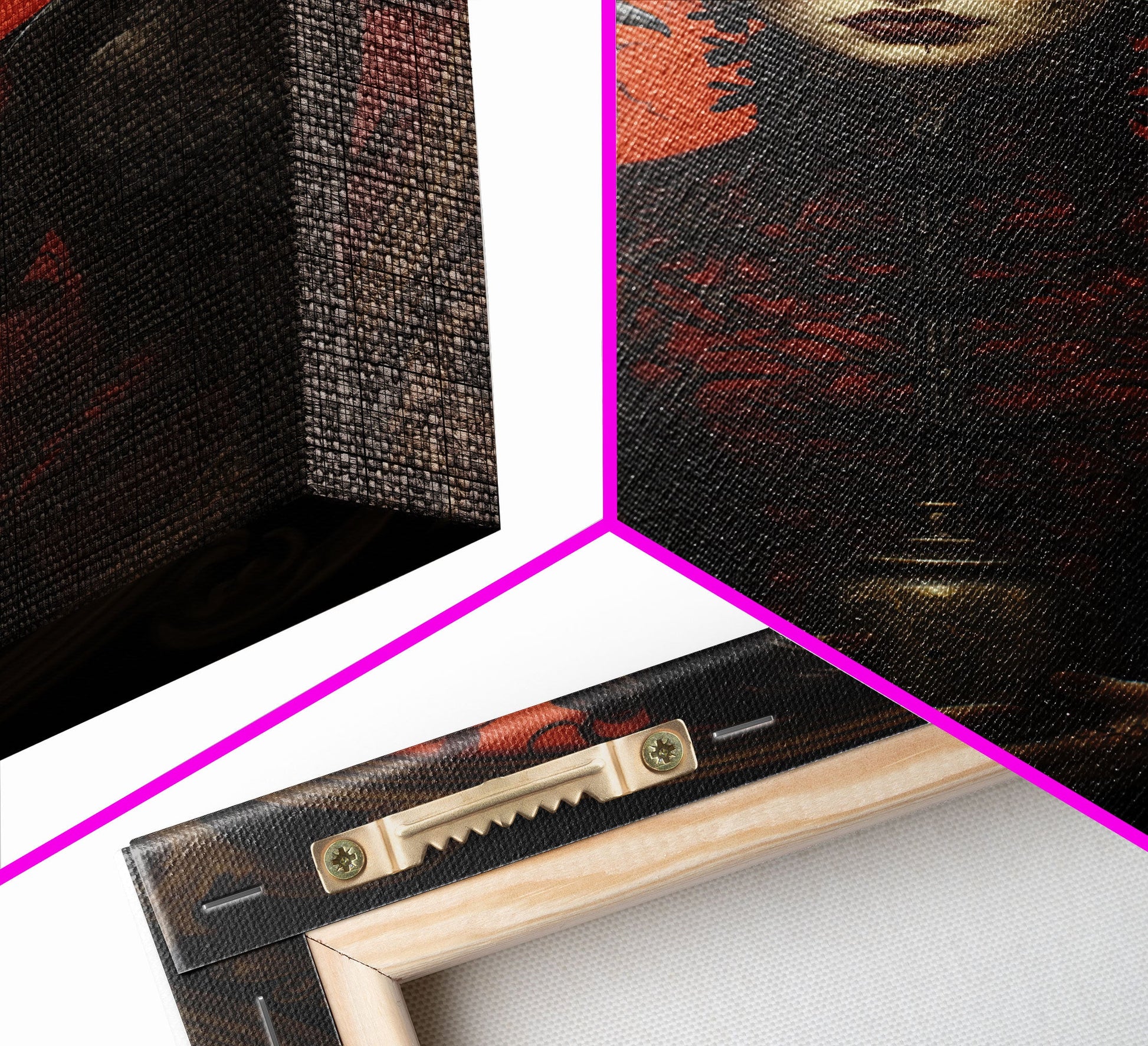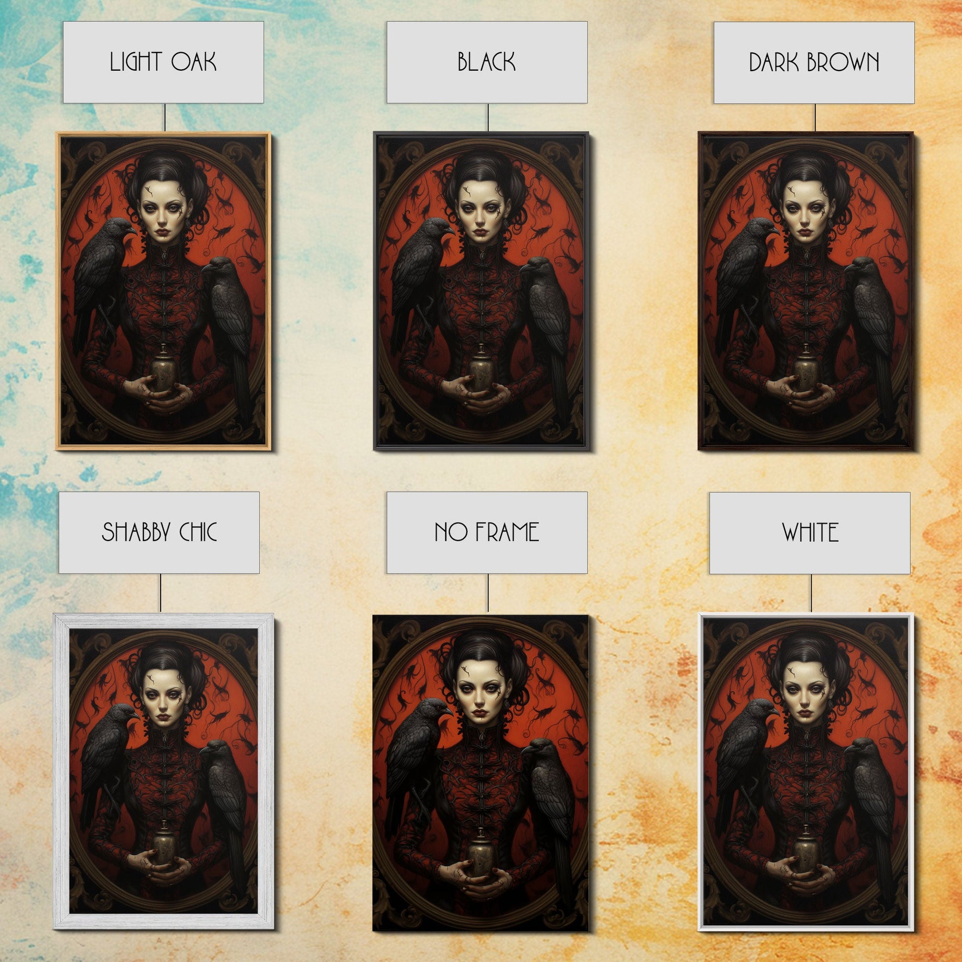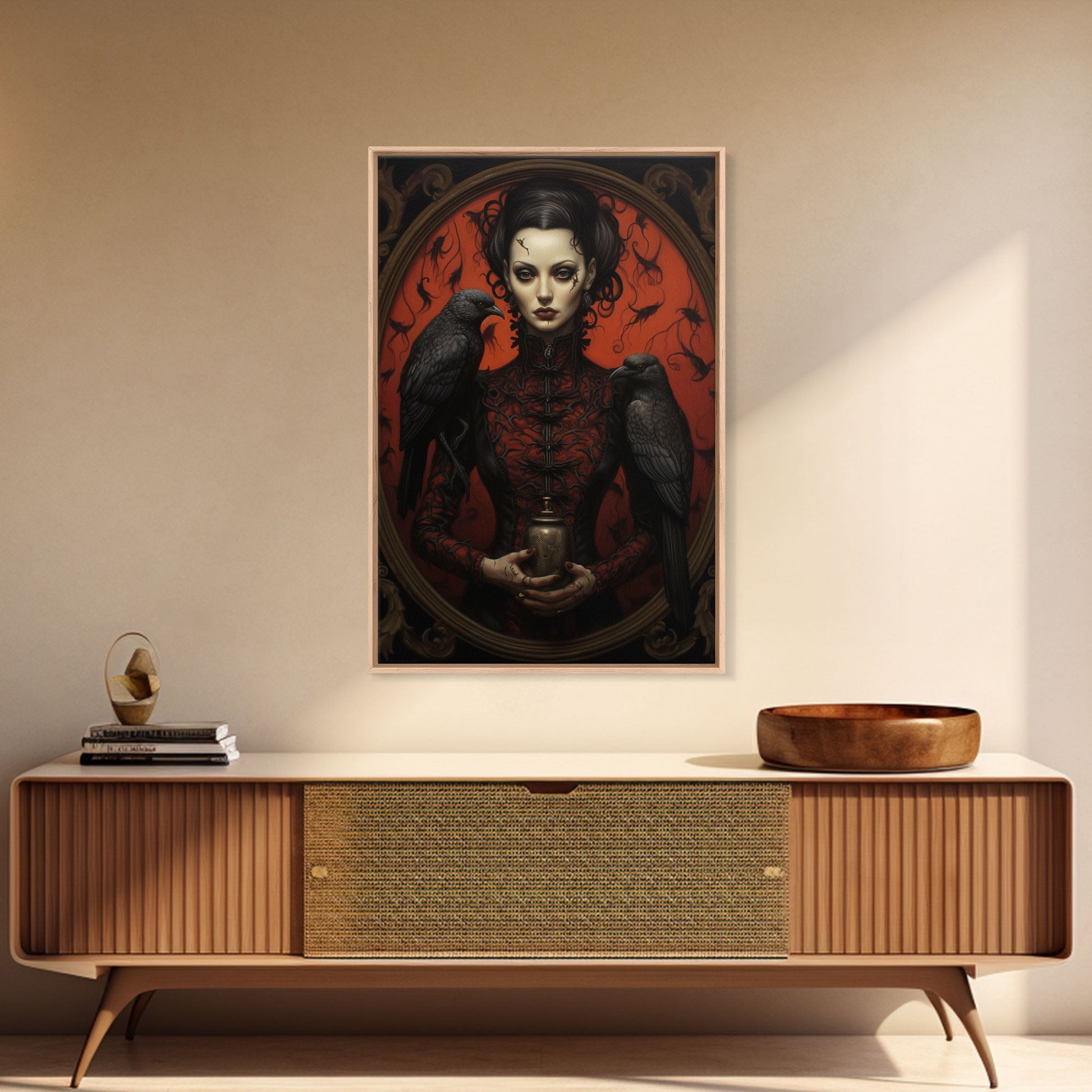 The Witch and Her Crows, Framed Canvas, Oil Painting Print, Halloween Decor, Gothic Art, Dark Academia, Witchcraft Halloween Art, Raven Art