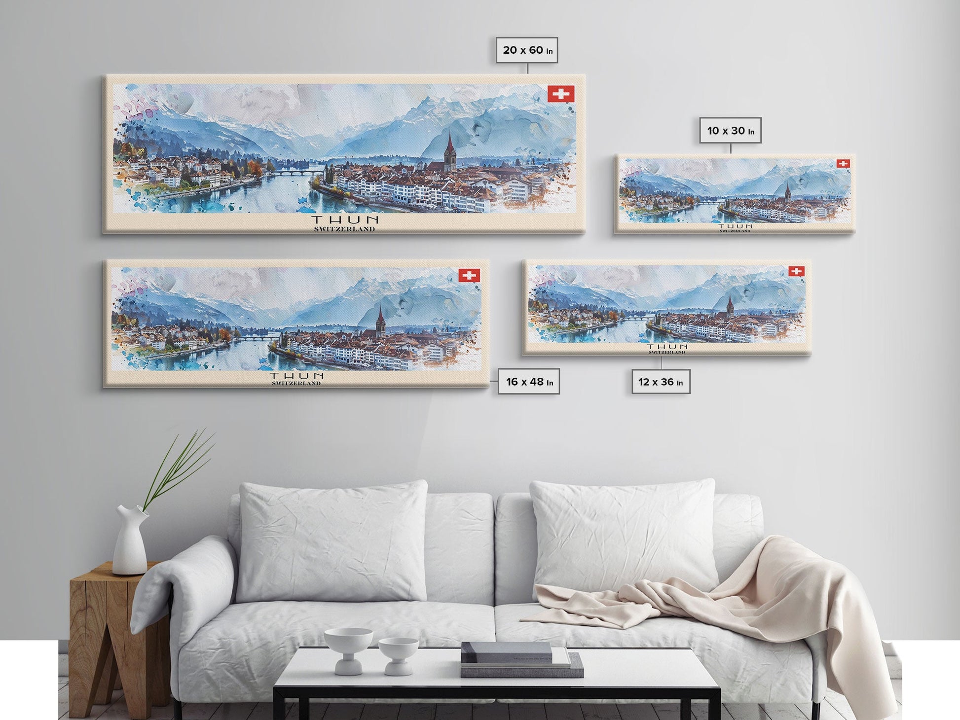 Thun Switzerland Panoramic Travel Poster, Framed Canvas Print or Metal Wall Art, Travel Art, Home Decor, Panoramic Painting, Midcentury Art