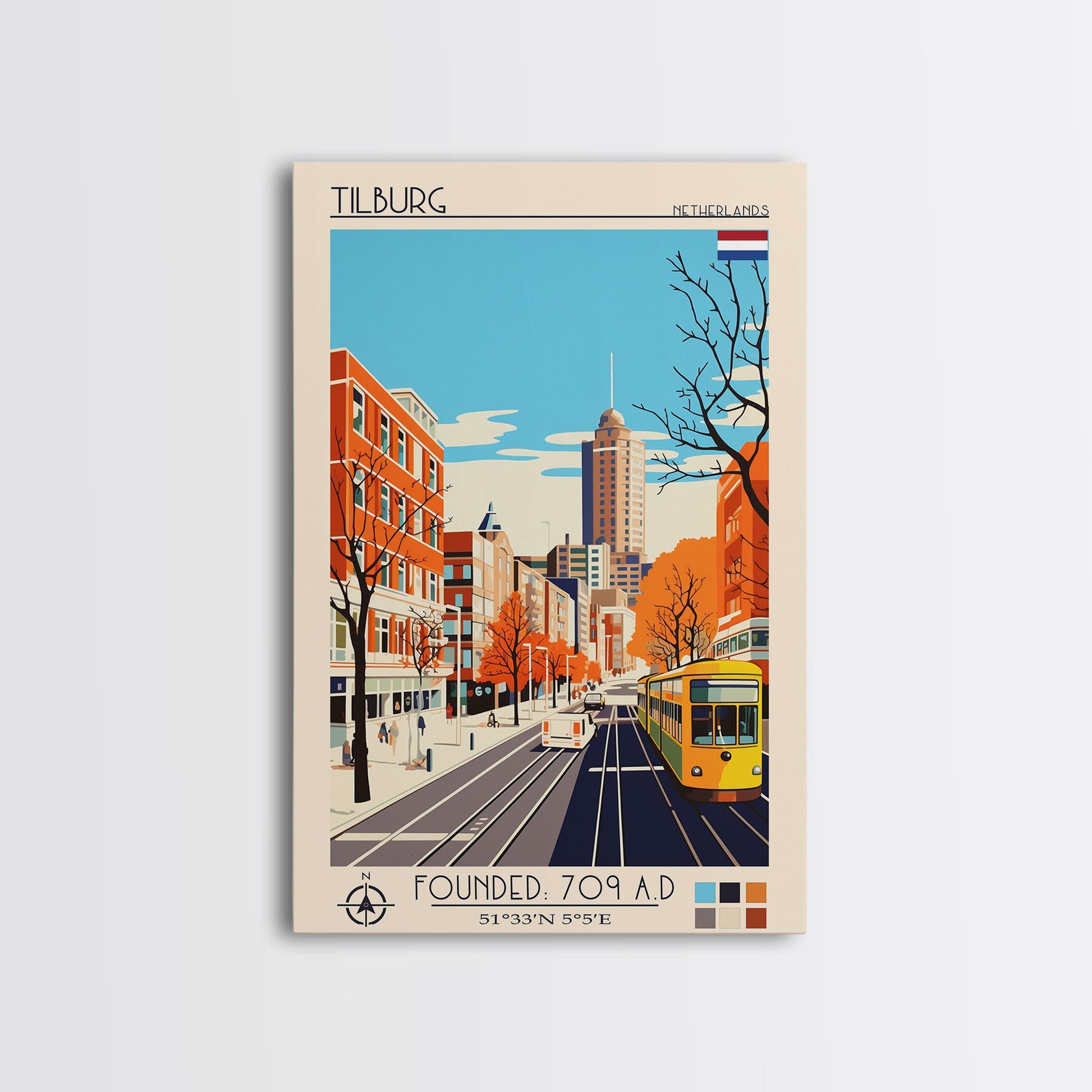 Tilburg Netherlands Travel Poster Framed Canvas Print, Midcentury Modern Art, Pop Art Wall Decor, Living Room Art, Vacation Gift