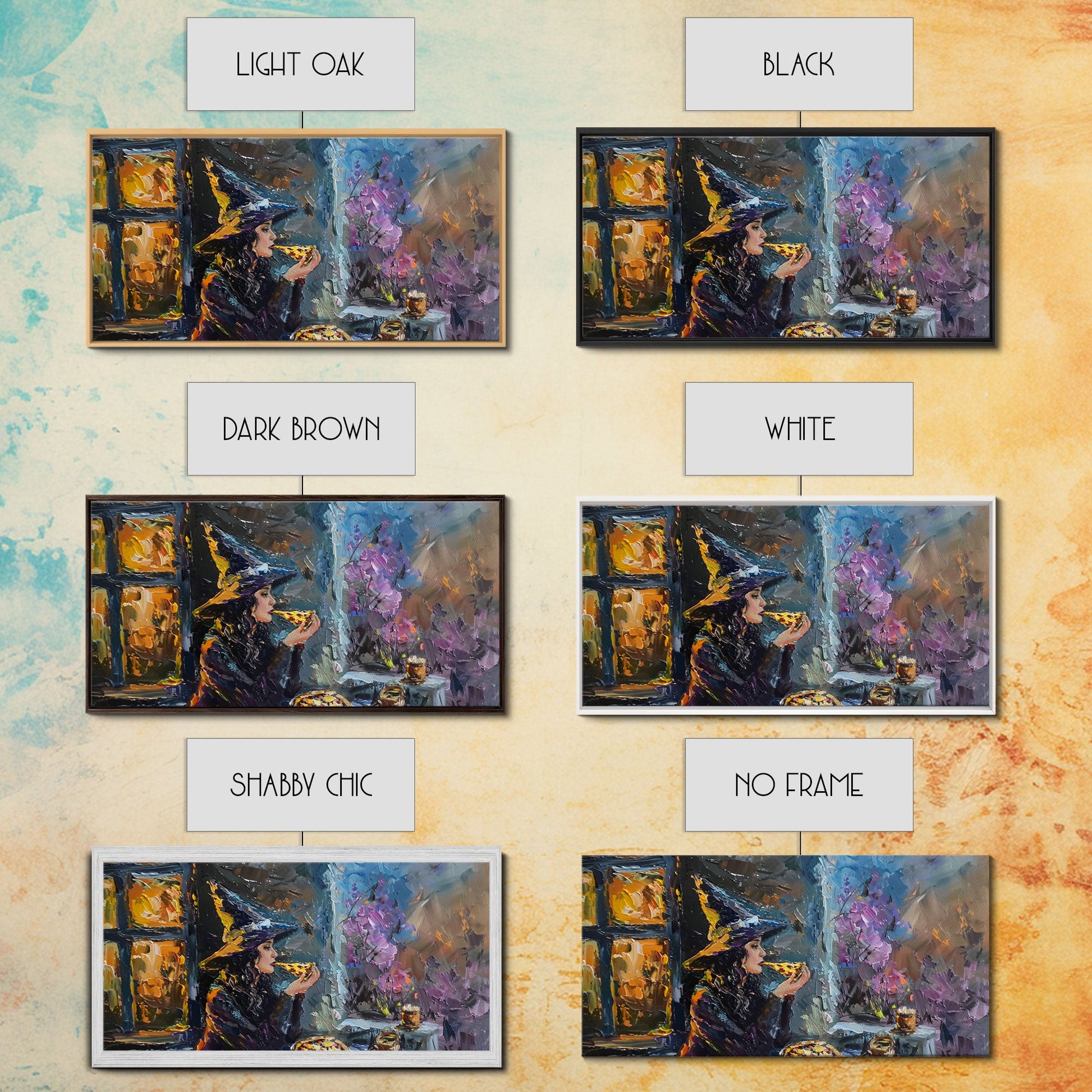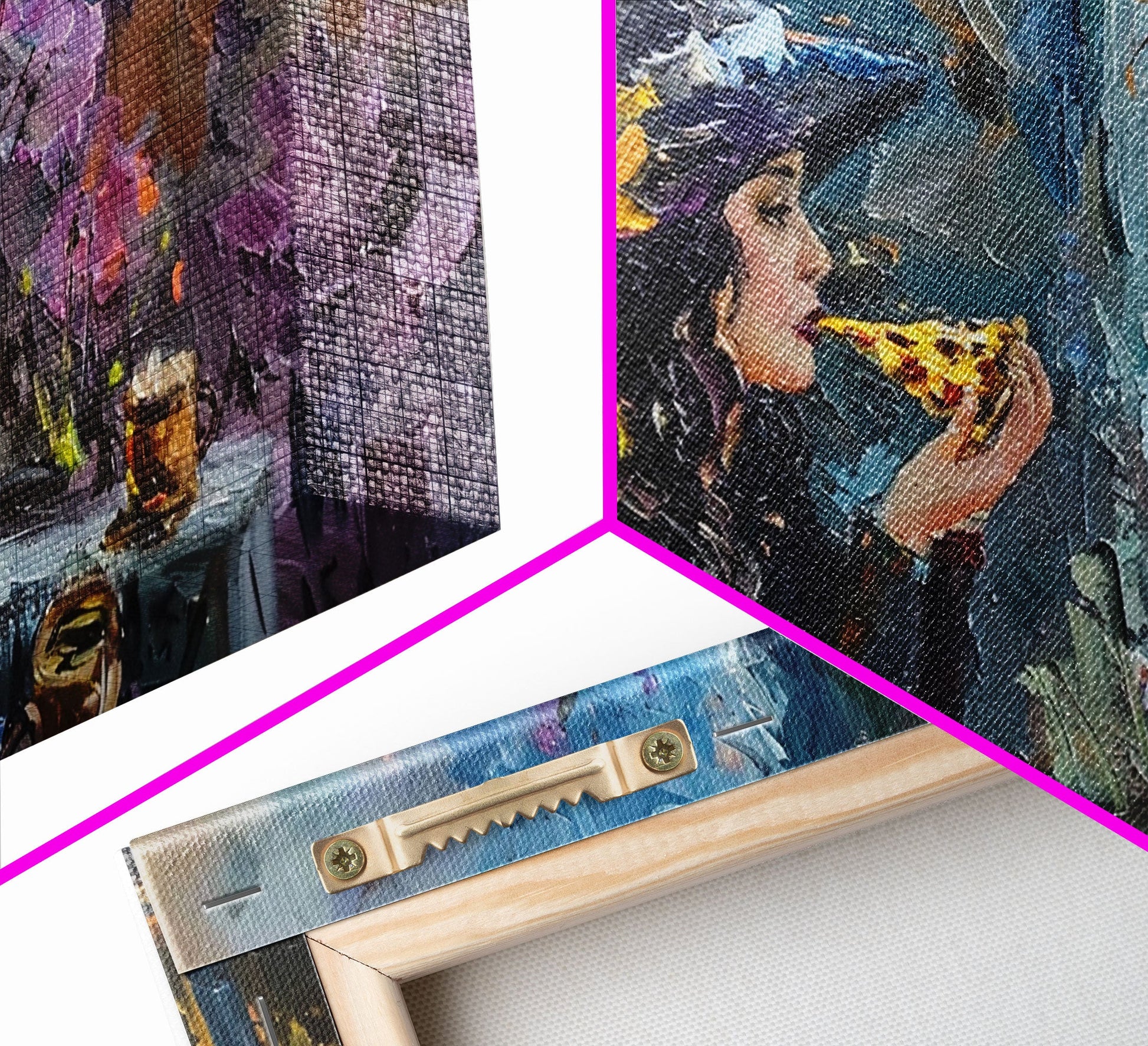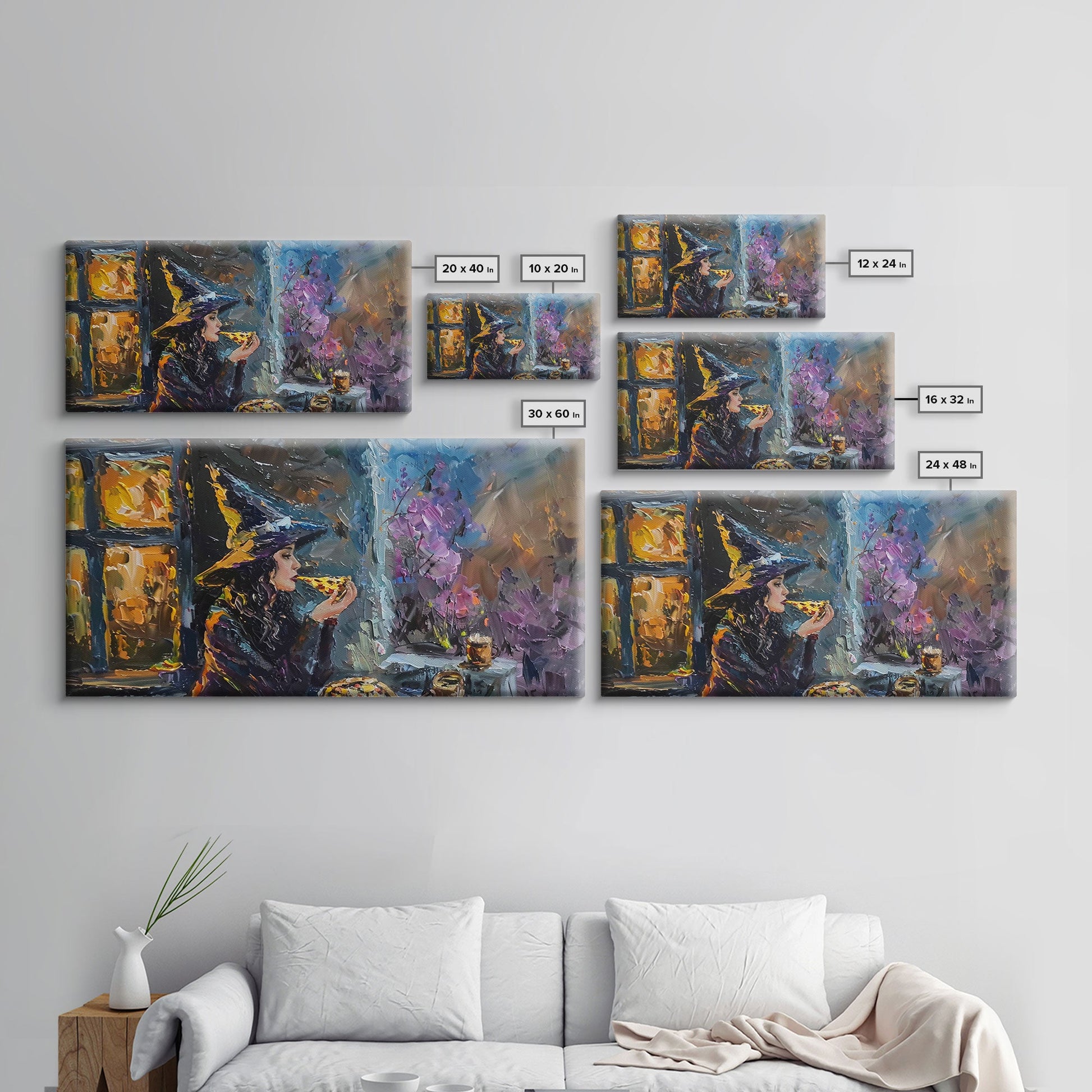 Time For Some Pizza, Witch Havin' a slice of Pizza, Framed Canvas Print, Funny Halloween Art