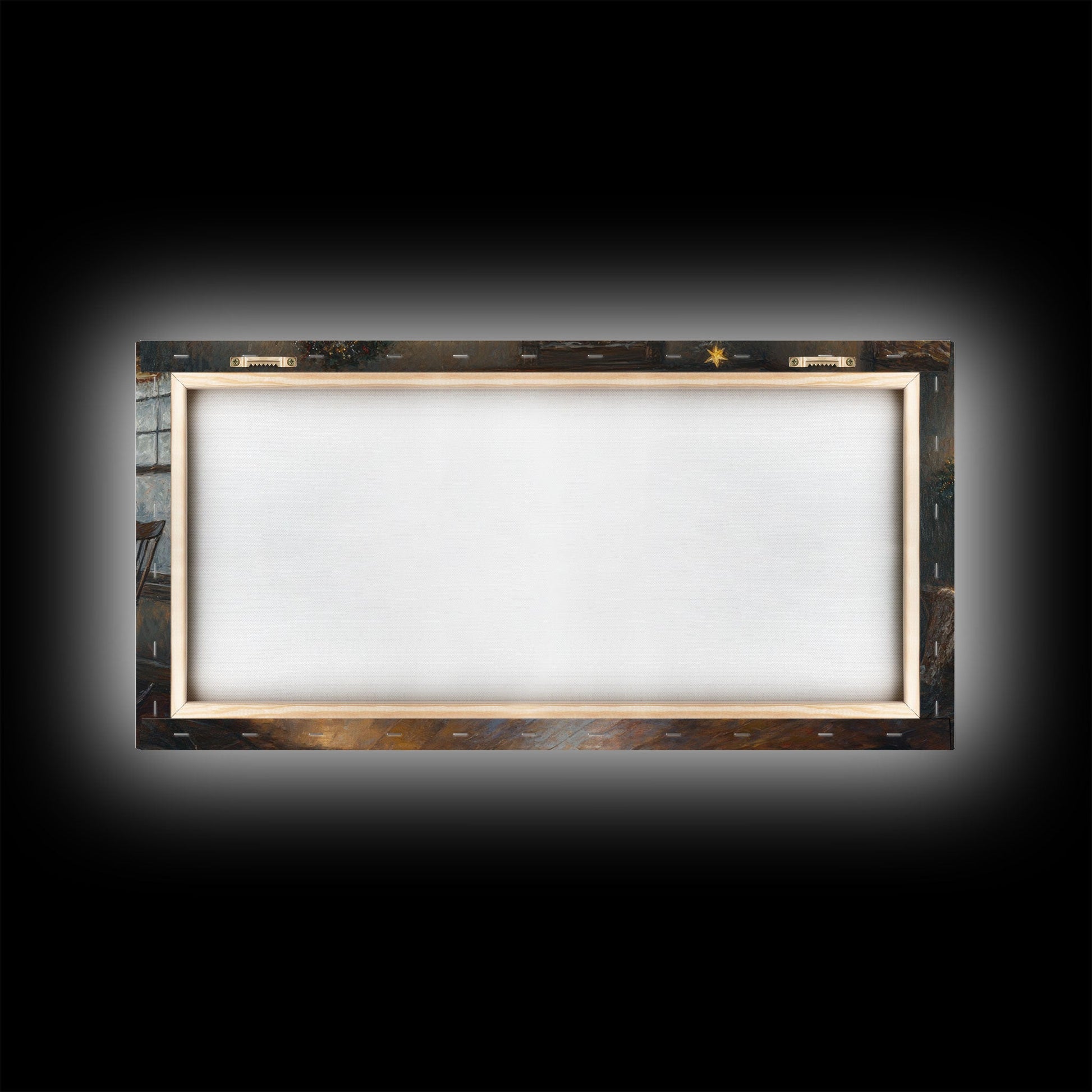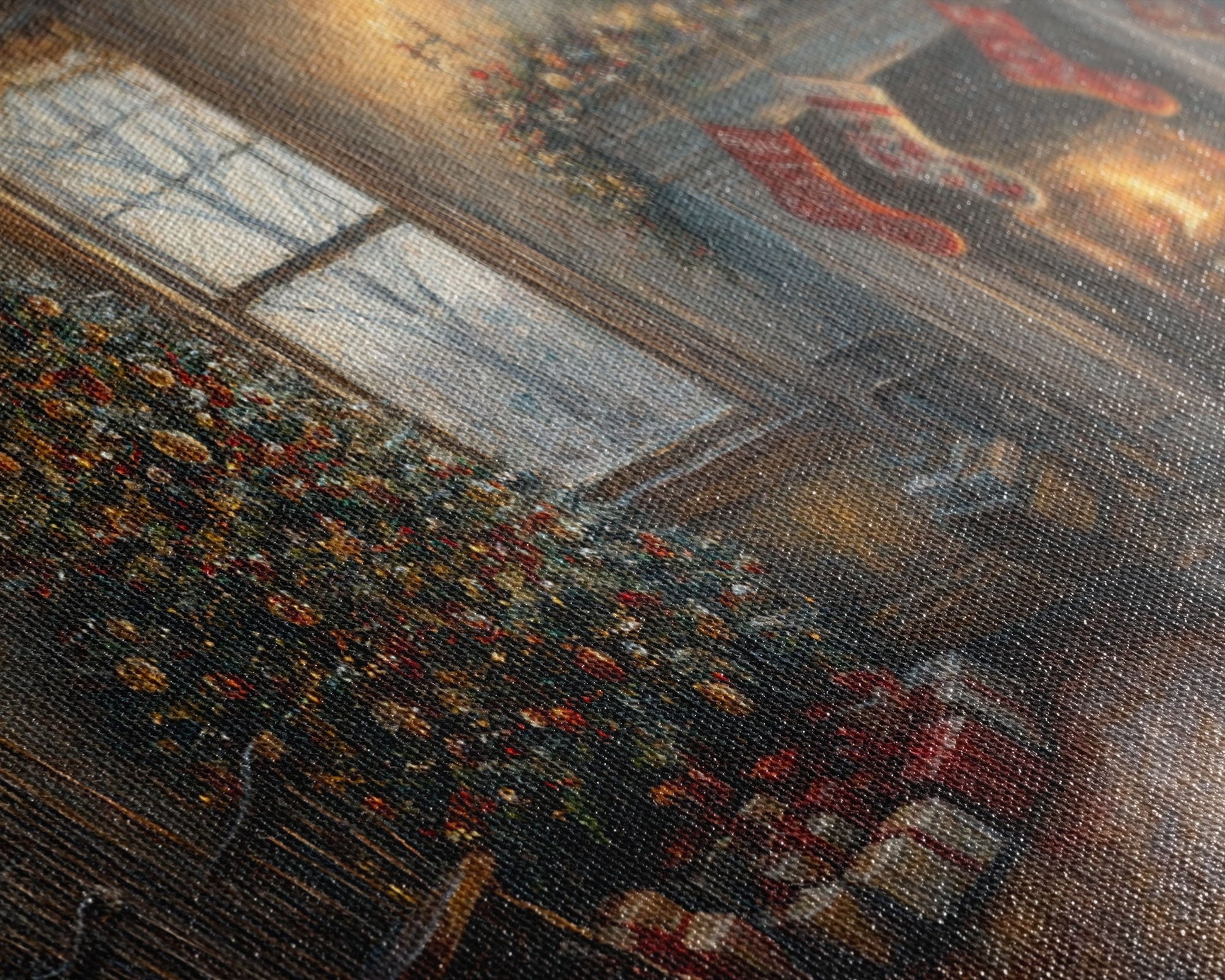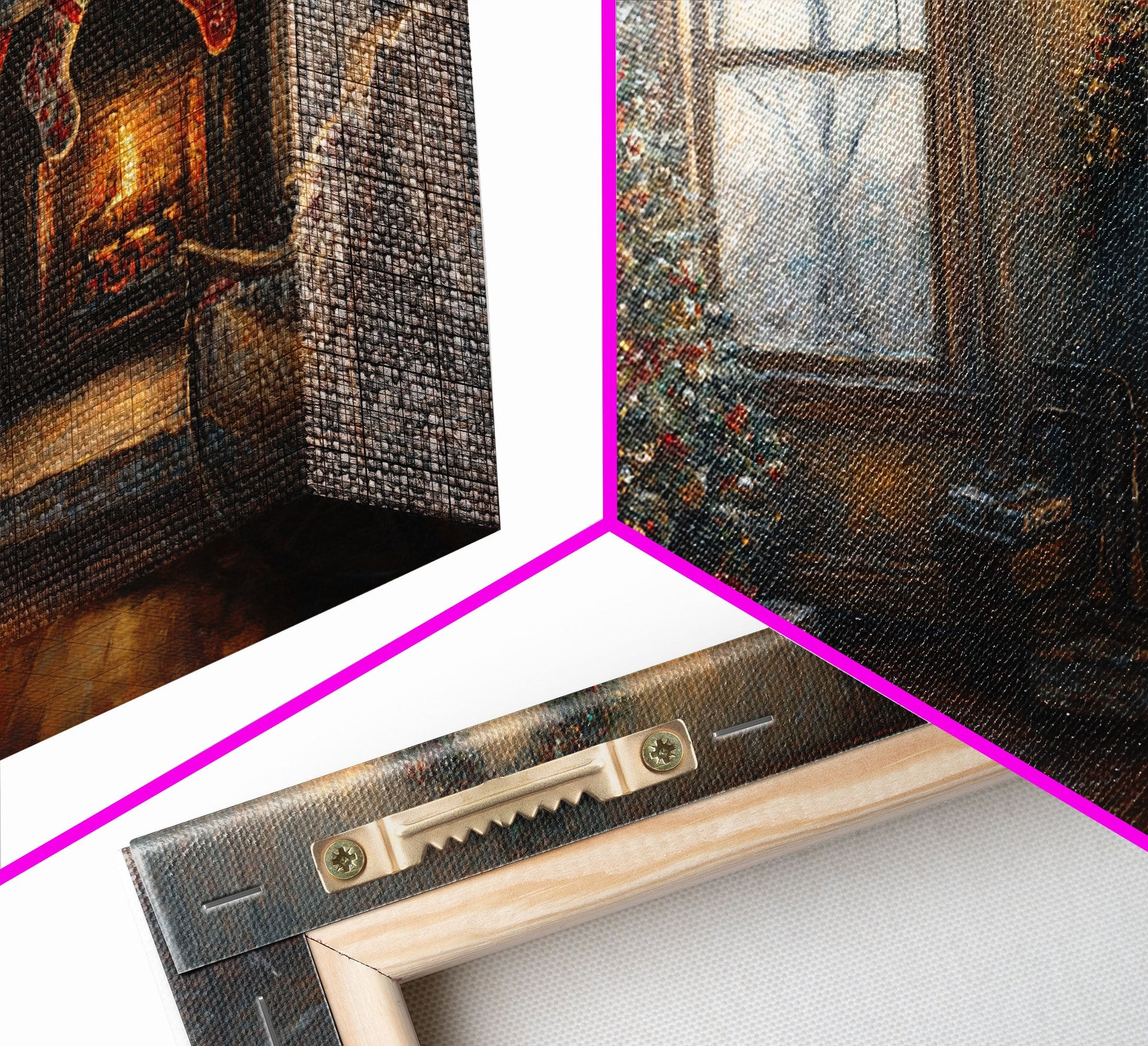 Traditional Christmas Living Room Framed Canvas Print with Tree and Stockings, Rustic Christmas Decor, Best Holiday Gift Wall Art