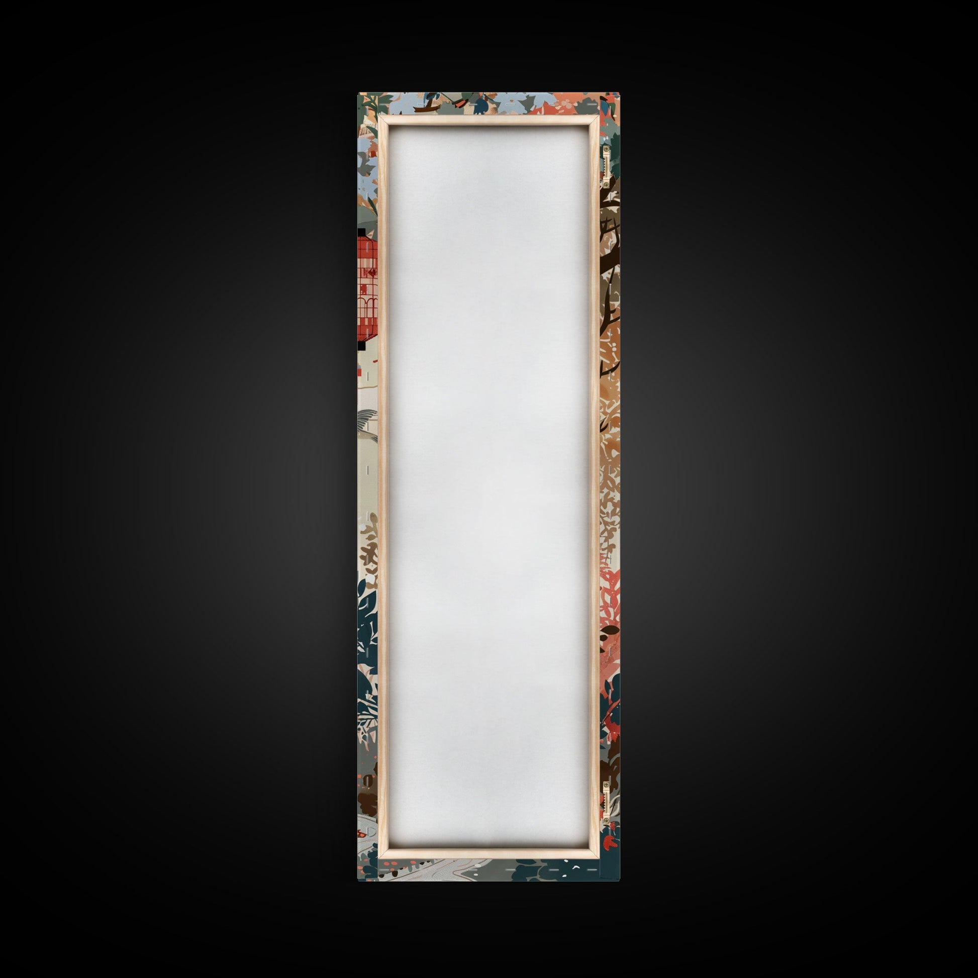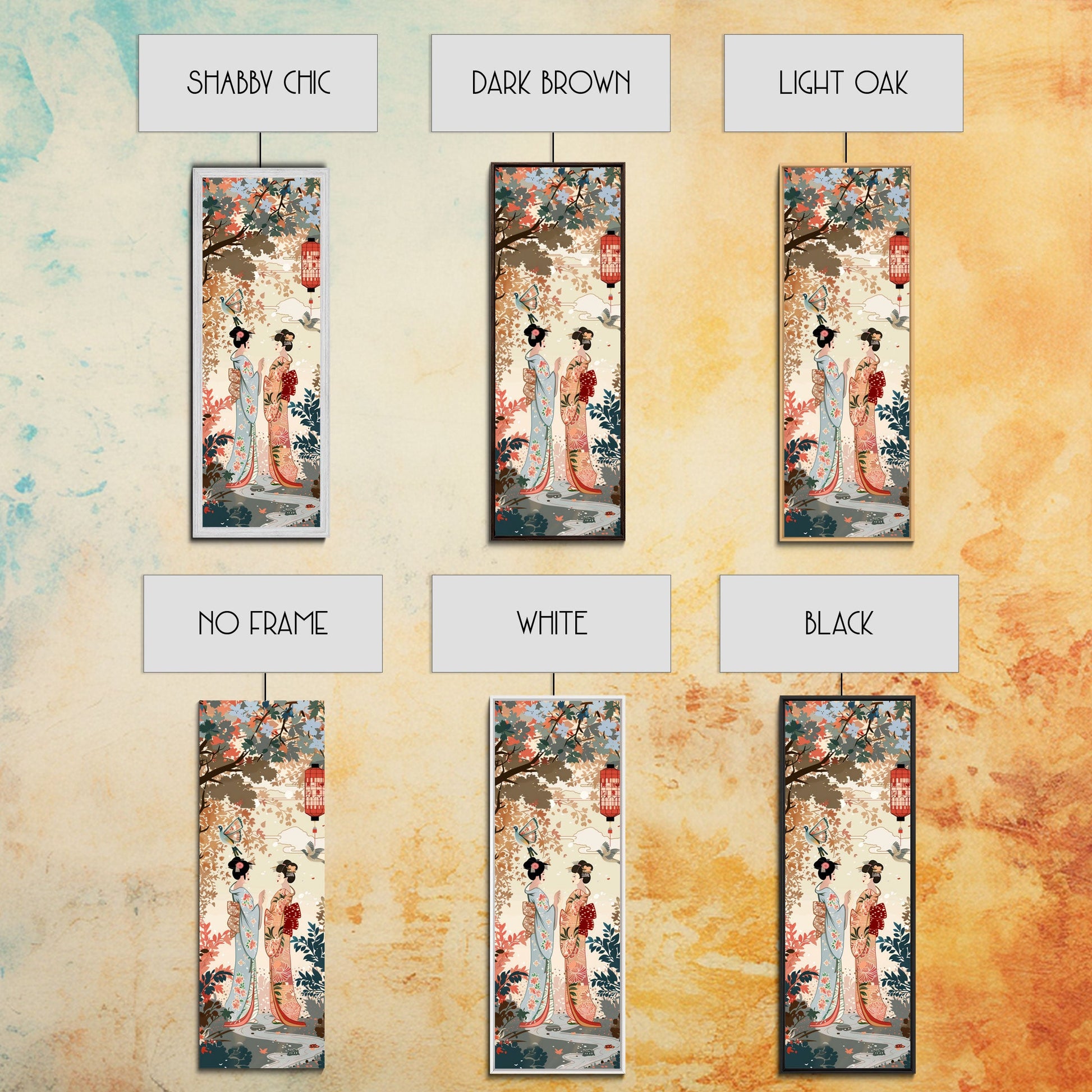 Traditional Geishas Skinny Art Tall Art Japanese Ukiyo-e Inspired Framed Canvas Print for Elegant Home and Office Decor