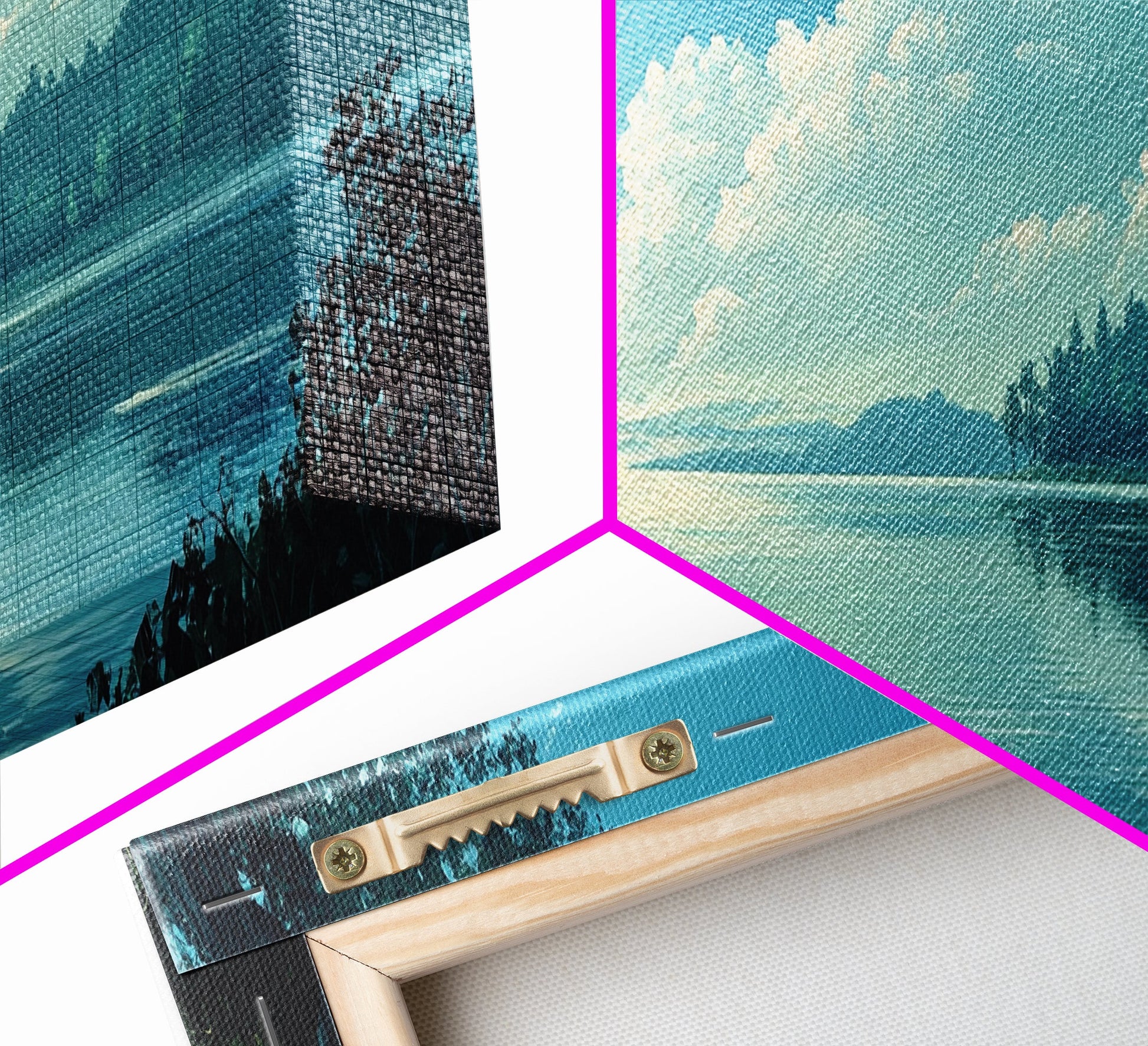 Tranquil Lake Landscape Painting Nature Serenity Wall Art Forest Reflection Artwork Minimalist Modern Home Decor