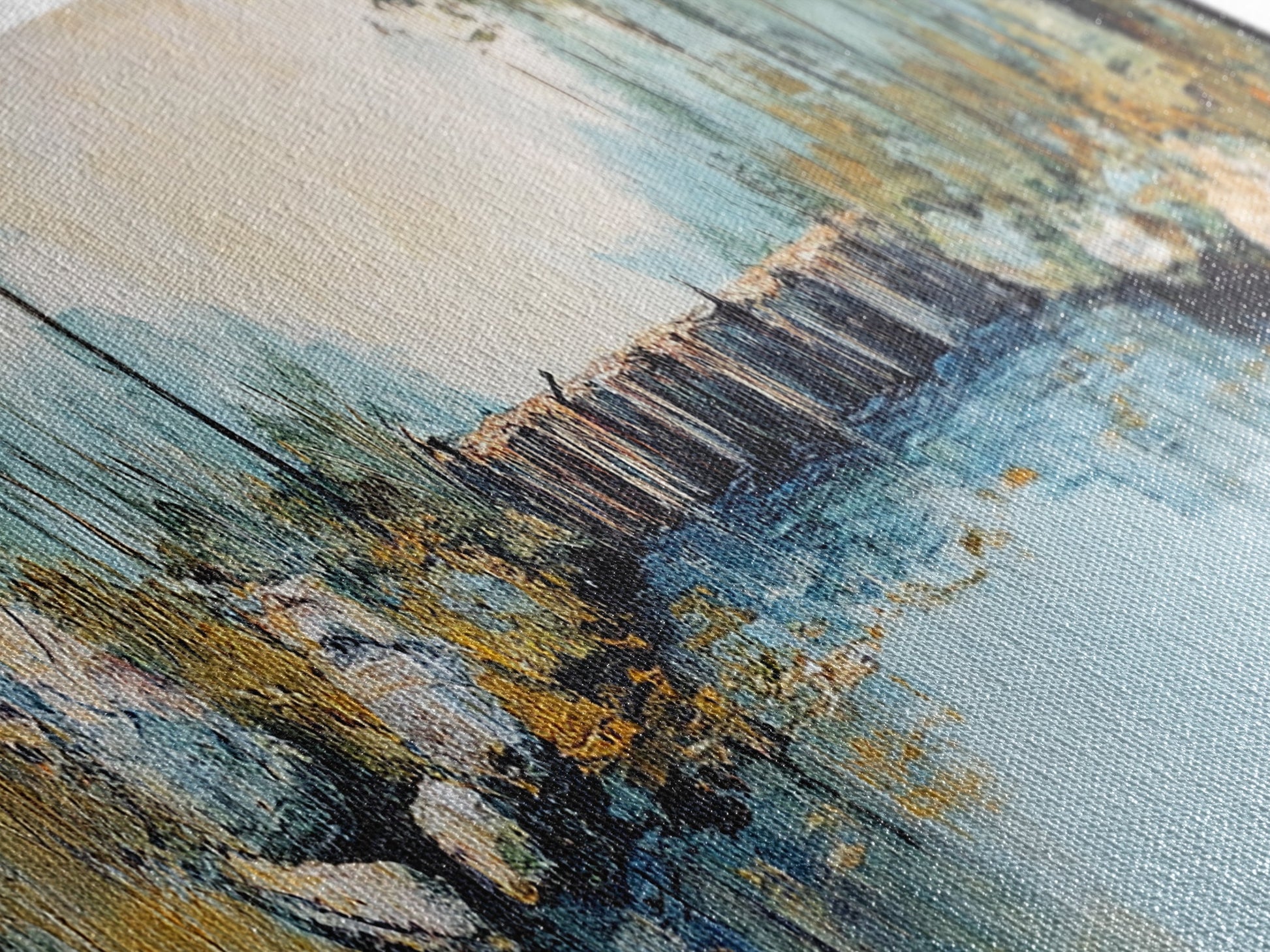 Tranquil River Framed Canvas Print Nature Landscape Art Rustic Cabin Decor Serene Waterfall Painting Lodge Wall Art Autumn Forest Scene