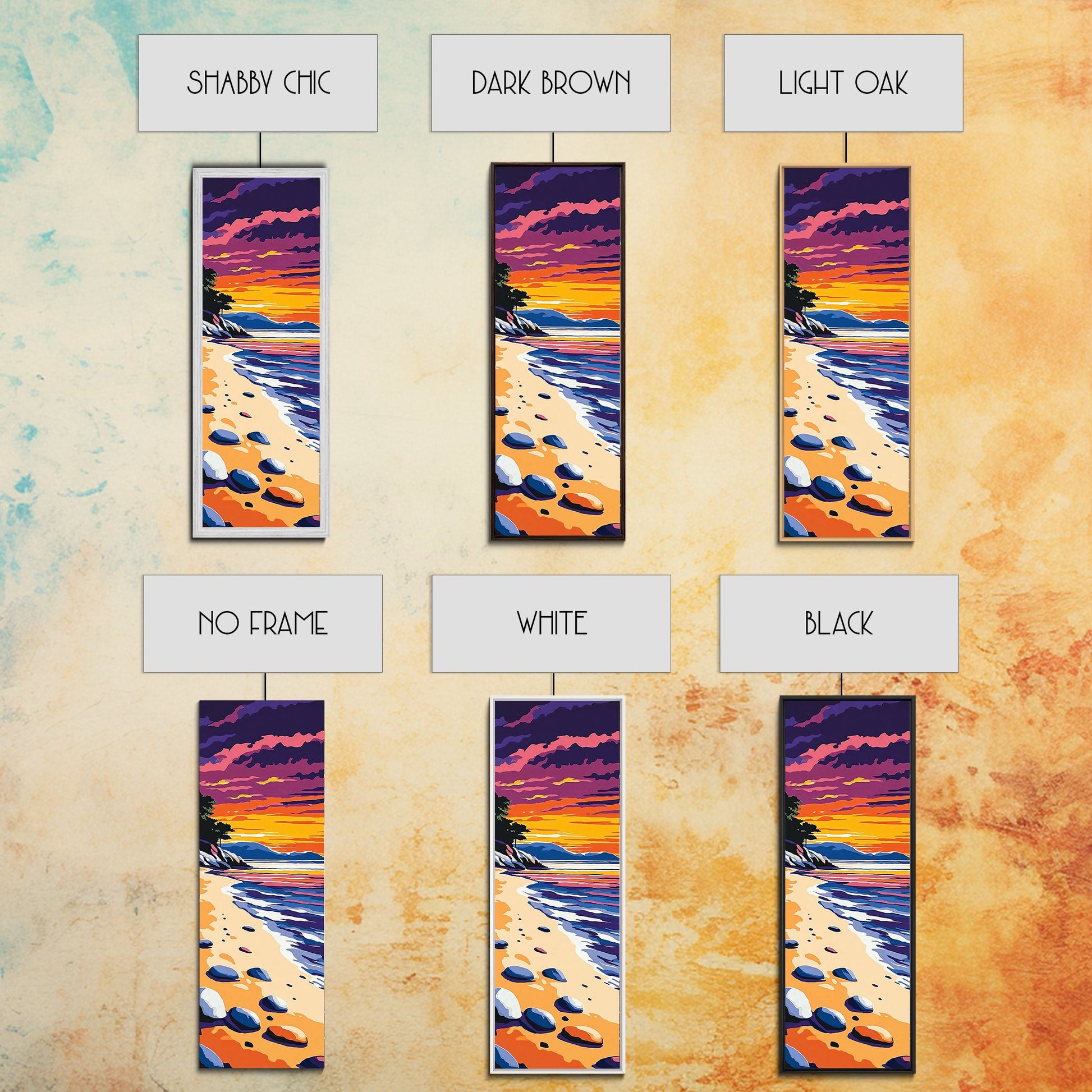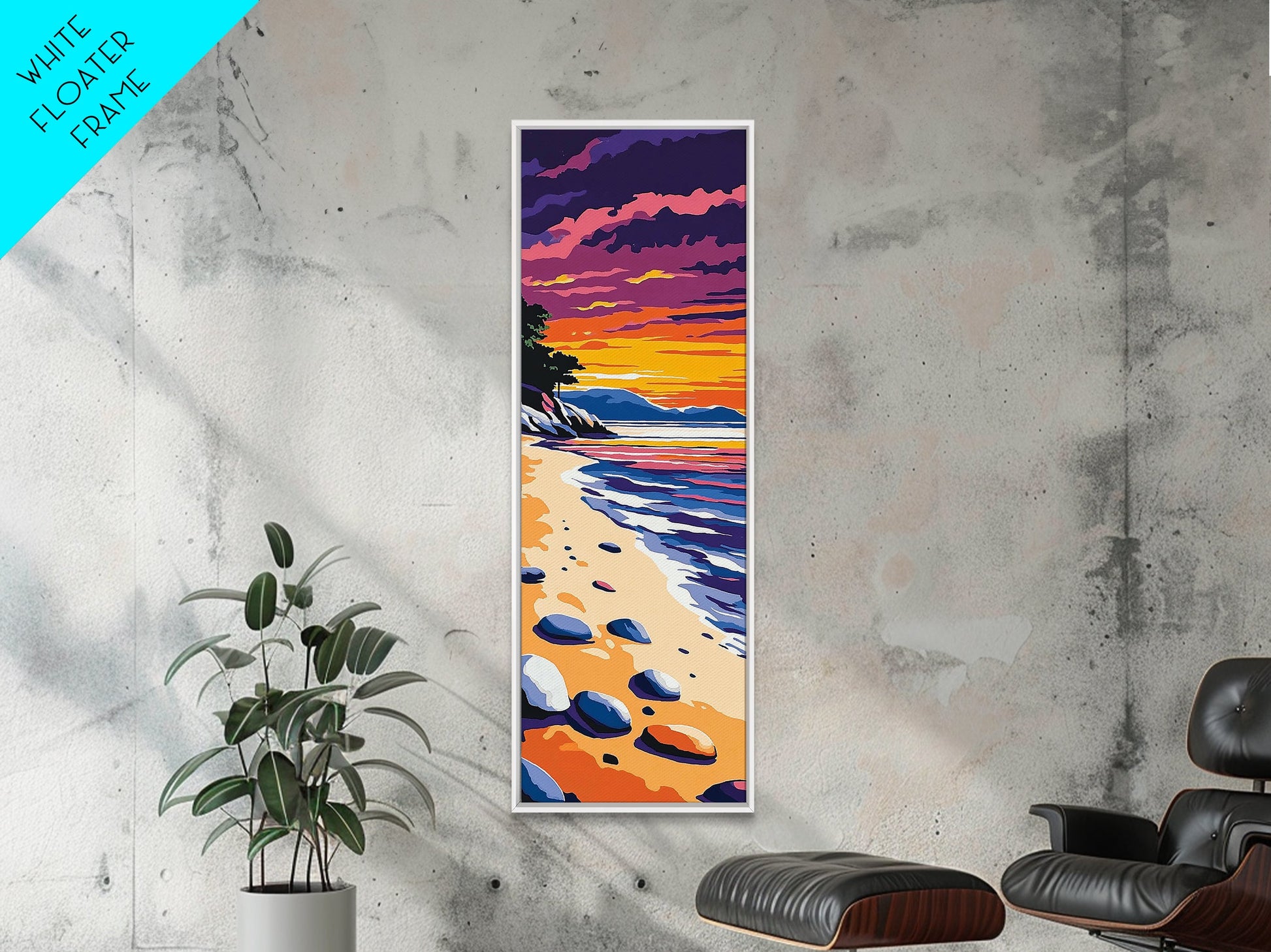 Tranquil Shoreline Sunset, Framed Canvas Print, Serene Beach Art, Vibrant Ocean View, Coastal Living Decor, Boho Aesthetic