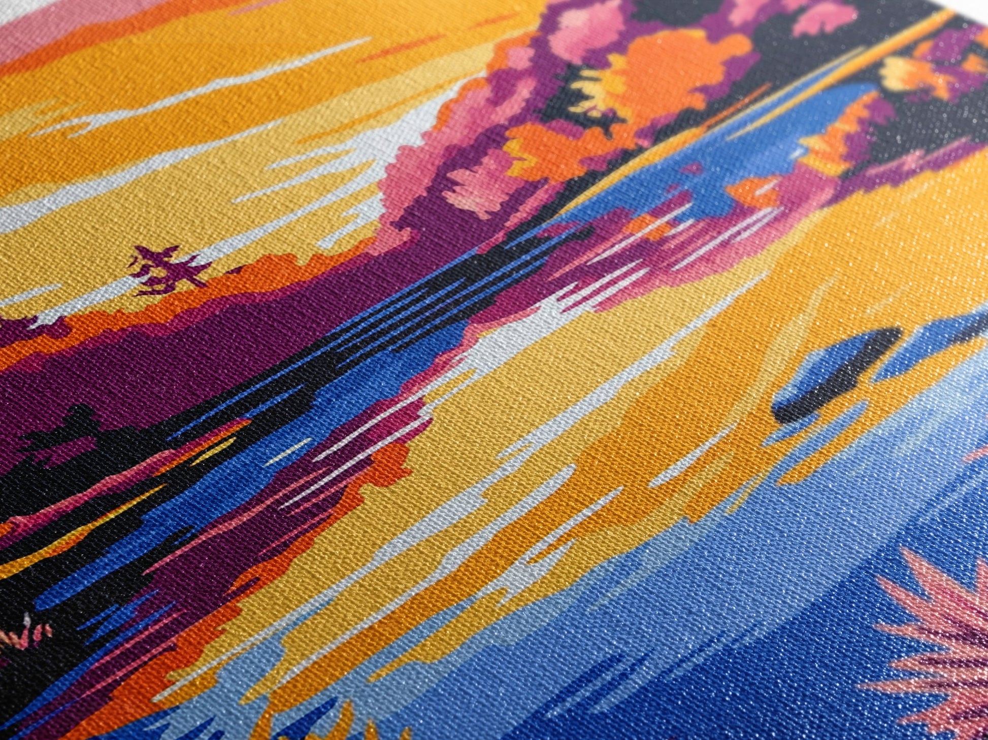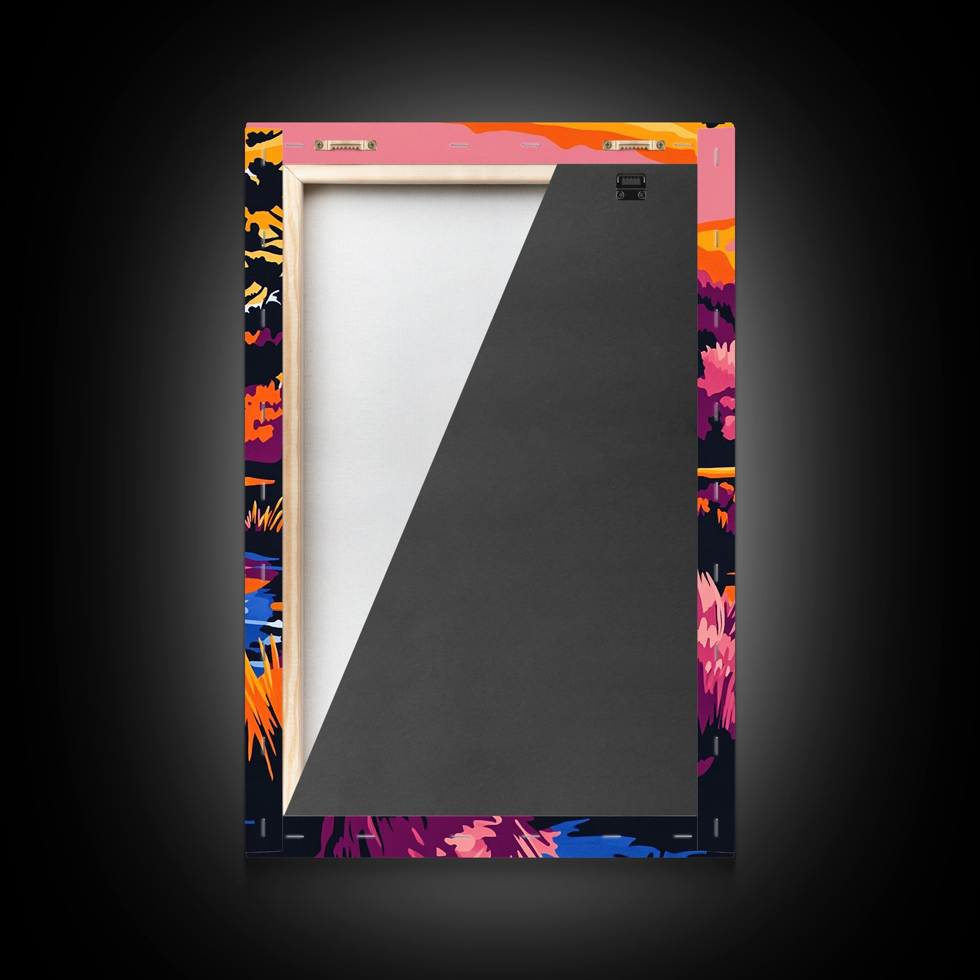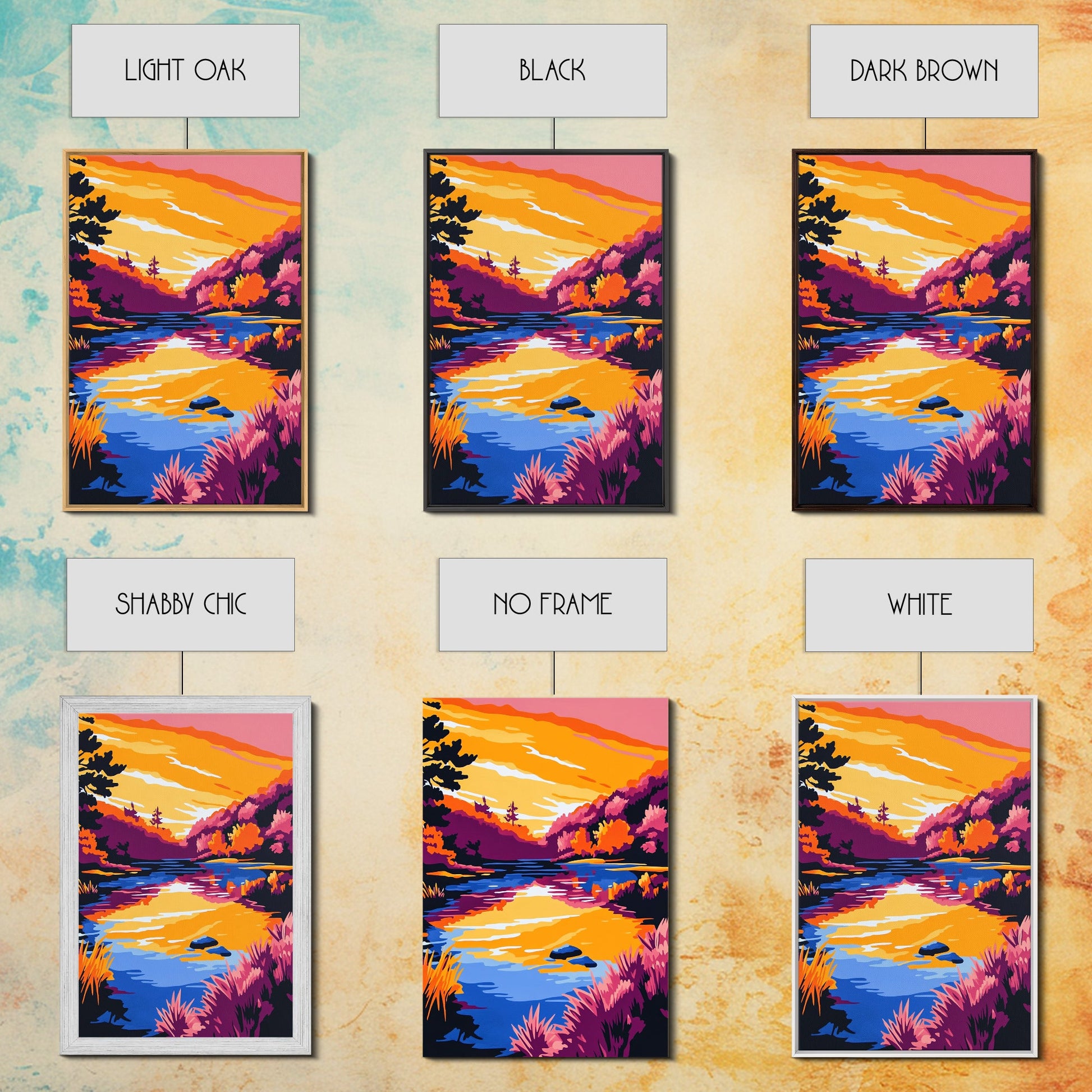 Tranquil Stream, Sunset Reflection, Framed Canvas Print, Cozy Wall Art, Nature Retreat Decor, Living Room Artwork, Serene Landscape