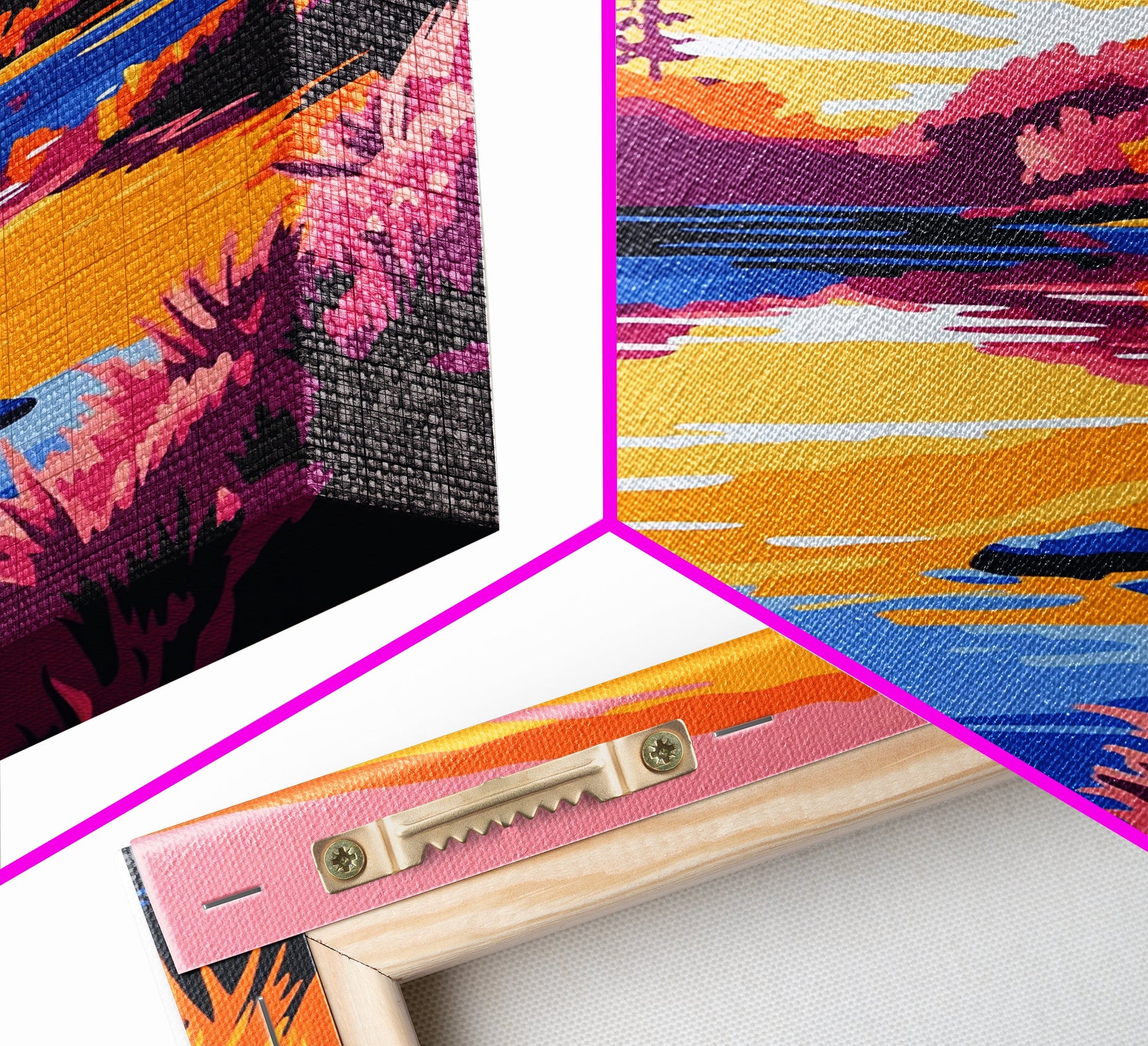 Hello and thank you for taking the time to view our modern high quality giclée artwork! We offer both posters and stretched canvas prints. Our posters are printed on Ultra Matte 60 lb / 230 GSM high quality photo paper, with a thickness of 10 mil. Our canvases are printed on museum grade 350 GSM canvas material with ECO friendly archival grade ink, then hand stretched and stapled over premium, FSC certified and shrink resistant frames. Designed and built to last a lifetime.