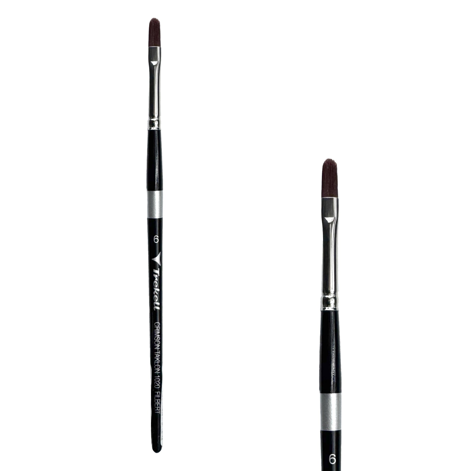 Trekell Crimson Taklon Short Handle Artist Brush - Size #6 Filbert