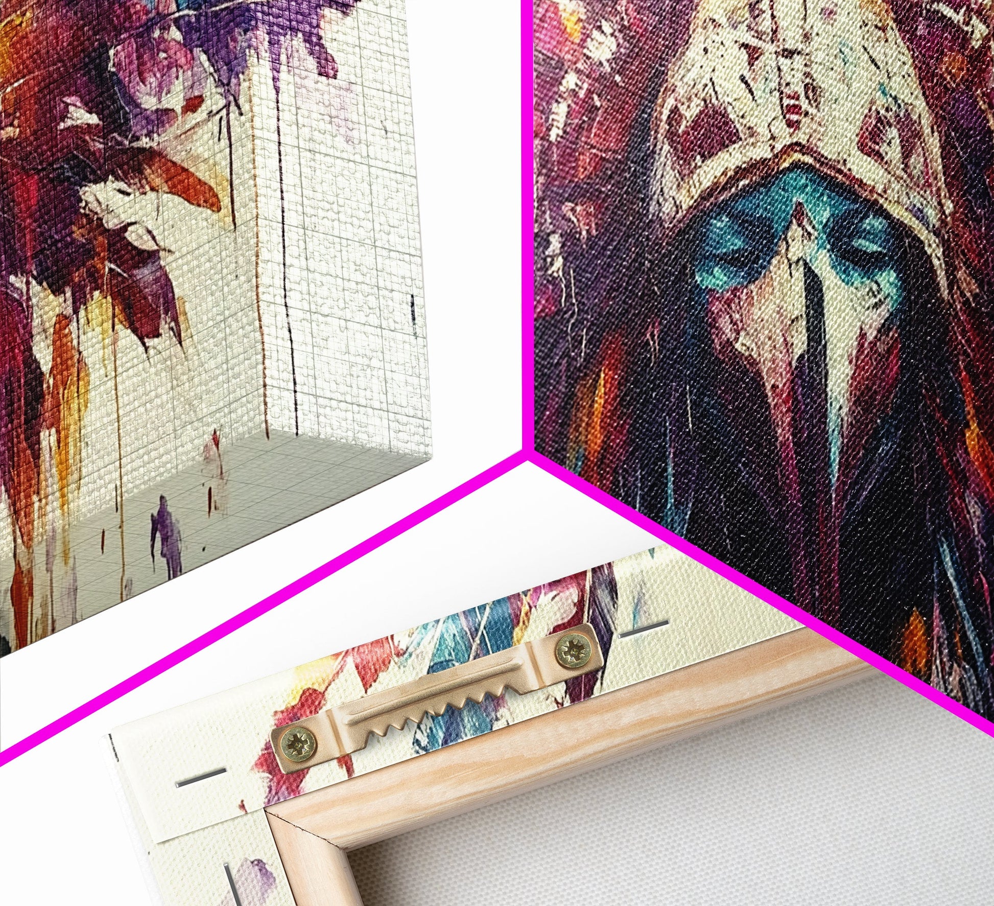 Tribal Warrior, Framed Canvas Print, dark angels wall art, moody art, abstract portrait, afrocentric wall art, gothic painting