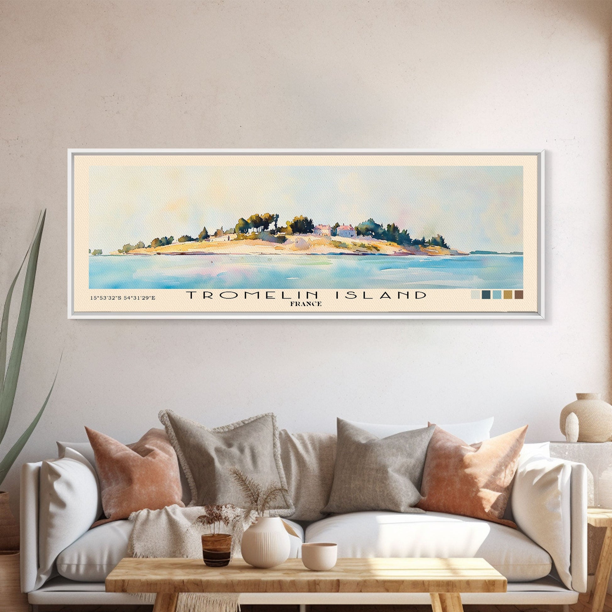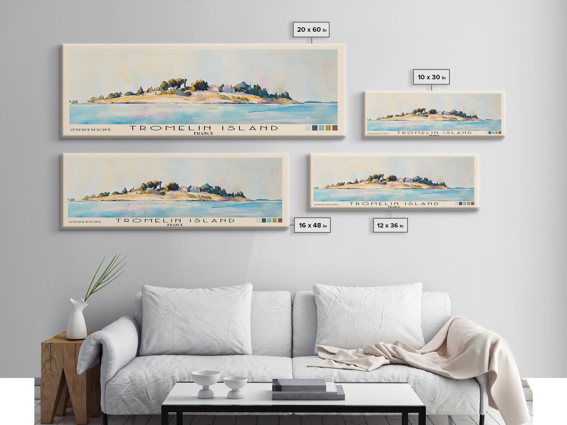 Tromelin Island, France Watercolor Beach Print, Vacation Gift, France Wall Art, Framed Canvas Print, Framed Beach Painting