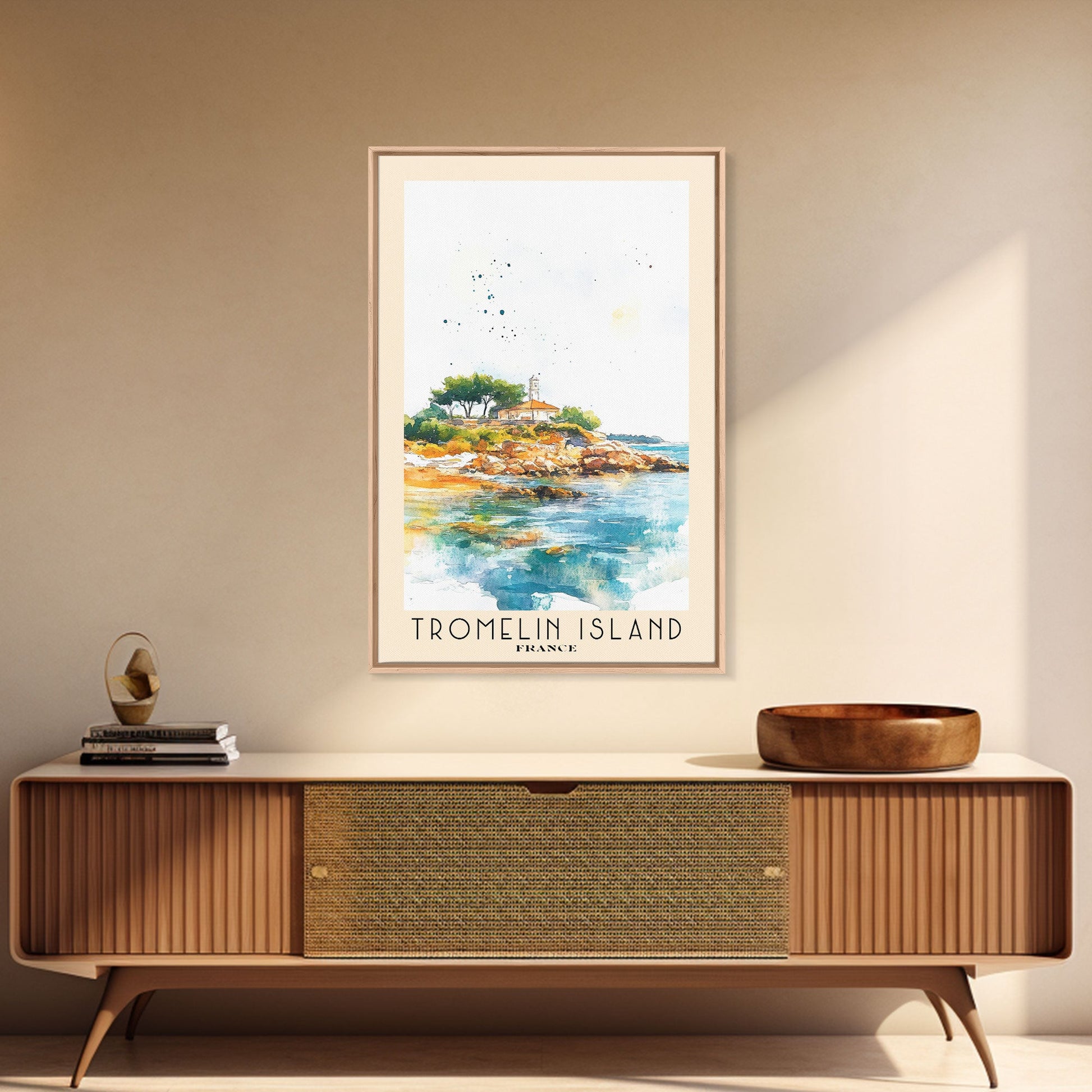 Tromelin Island, France Watercolor Beach Print, Vacation Gift, France Wall Art, Framed Canvas Print, Framed Beach Painting