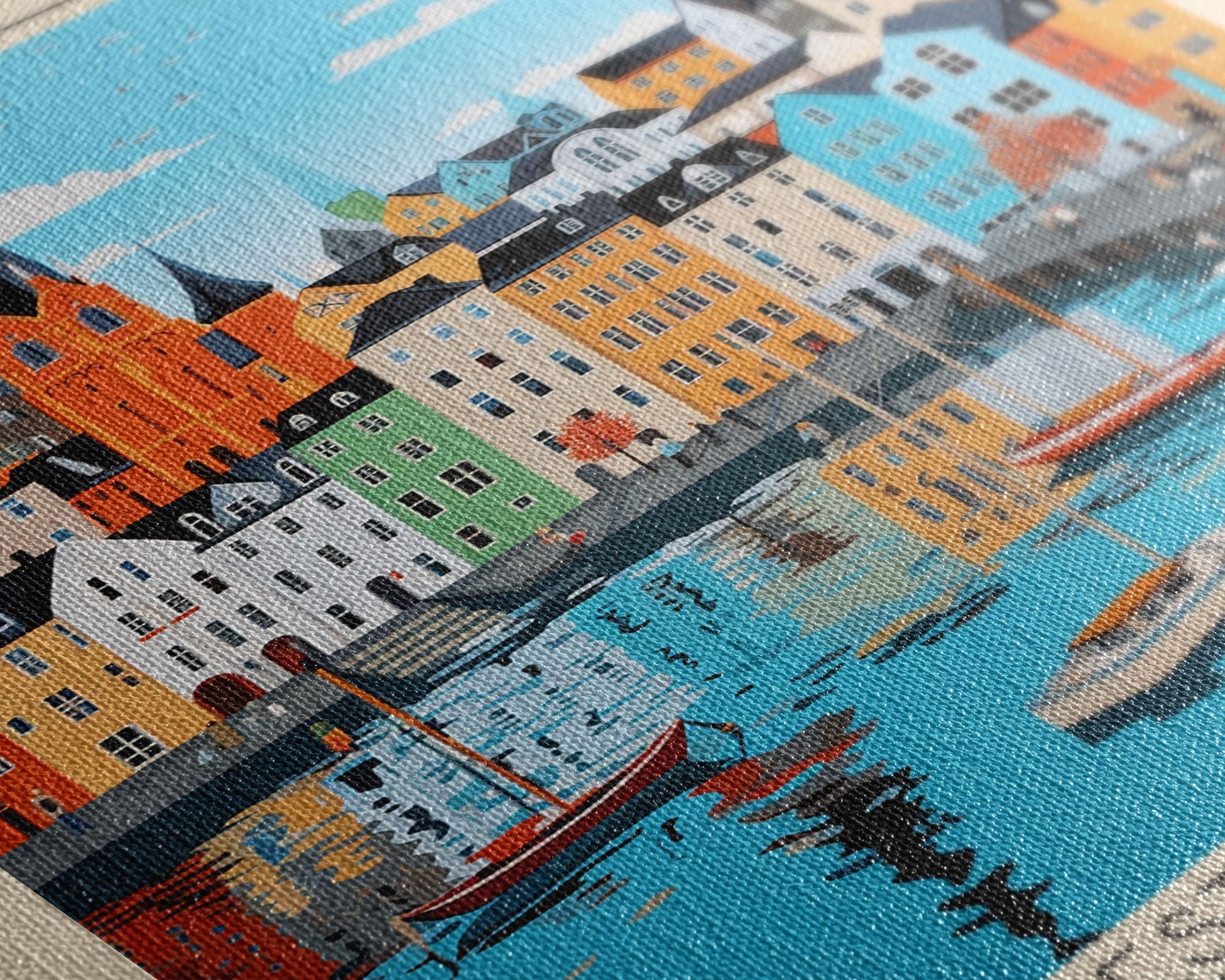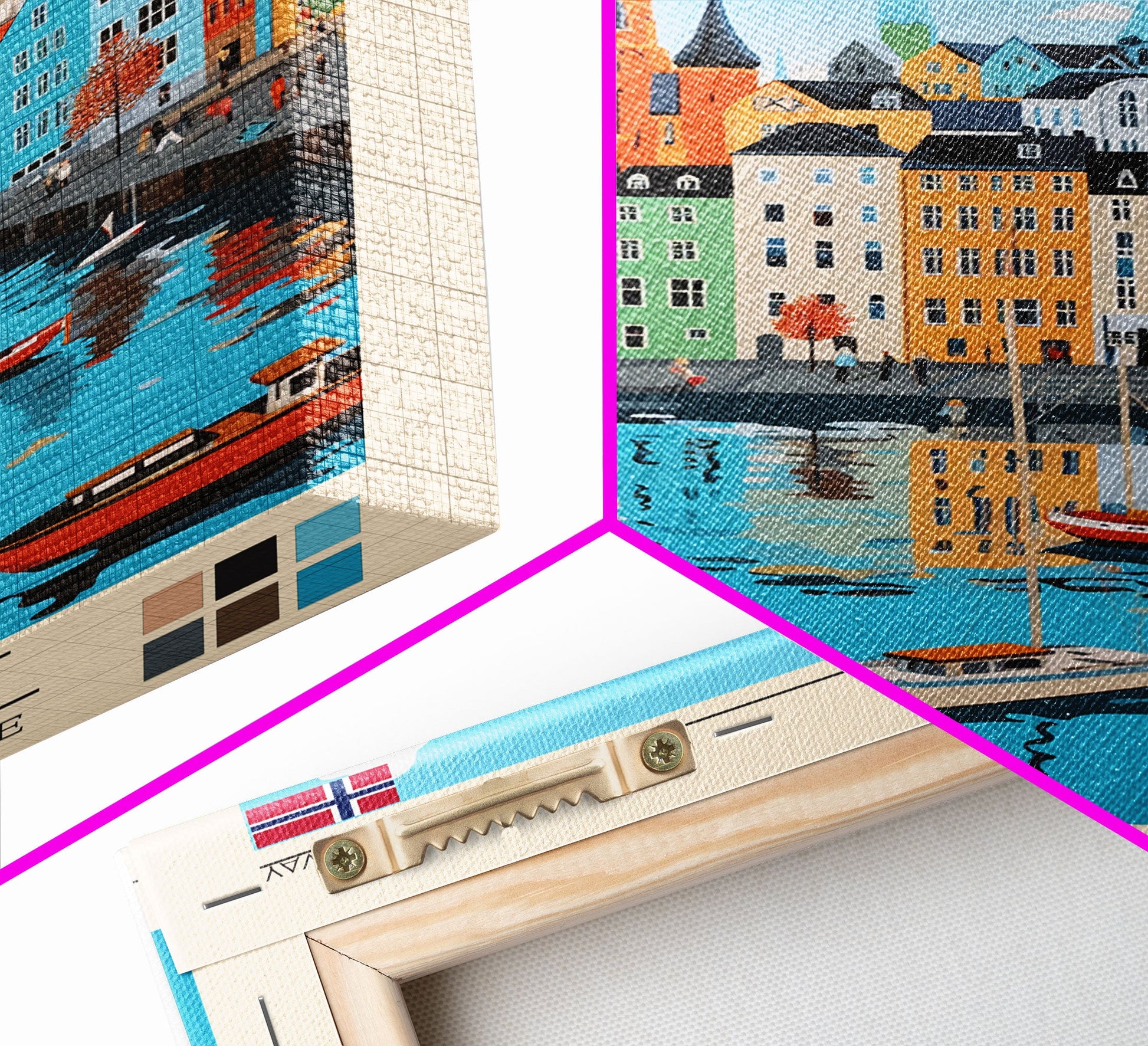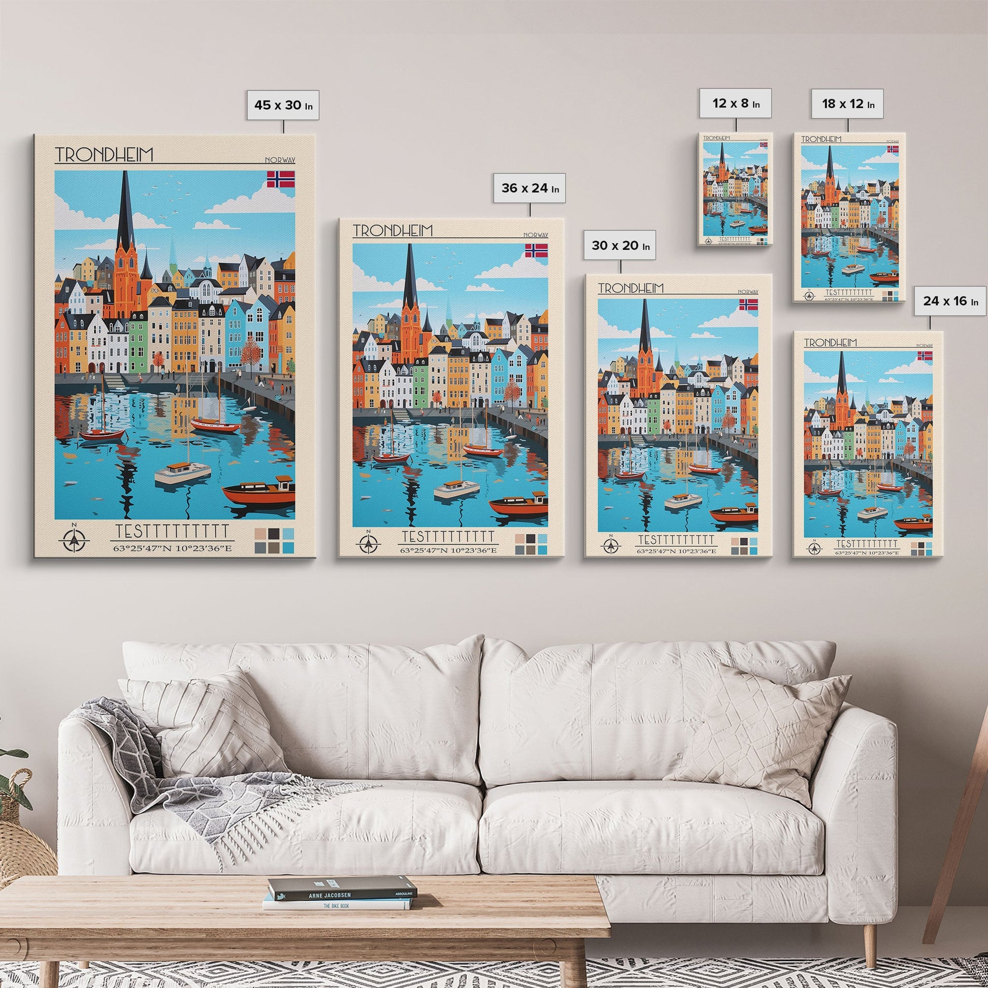 Trondheim Norway Travel Poster Framed Canvas Print, Midcentury Modern Art, Pop Art Wall Decor, Living Room Art, Home Decoration