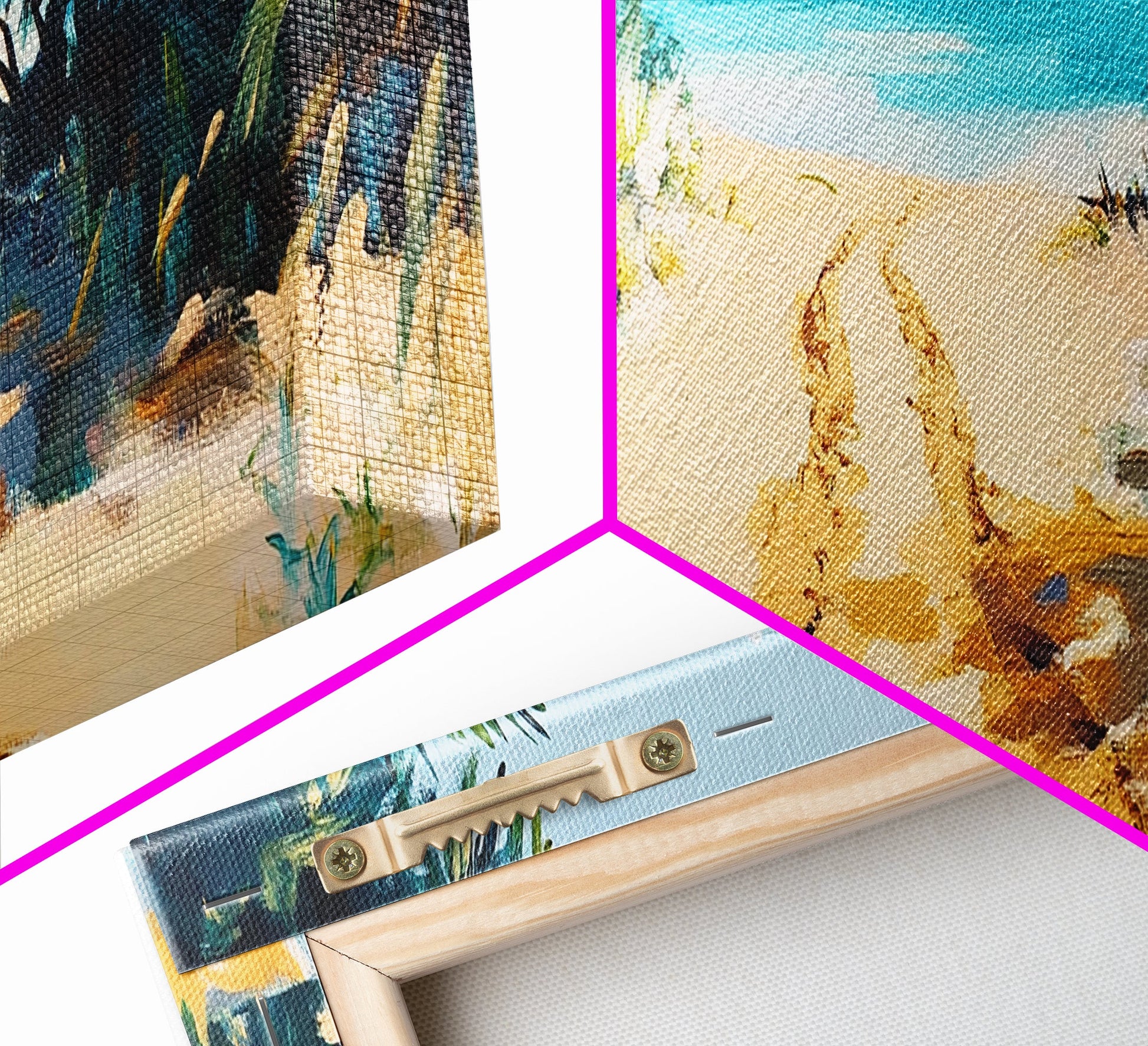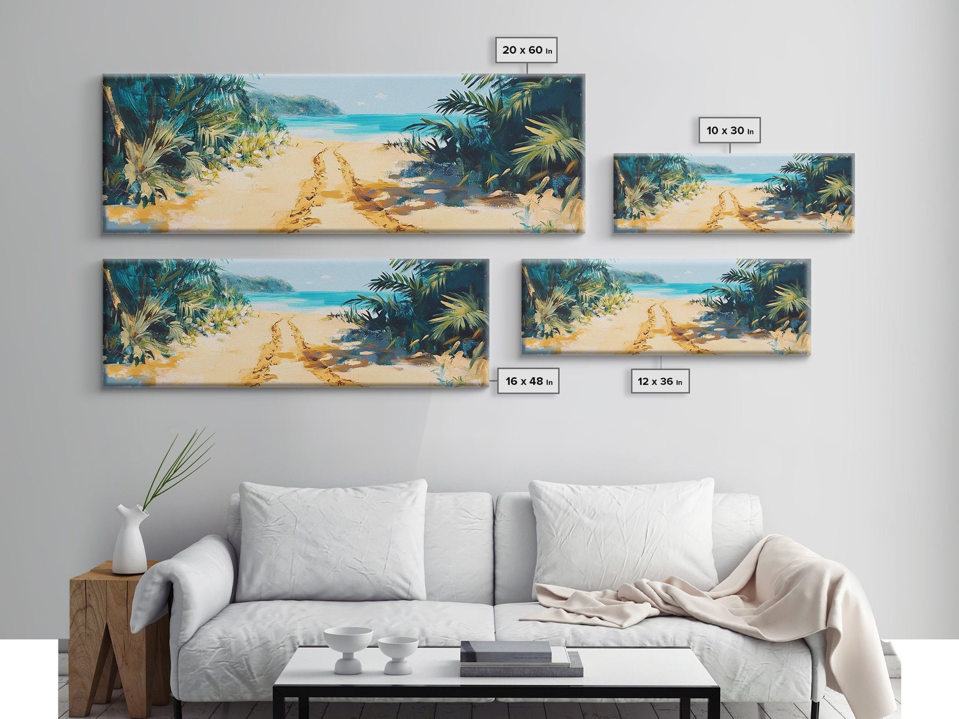 Tropical Beach Path, Palm Tree Art, Ocean Painting, Coastal Wall Decor, Relaxing Retreat Art, Home Print, Framed Canvas Print