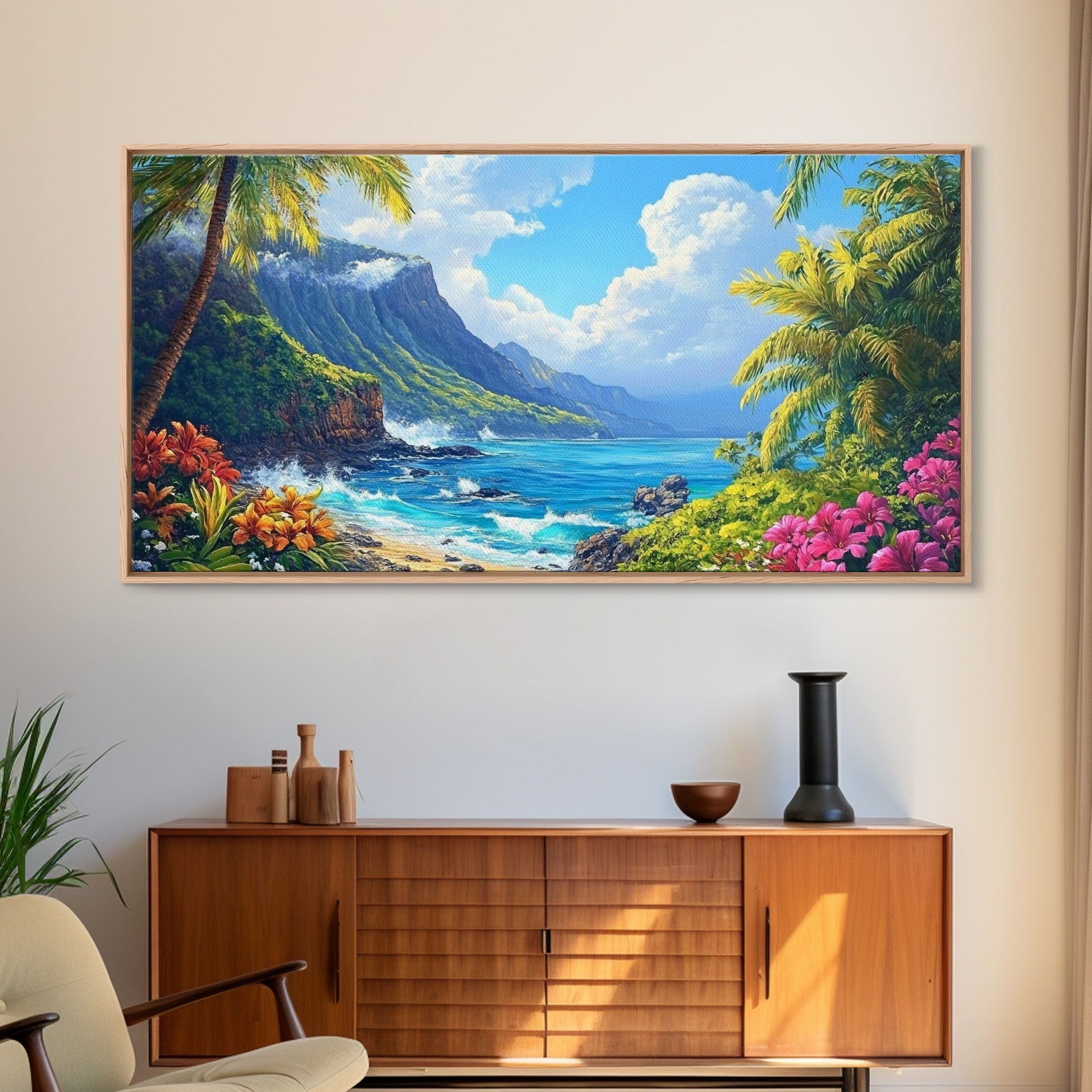 Tropical Beachscape Canvas Print Coastal Landscape Art Hawaii Decor Living Room Art Above Couch Art Nautical Wall Art Gift Idea