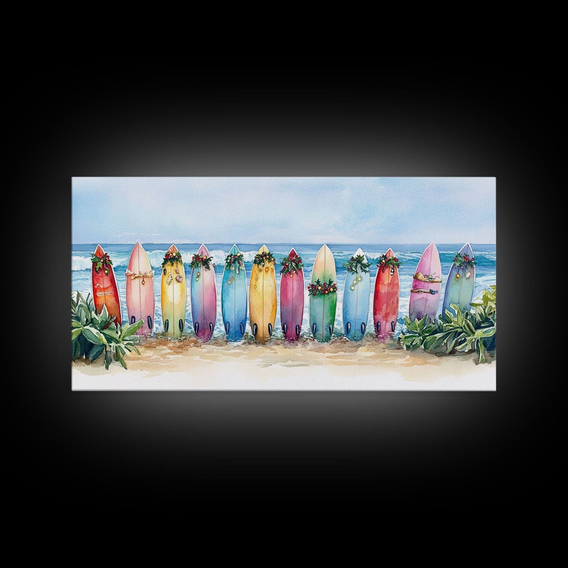 Tropical Christmas decor, beach Christmas decor, Christmas beach art, canvas print, Christmas wall art, beach Christmas