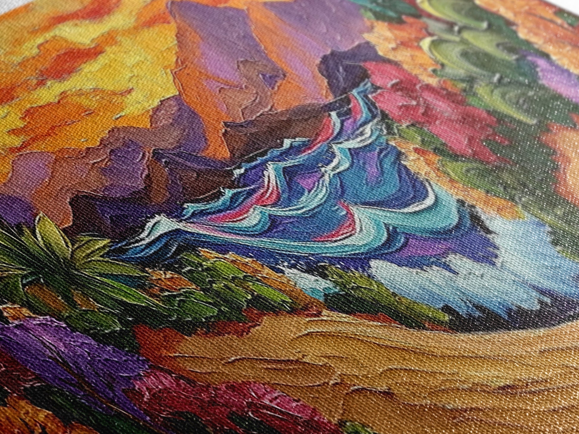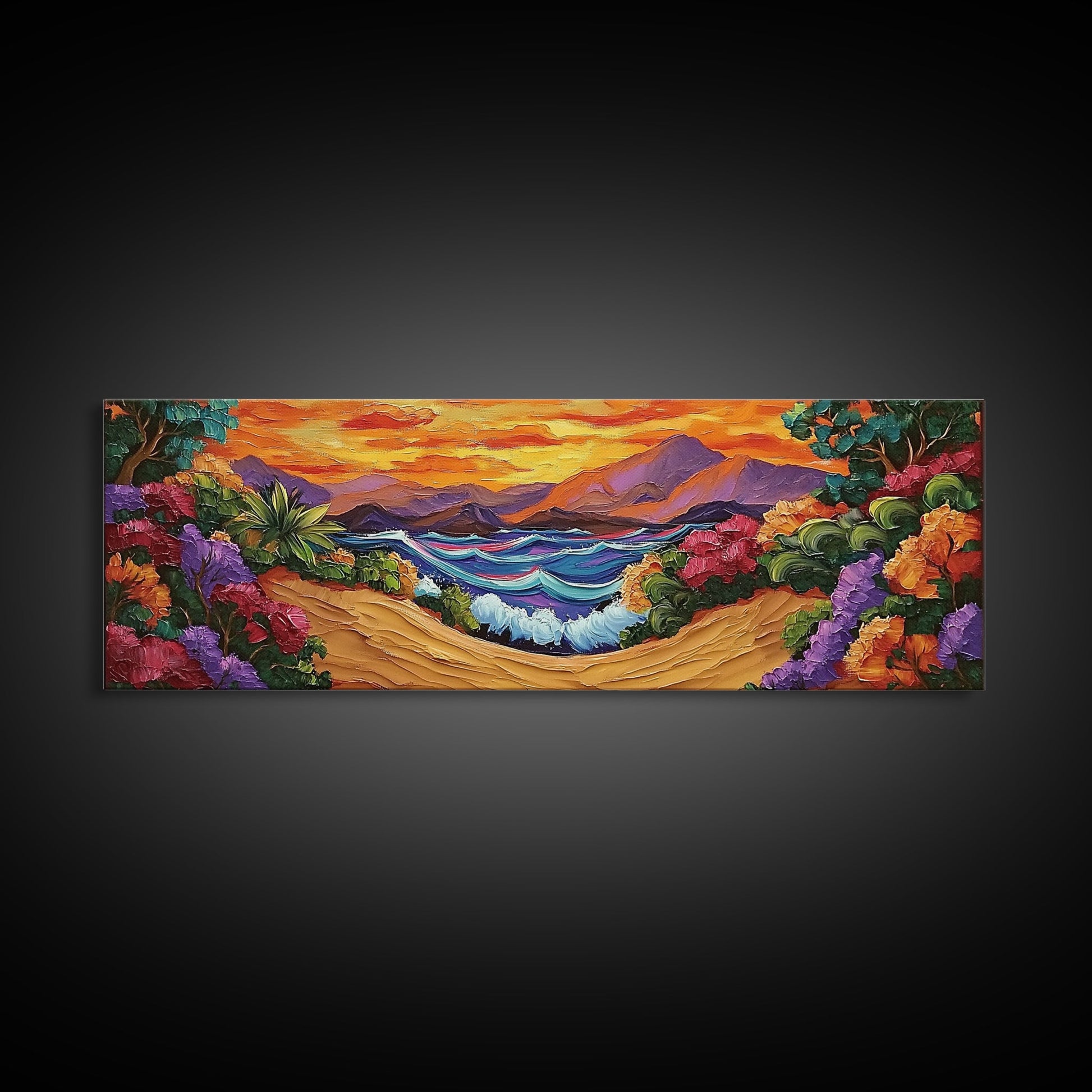 Tropical Sunset Cove, Vibrant Ocean Painting, Beach House Decor, Bold Nature Scene, Boho Living Room Canvas Print, Nature Painting