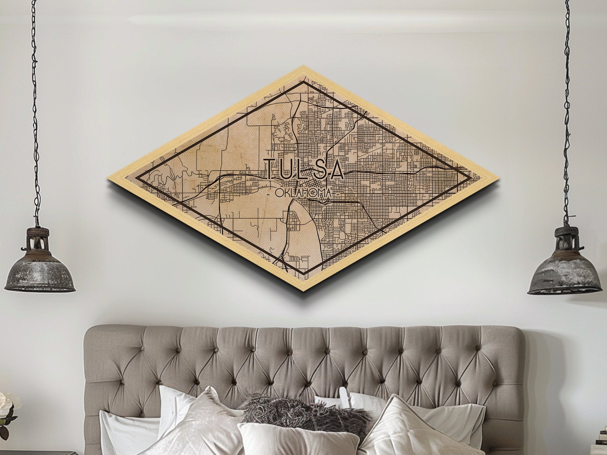 Tulsa Diamond Shaped City Map, Custom Diamond Shaped Wall Art, City Map Canvas