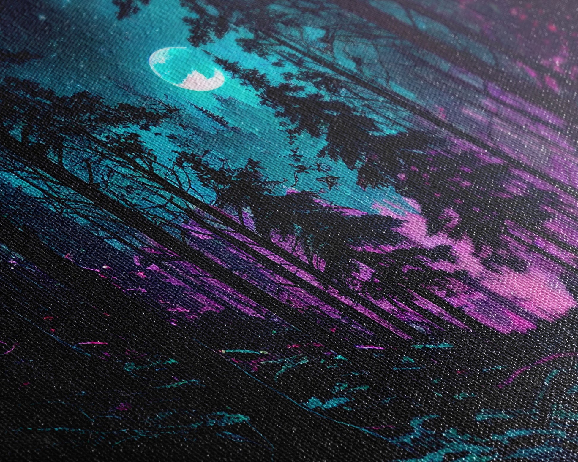 Turquoise and violet fantasy forest, aesthetic, framed canvas print