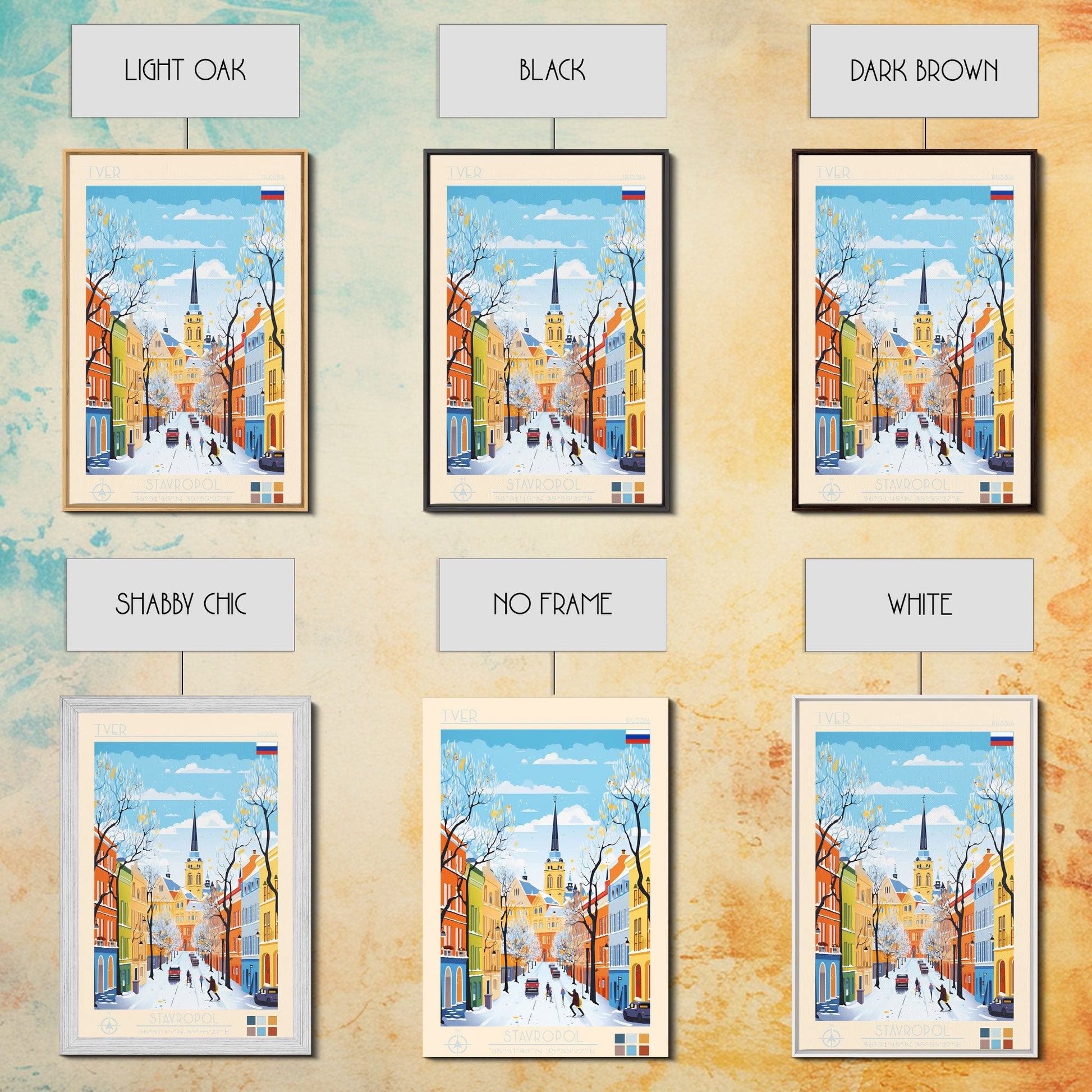 Tver Russia Travel Poster Framed Canvas Print, Midcentury Modern Art, Pop Art Wall Decor, Living Room Art, Home Decoration