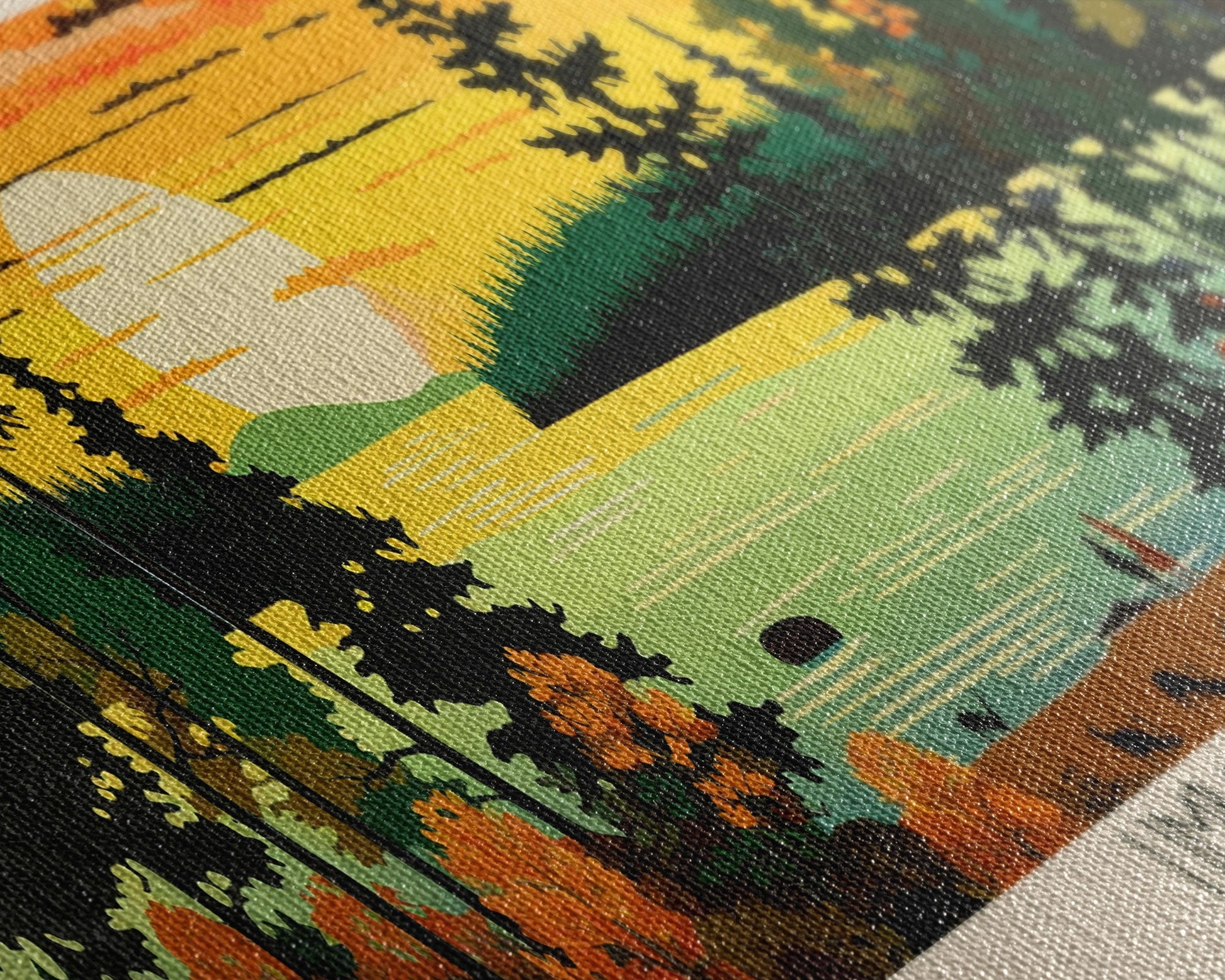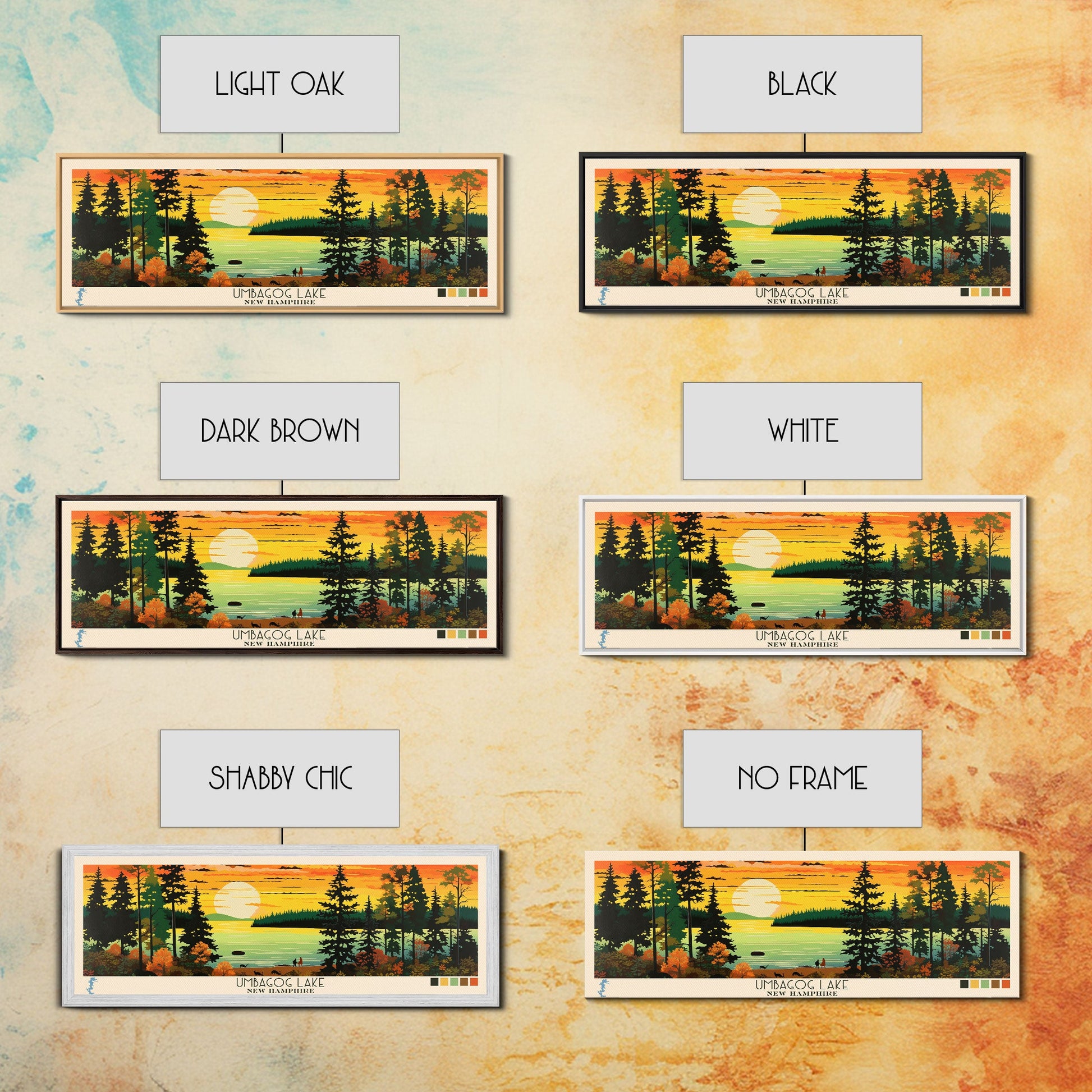 Umbagog Lake, New Hampshire Framed Canvas Print, Panoramic Lake House Art, Midcentury Modern Decor, Pop Art, Travel Poster, Living Room Wall Art
