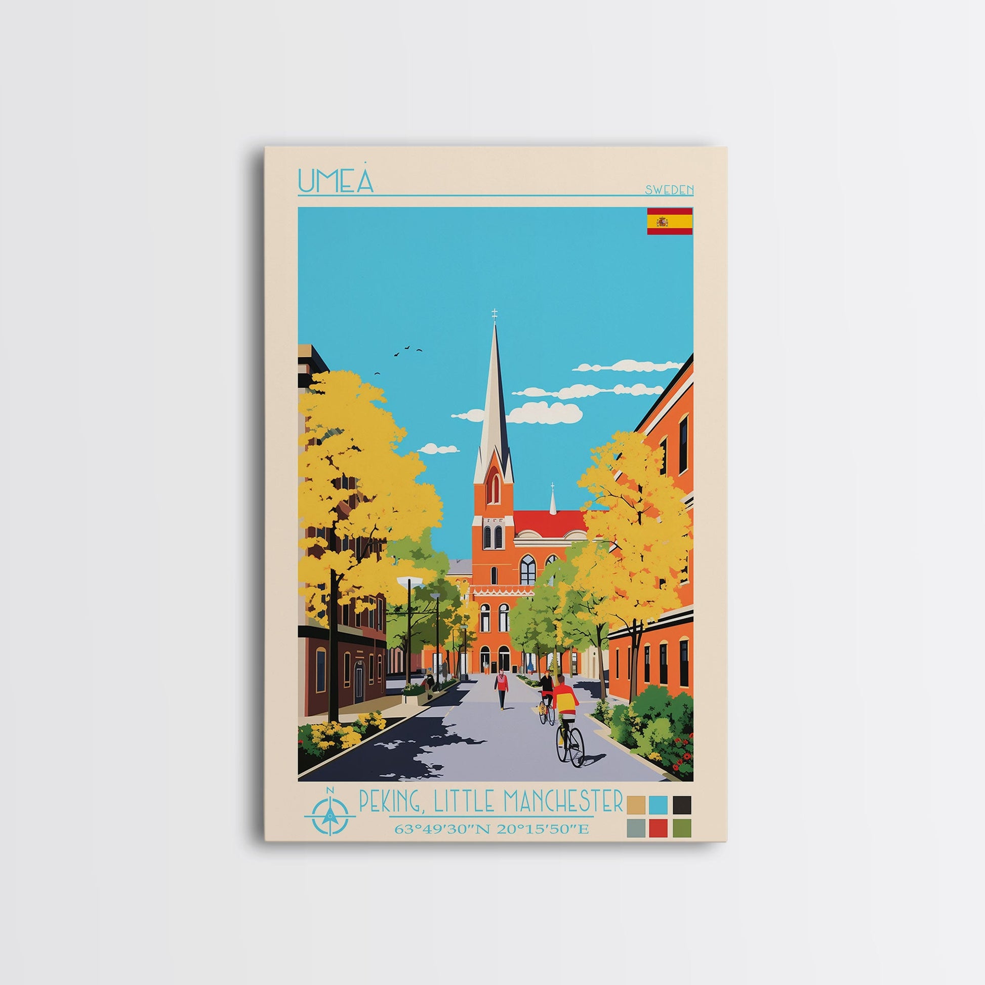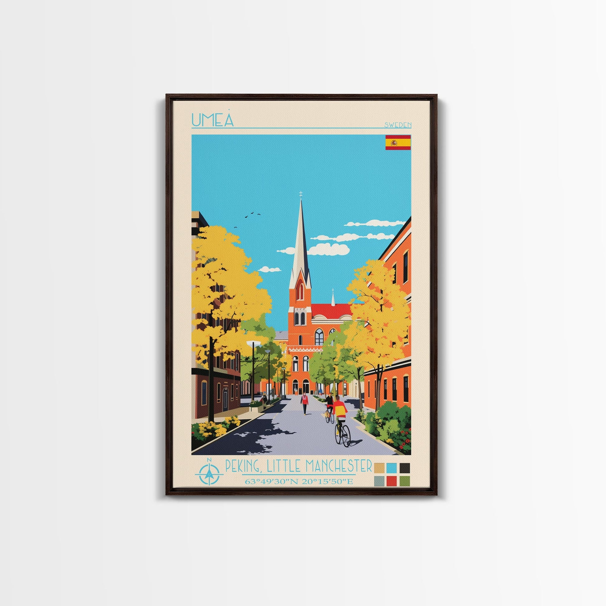 Umeå Sweden Travel Poster Framed Canvas Print, Midcentury Modern Art, Pop Art Wall Decor, Living Room Art, Vacation Gift