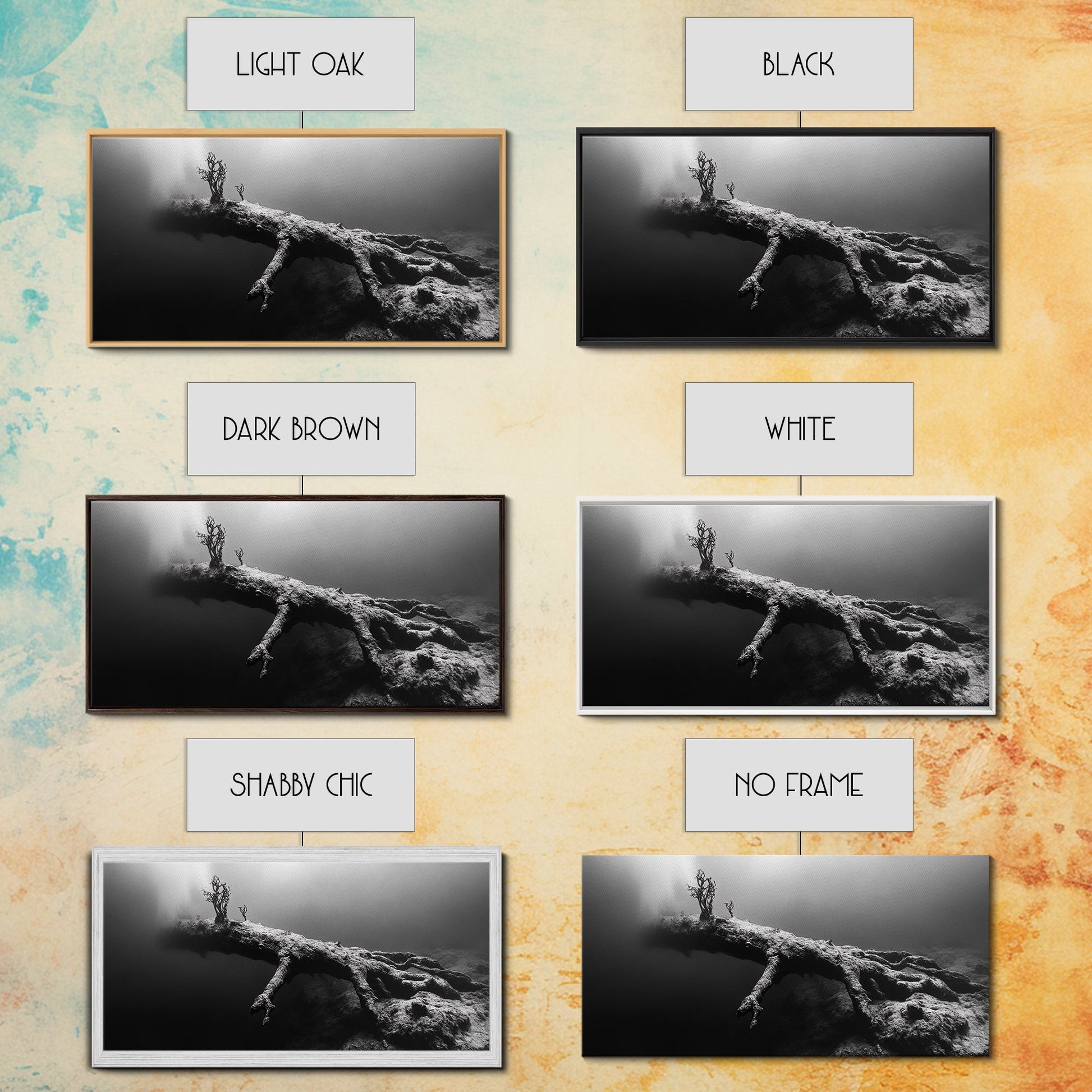 Underwater Tree, Ocean Roots, Nature Surrealism, Canvas Print, Moody Nautical Decor, Bathroom Wall Art, Black And White Abstract Art