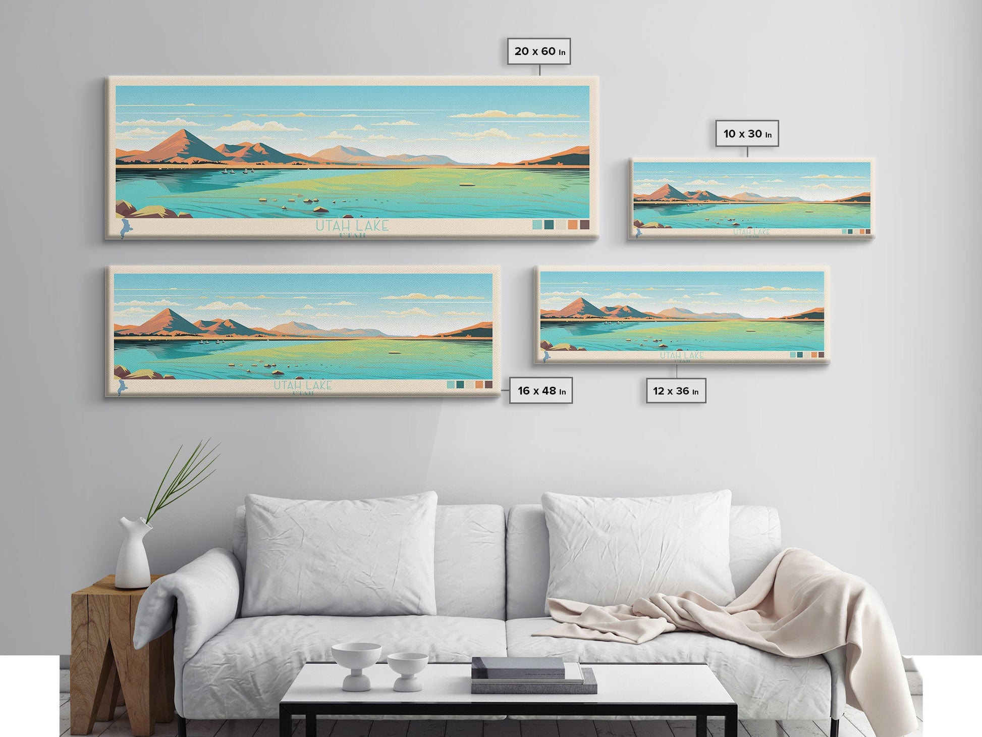 Utah Lake, Utah Framed Canvas Print, Panoramic Lake House Decor, Midcentury Modern Art, Pop Art, Travel Poster, Bedroom Wall Art