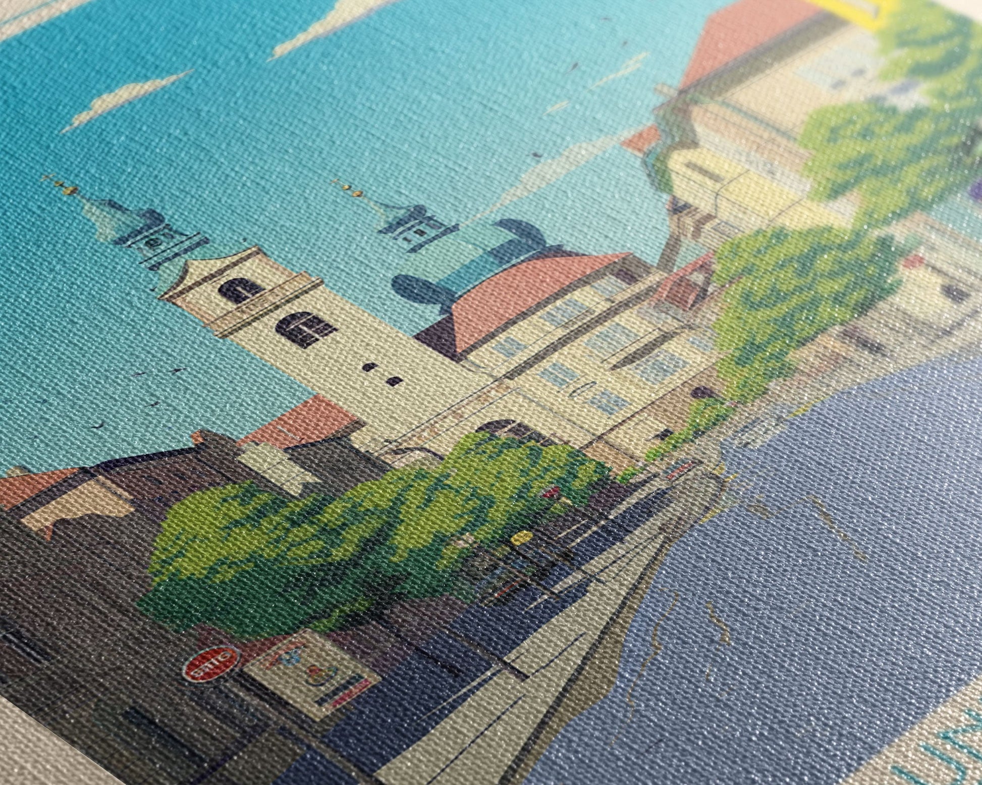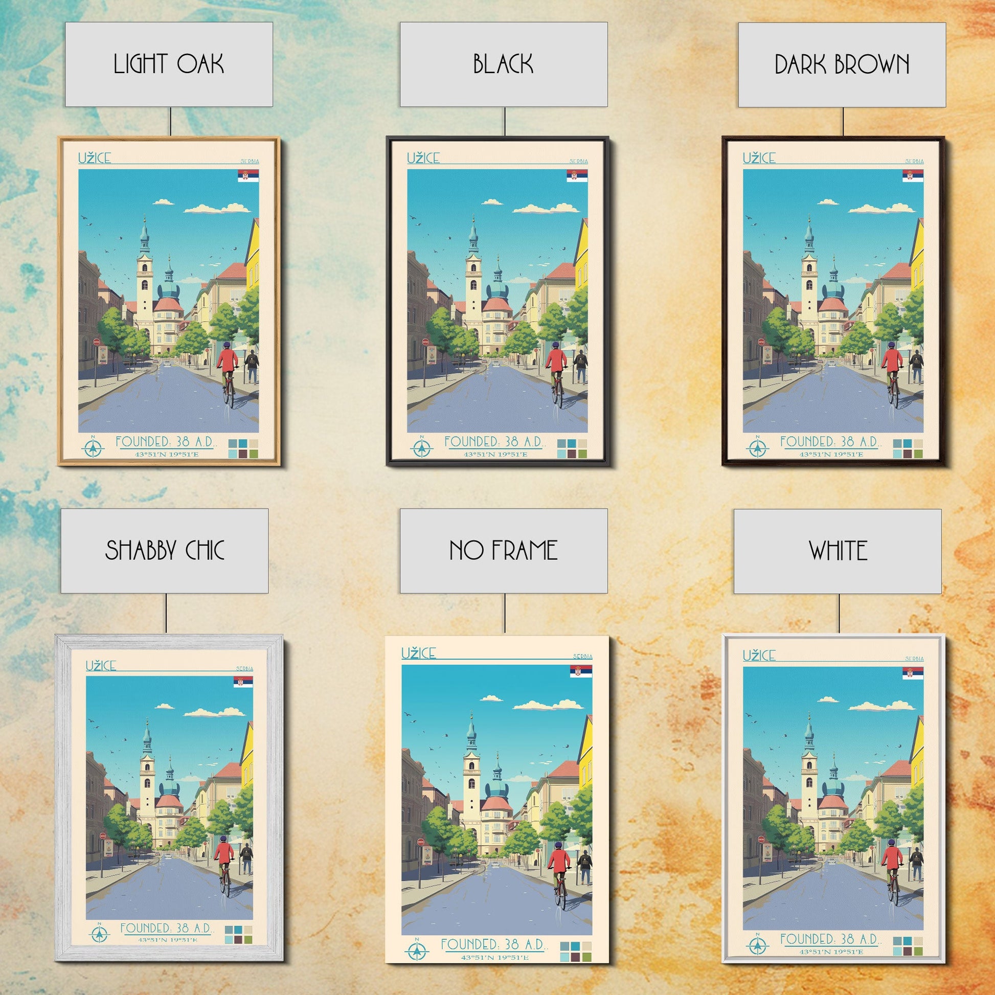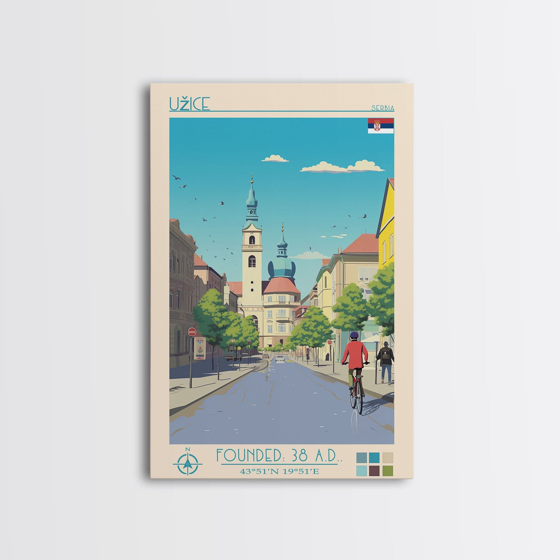 Užice Serbia Travel Poster Framed Canvas Print, Midcentury Modern Art, Pop Art Wall Decor, Living Room Art, Scenic Wall Art