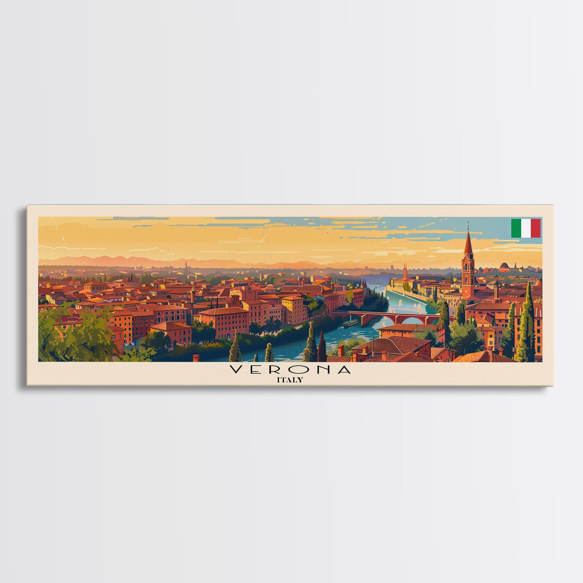 Verona Italy Travel Art, City Art, Framed Canvas Print or Metal Wall Art, Europe Travel Poster, Panoramic Wall Art, Extra Wide Wall Art