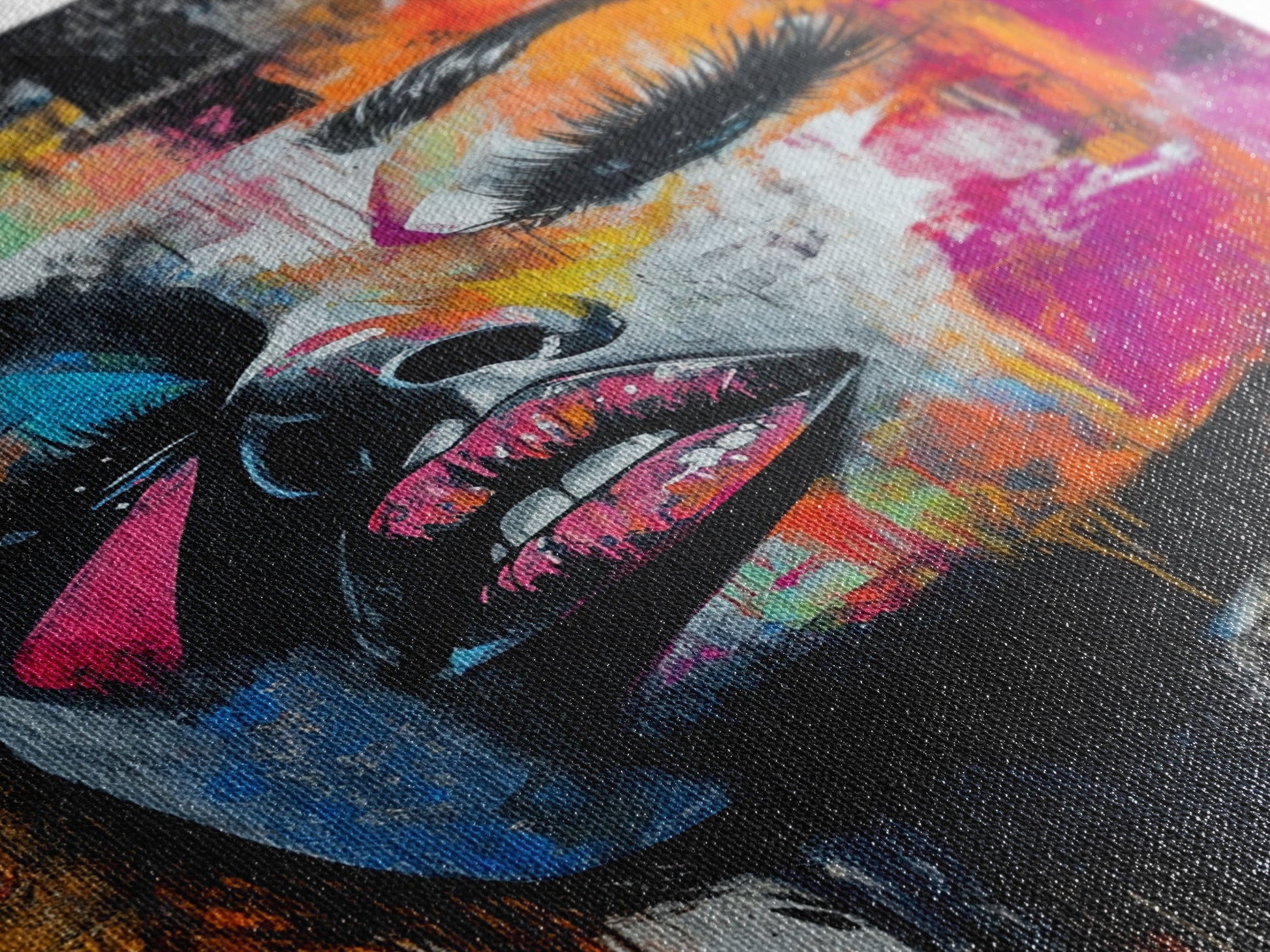 Vibrant Abstract Face Framed Canvas Print, Moody Woman Wall Art, Boho Living Room Decor, Gift Idea for Her, Unique Rustic Art