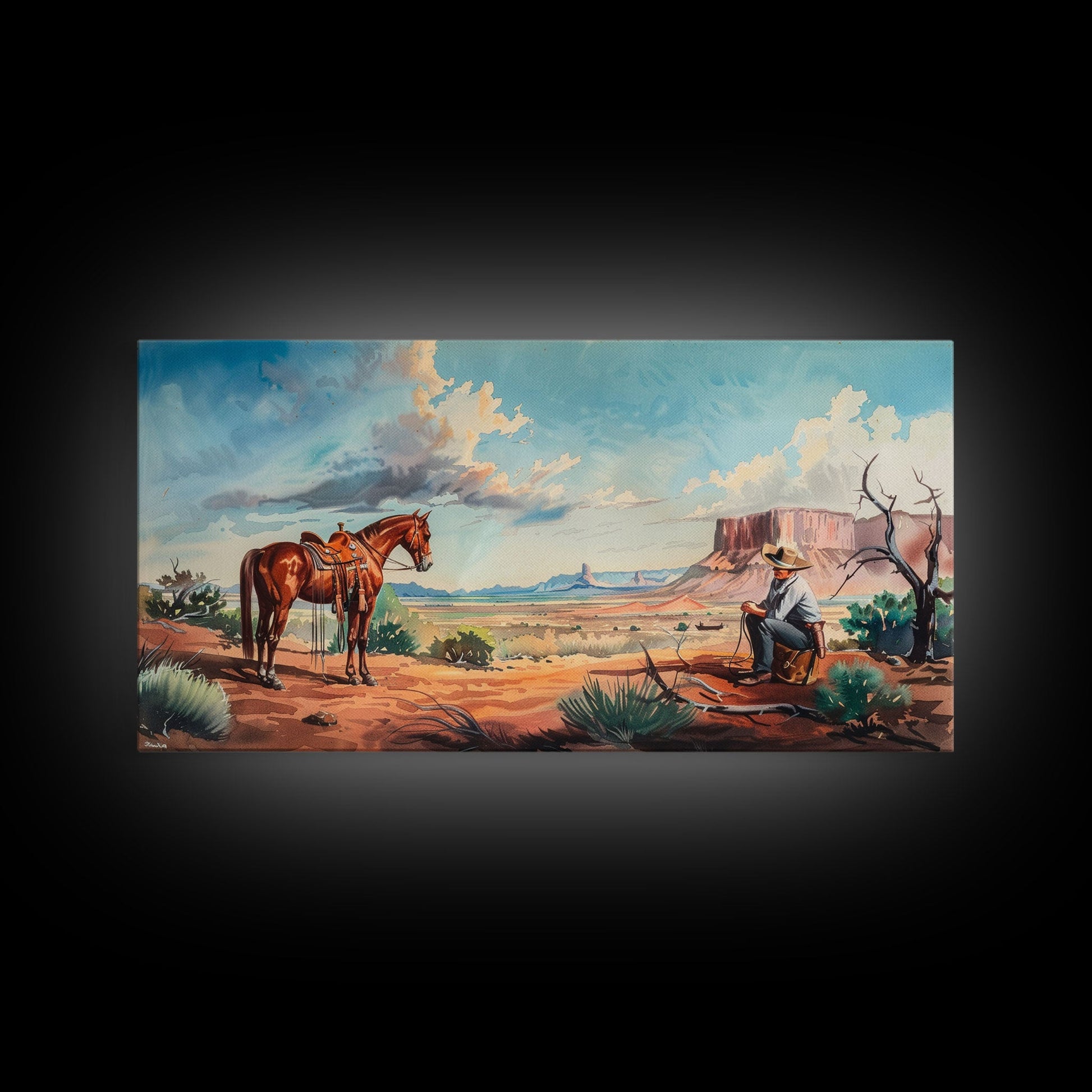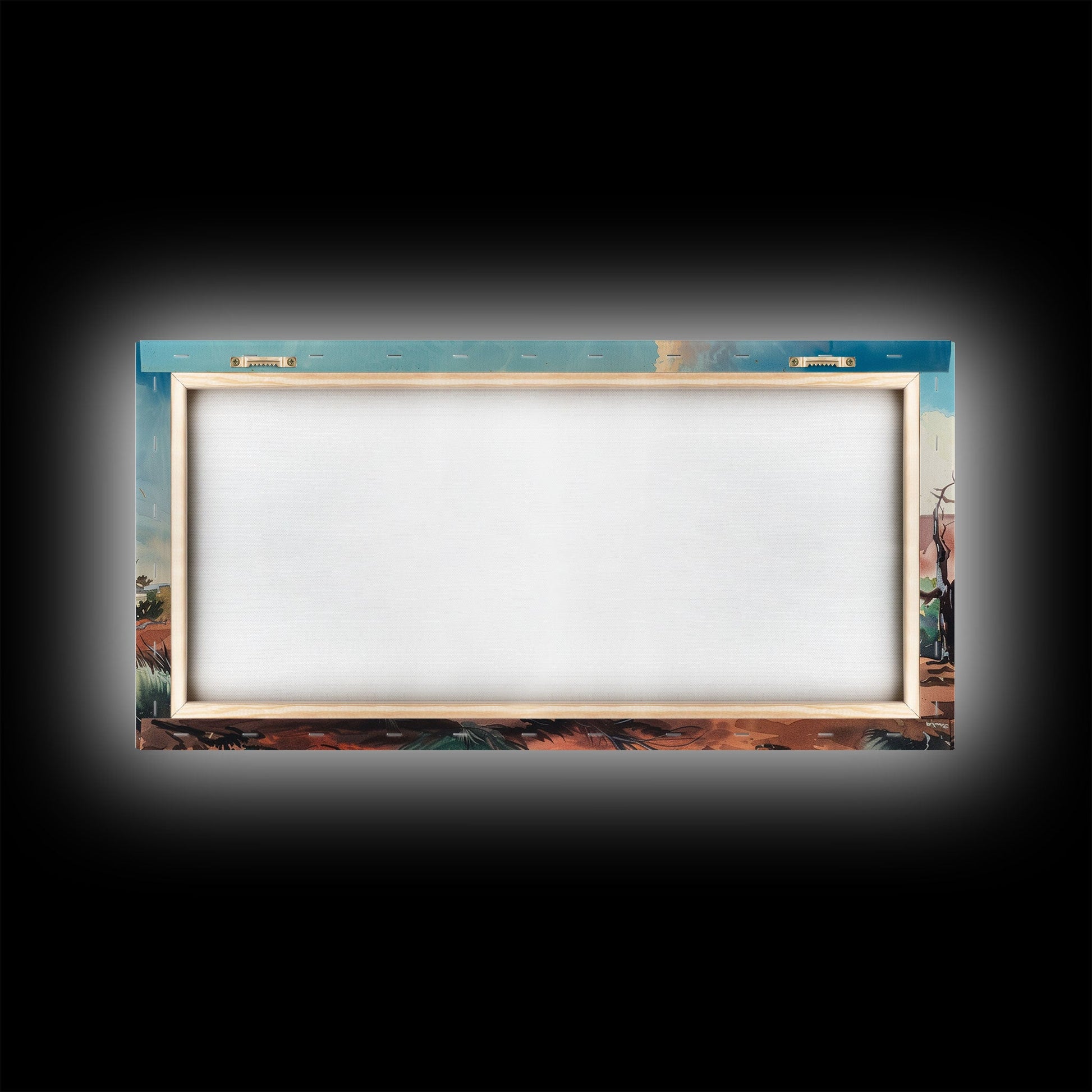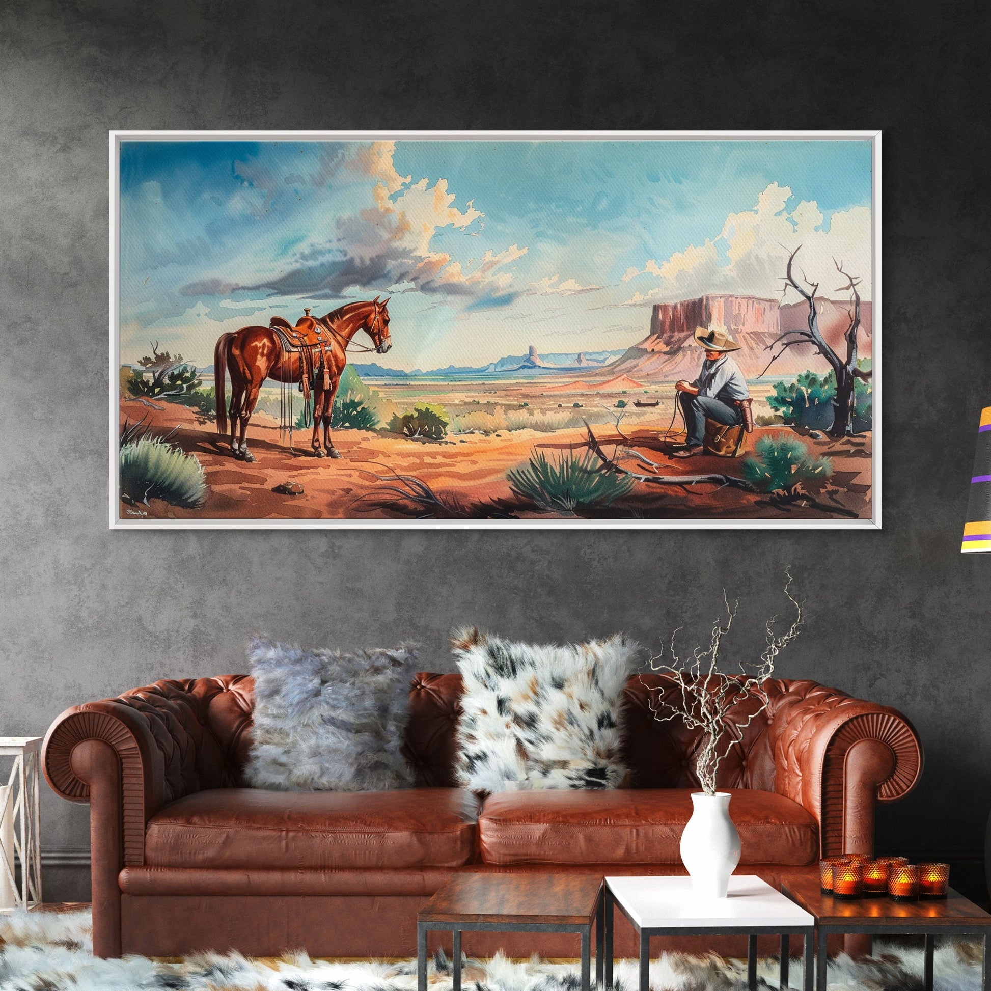 Vibrant Desert Sunset with Cactus, Abstract Desert Sunset Art, Framed Canvas Print, Southwestern Living Room Wall Art, Boho Decor
