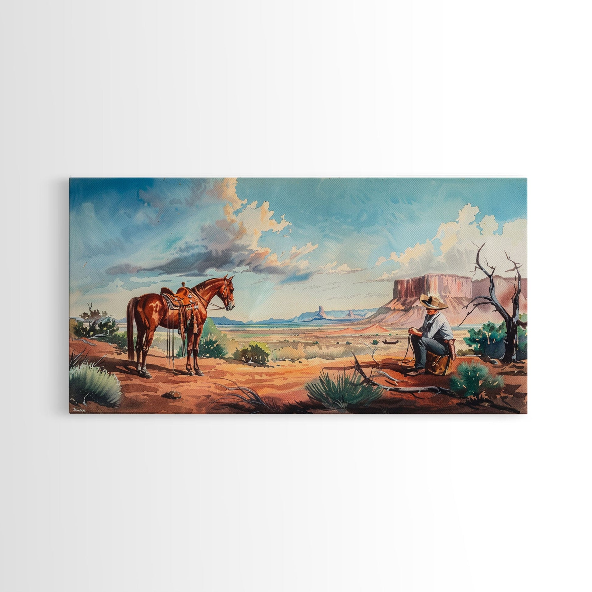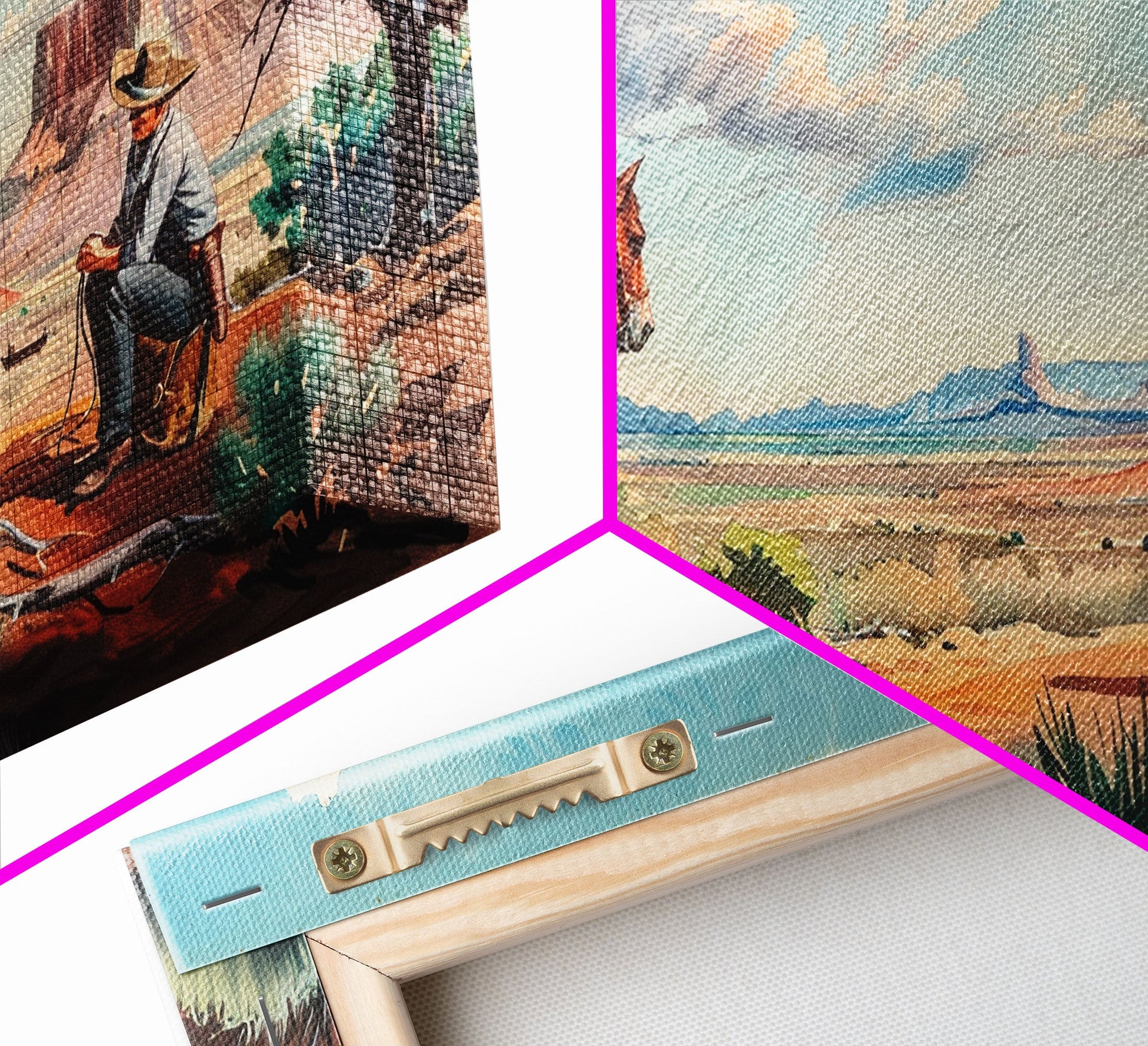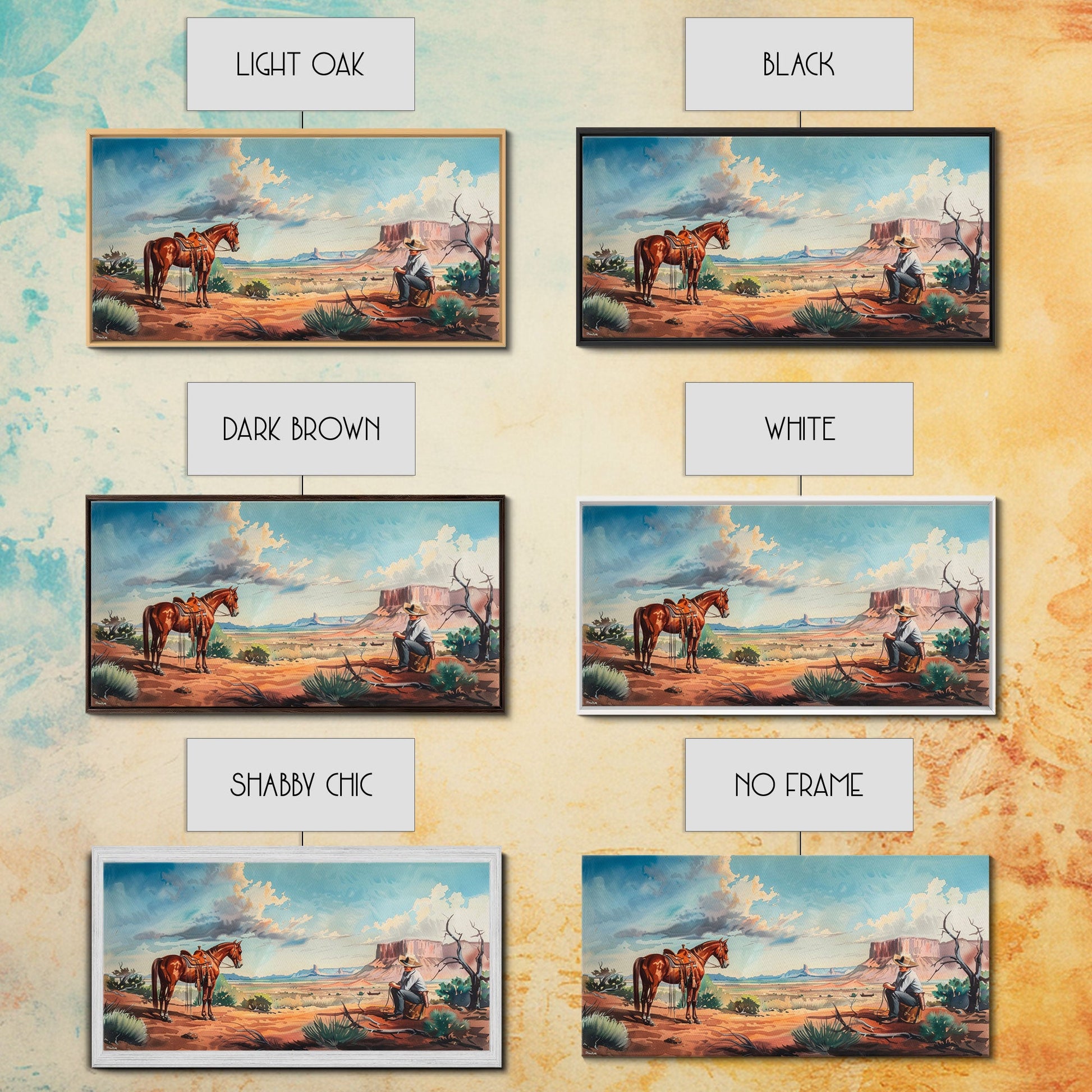 Vibrant Desert Sunset with Cactus, Abstract Desert Sunset Art, Framed Canvas Print, Southwestern Living Room Wall Art, Boho Decor