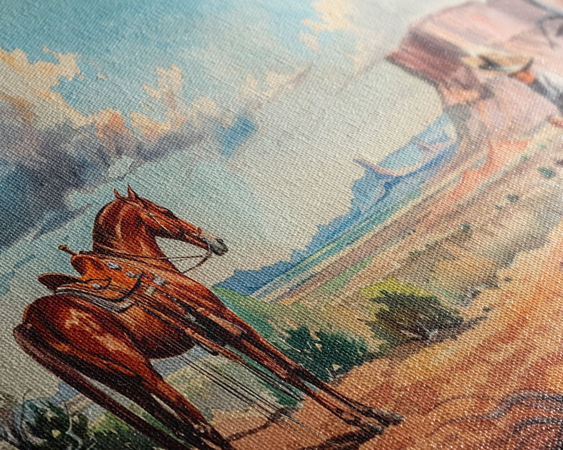 Most of our canvases are made in the USA, with the exception of canvases ordered with the light oak unstained frames, and any large canvases (24x48, 30x60, 16x48 and 20x60) ordered WITH a frame. These are temporarily made in and shipped from Europe, while we try to find a more consistent supplier in the USA.