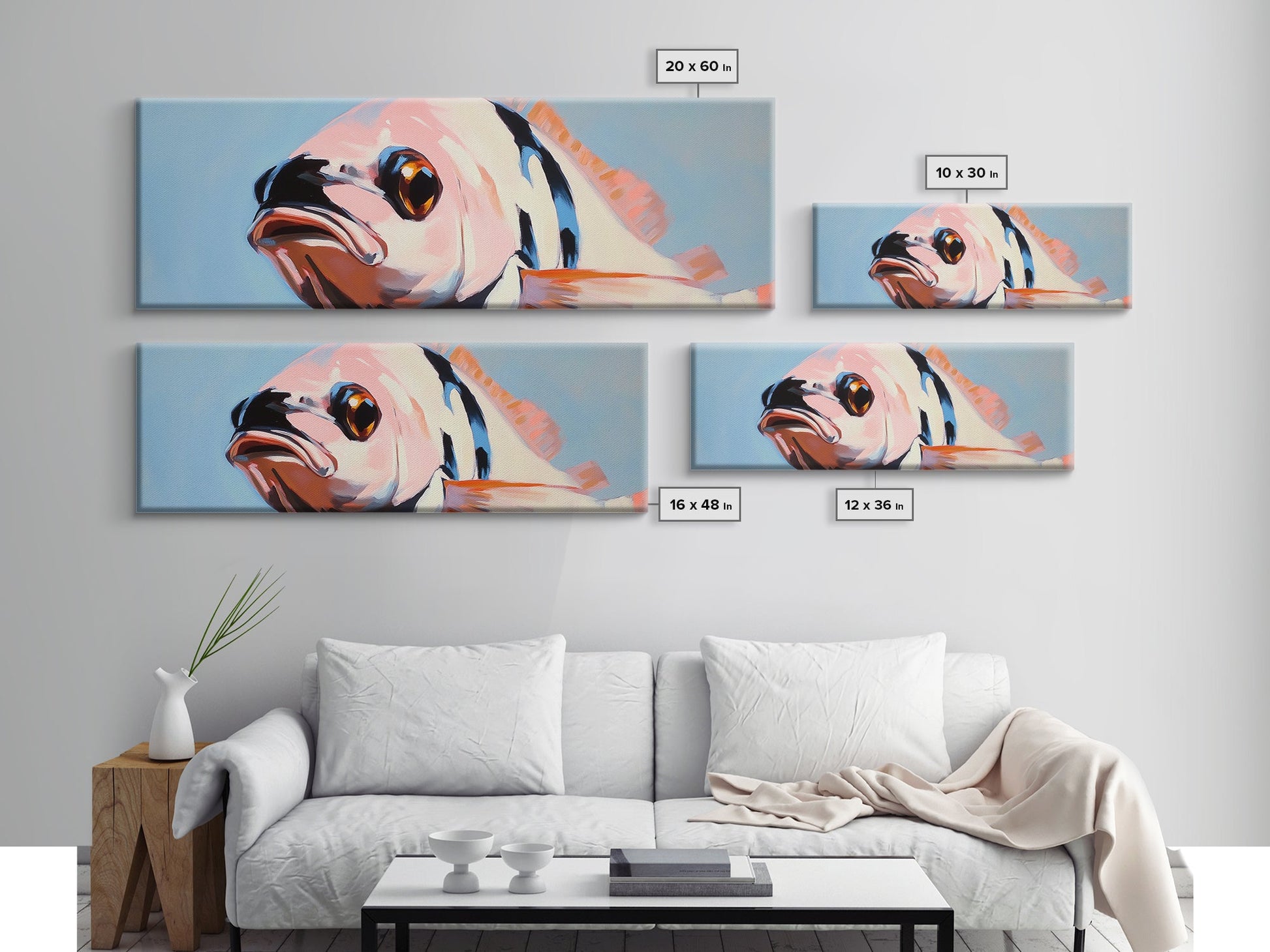 Vibrant Fish, Ocean Life, Marine Art, Framed Canvas Print, Coastal Wall Decor, Nautical Living Room Art, Tropical Fish Painting