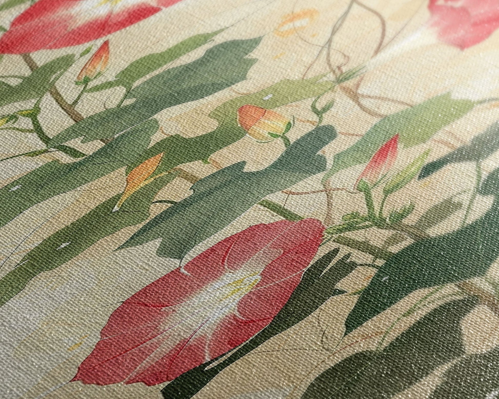 Vibrant Morning Glories Bloom Skinny Art Tall Art Japanese Ukiyo-e Inspired Floral Print Framed Canvas Wall Art