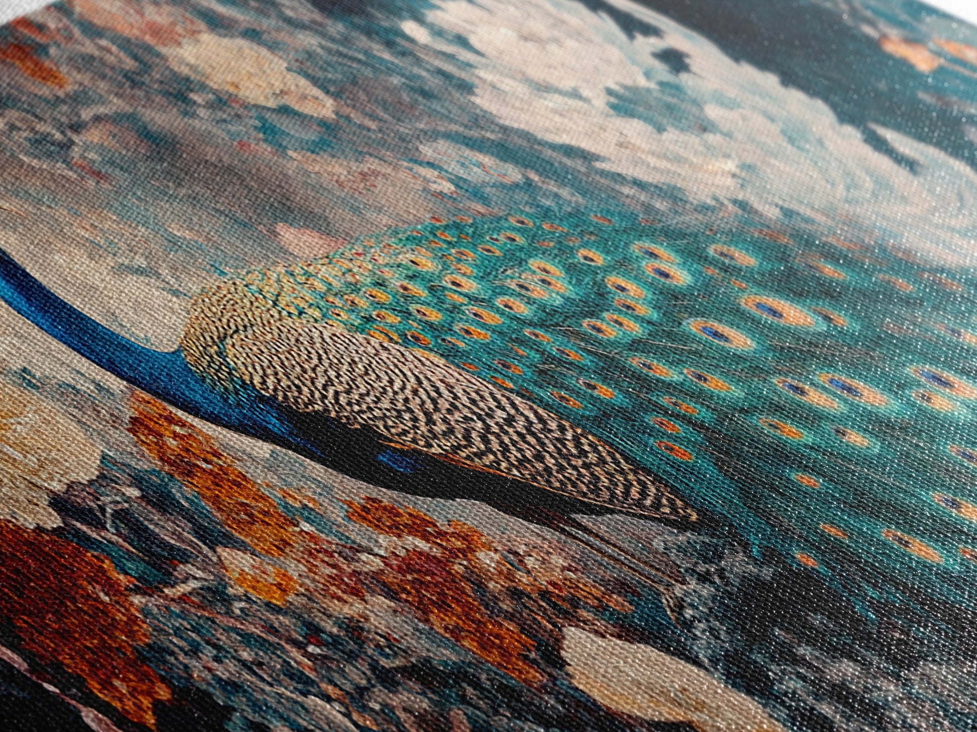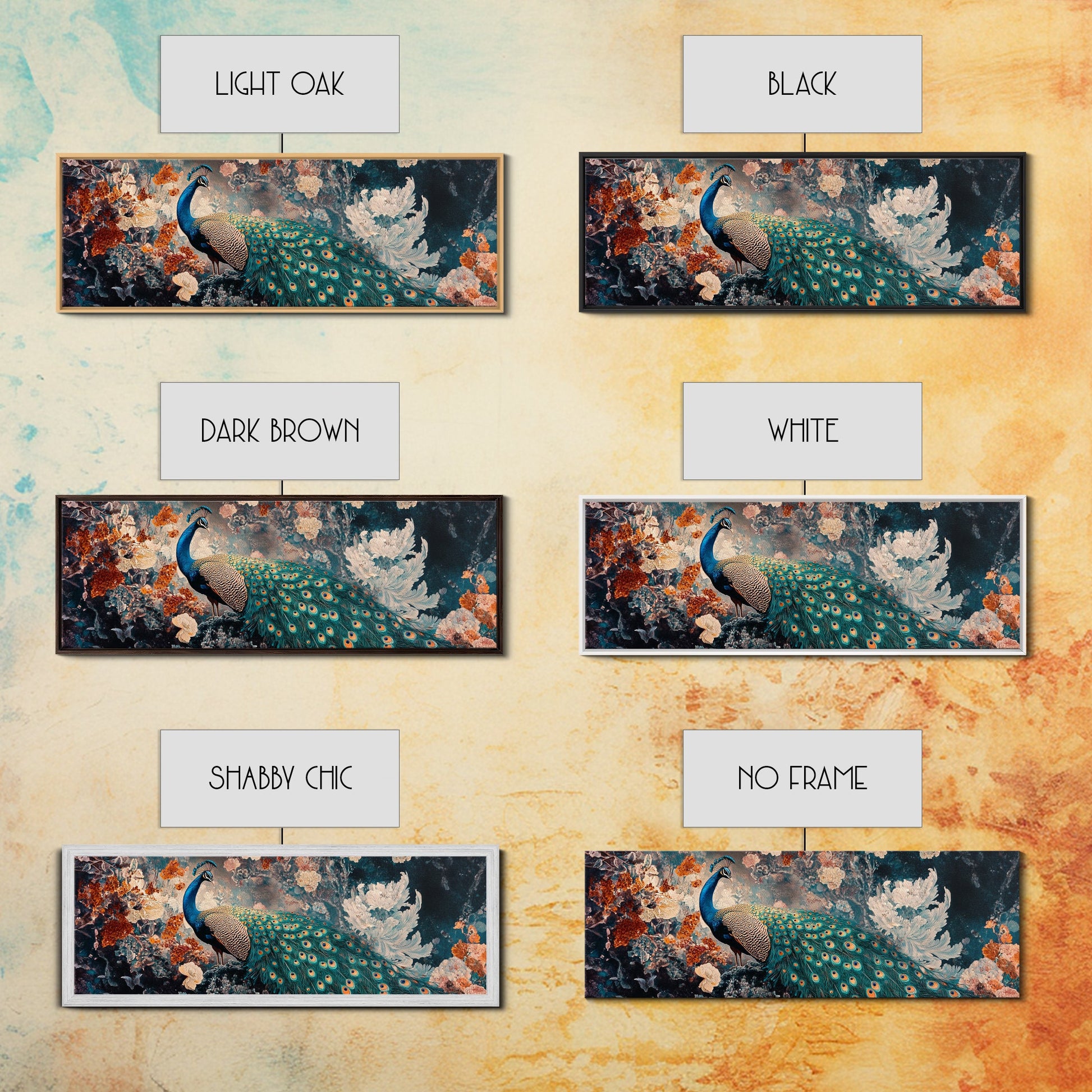 Vibrant Peacock Framed Canvas Print Mosaic Wall Art Boho Style Rustic Decor Above Sofa Art Living Room Statement Piece