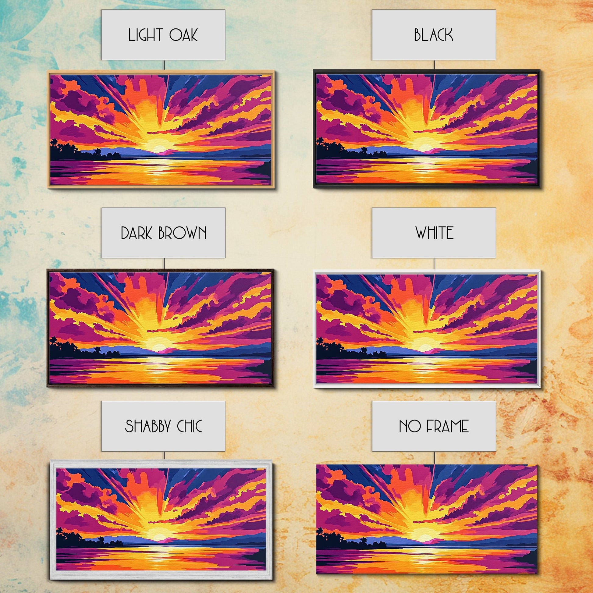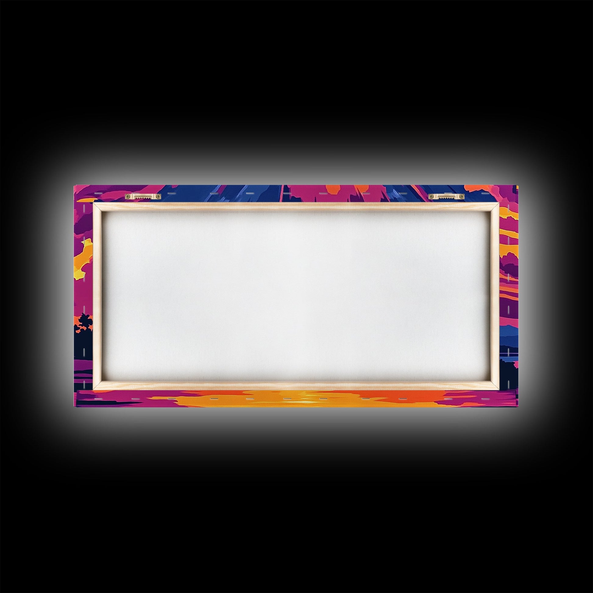 Vibrant River Sunset, Colorful Landscape Wall Art, Warm Nature Print, Bold Sky Painting, Autumn Home Decor, Framed Canvas Print