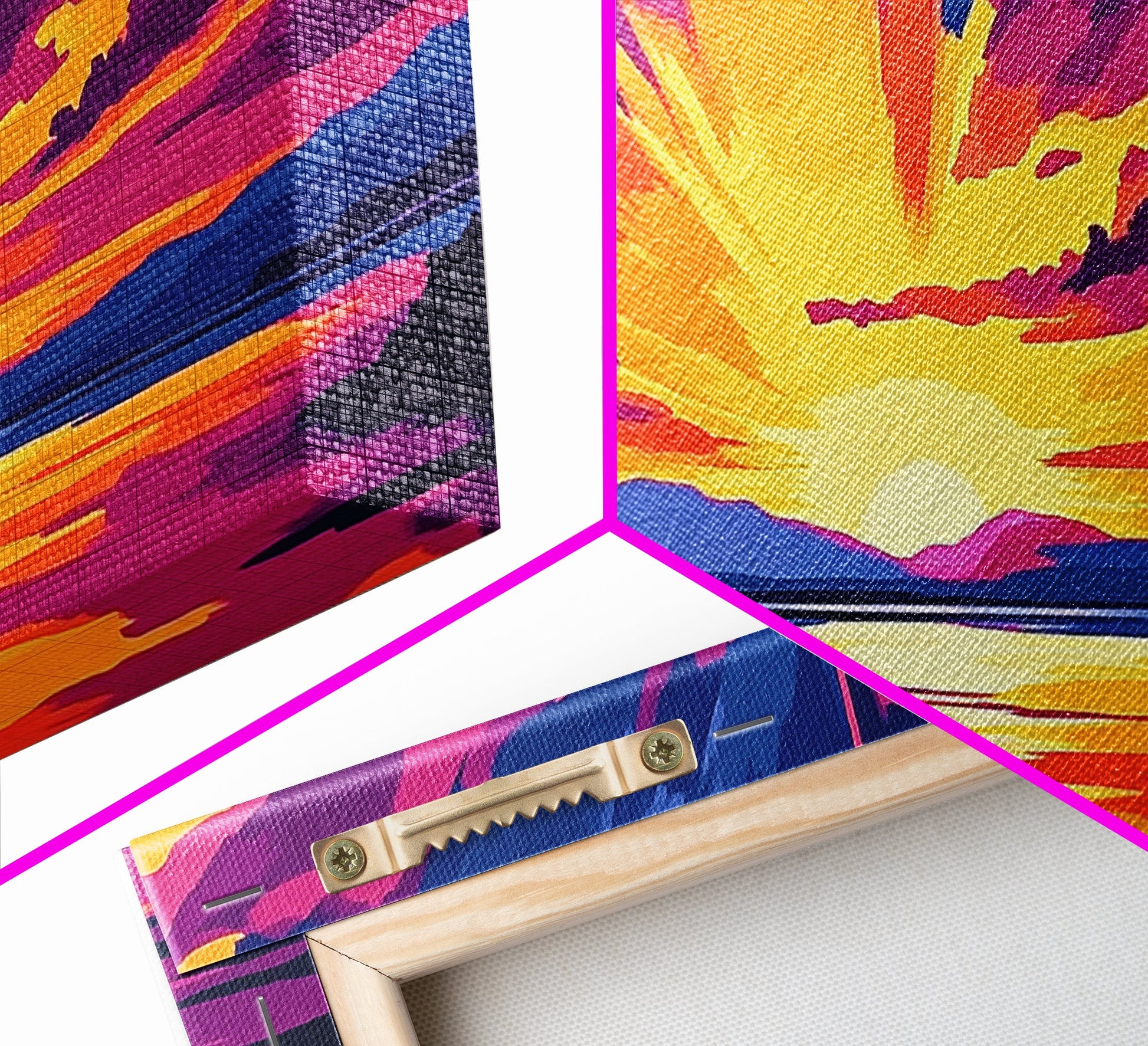 Hello and thank you for taking the time to view our modern high quality giclée artwork! We offer both posters and stretched canvas prints. Our posters are printed on Ultra Matte 60 lb / 230 GSM high quality photo paper, with a thickness of 10 mil. Our canvases are printed on museum grade 350 GSM canvas material with ECO friendly archival grade ink, then hand stretched and stapled over premium, FSC certified and shrink resistant frames. Designed and built to last a lifetime.