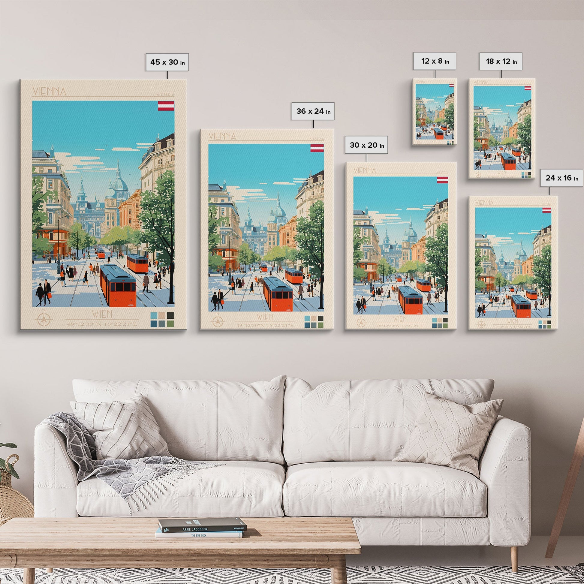 Vienna Austria Travel Poster Framed Canvas Print, Midcentury Modern Art, Pop Art Wall Decor, Living Room Art, Scenic Wall Art