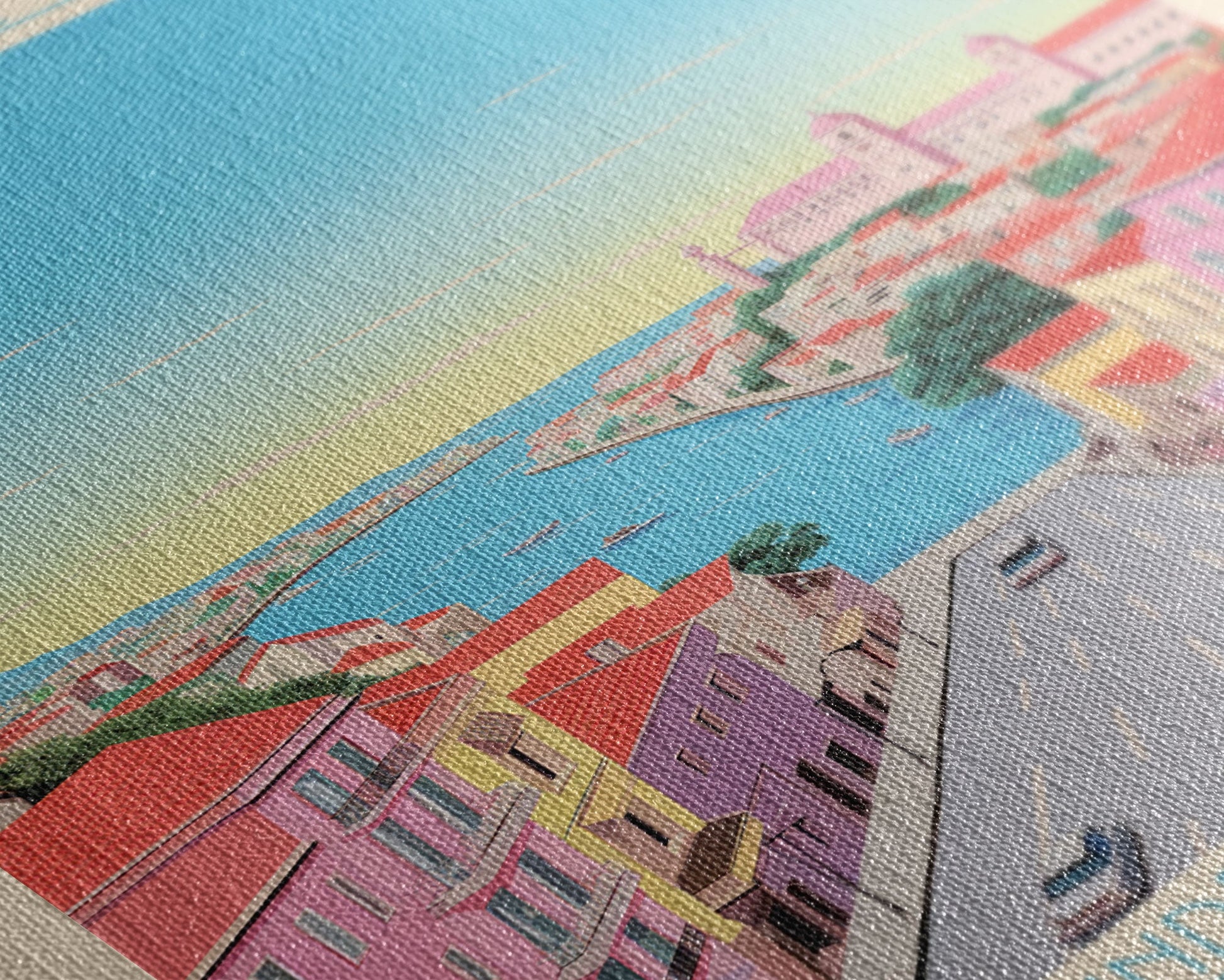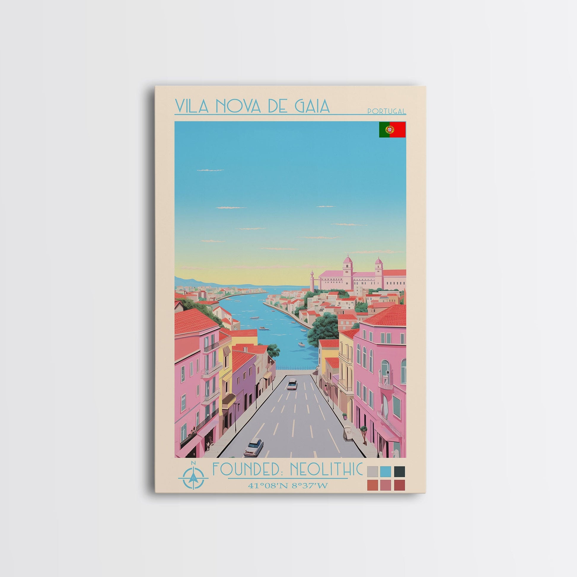 Vila Nova de Gaia Portugal Travel Poster Framed Canvas Print, Midcentury Modern Art, Pop Art Wall Decor, Living Room Art, Home Decoration