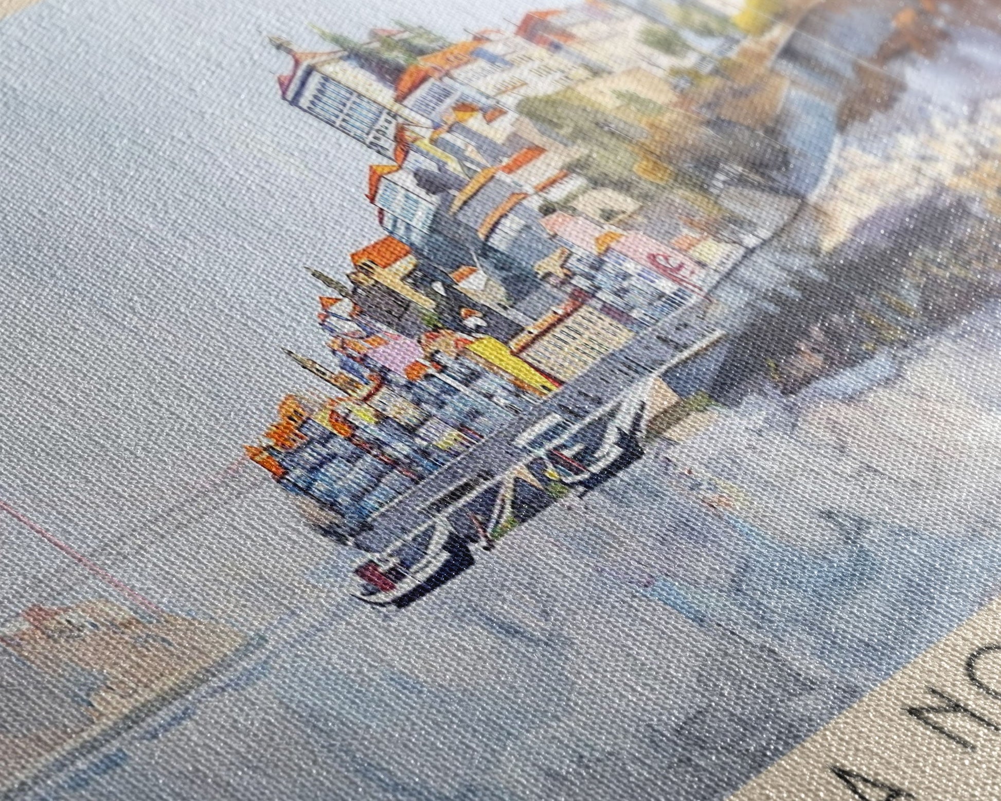 Most of our canvases are made in the USA, with the exception of canvases ordered with the light oak unstained frames, and any large canvases (24x48, 30x60, 16x48 and 20x60) ordered WITH a frame. These are temporarily made in and shipped from Europe, while we try to find a more consistent supplier in the USA.