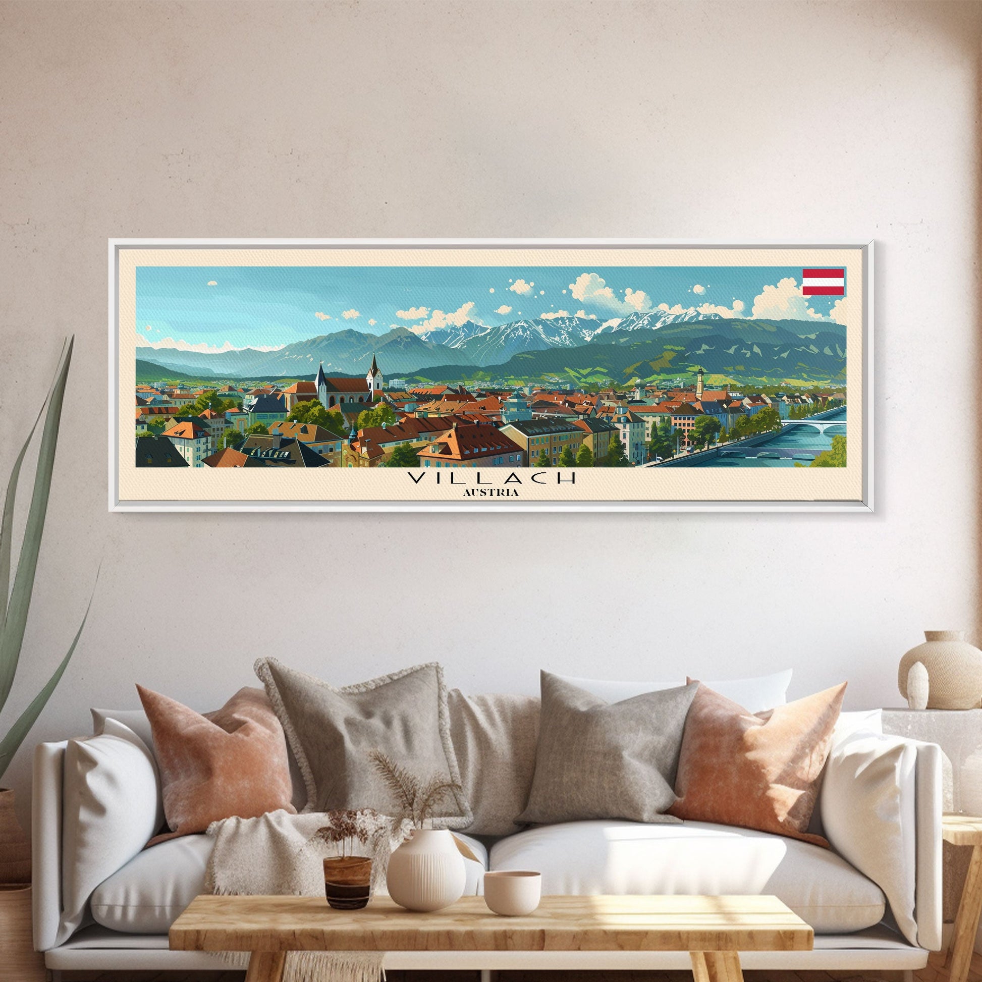 Villach Austria Travel Art, City Art, Framed Canvas Print or Metal Wall Art, Europe Travel Poster, Panoramic Wall Art, Extra Wide Wall Art
