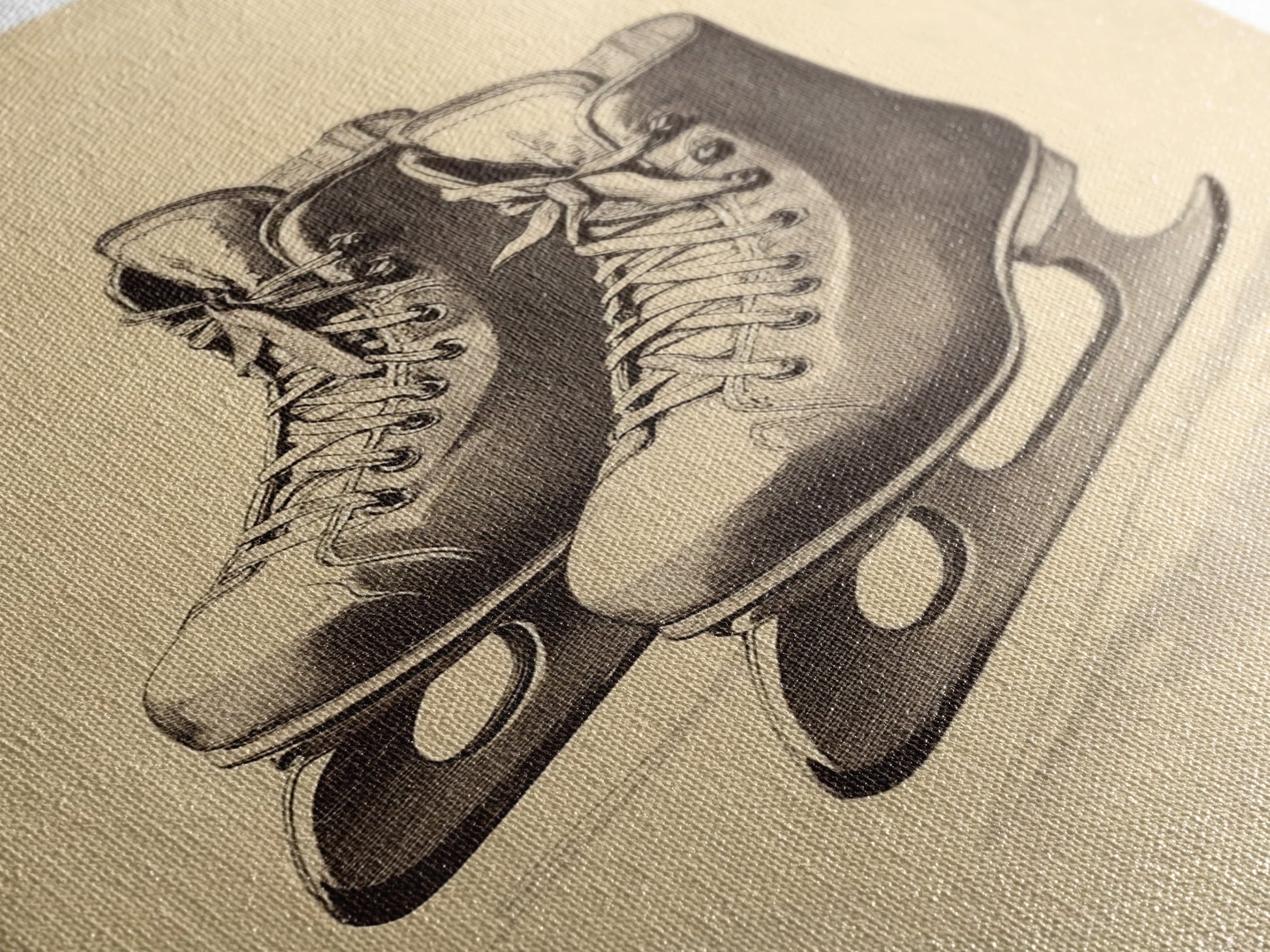 Vintage Ice Skates Canvas Print - Framed Canvas - Minimalist Christmas Art - Boho Christmas Art - Rustic Christmas Art