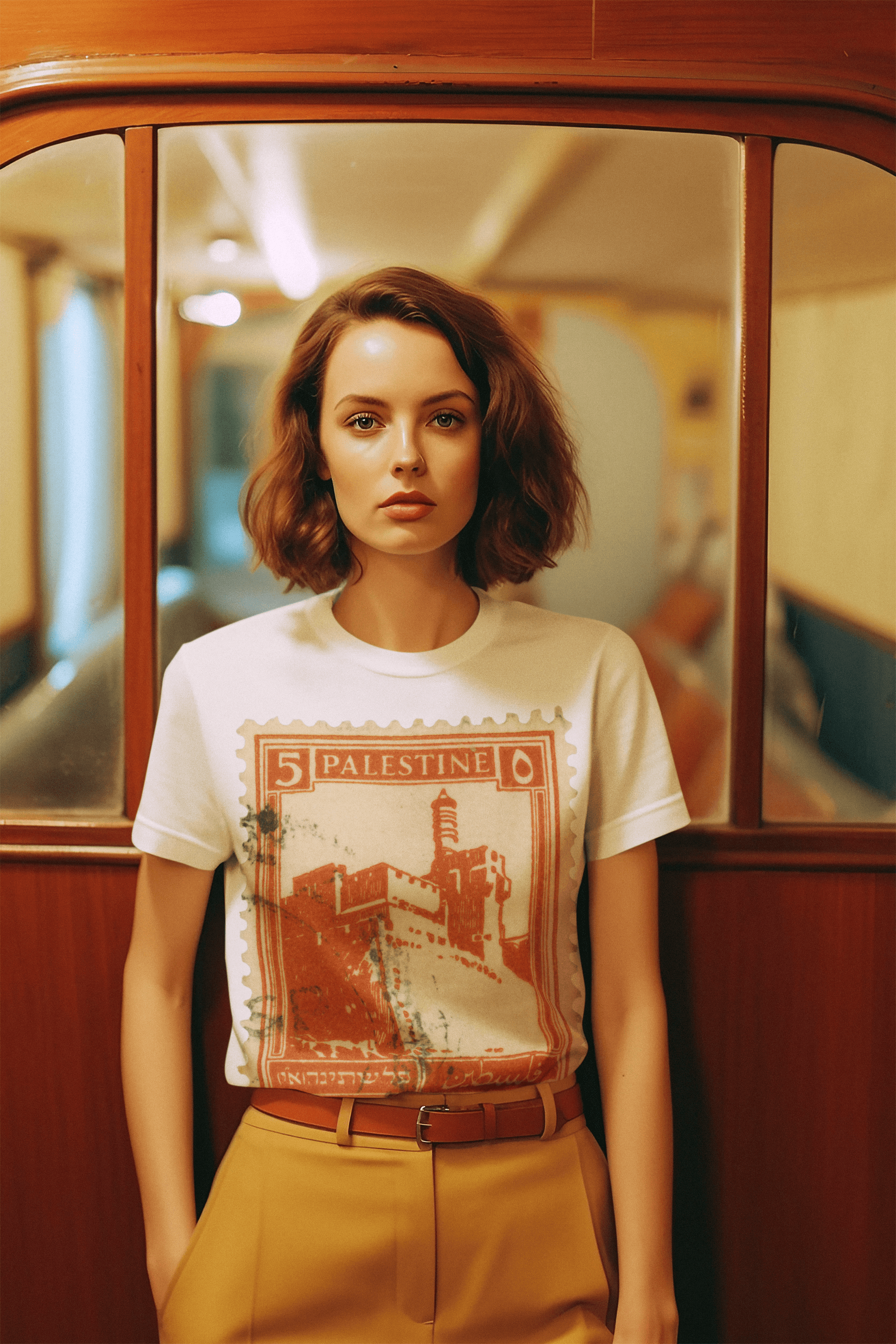 Vintage Palestine Stamp Regular Fit T-shirt